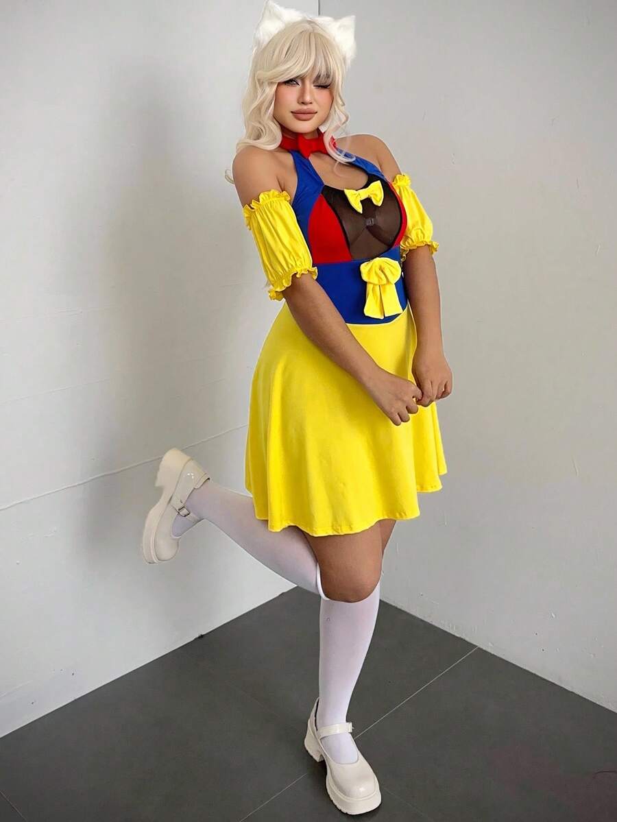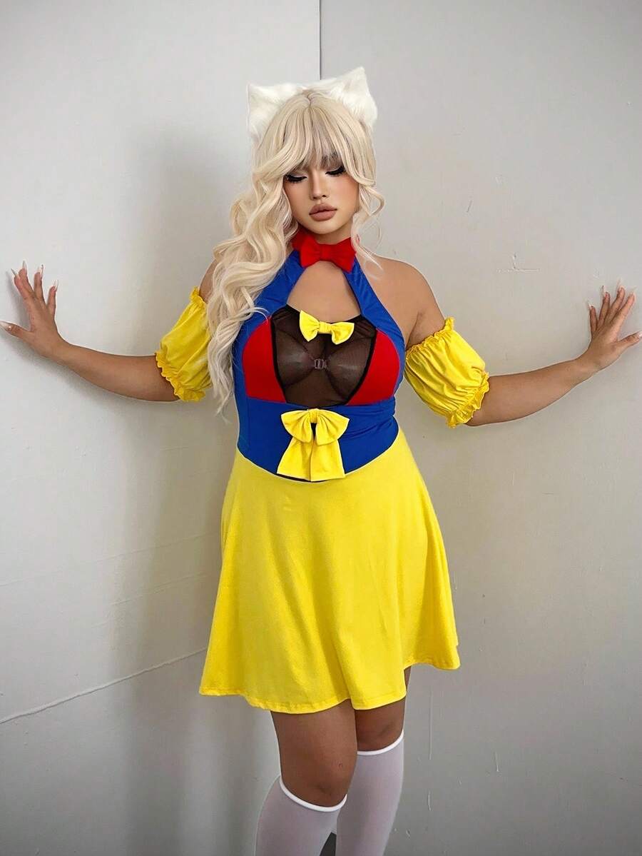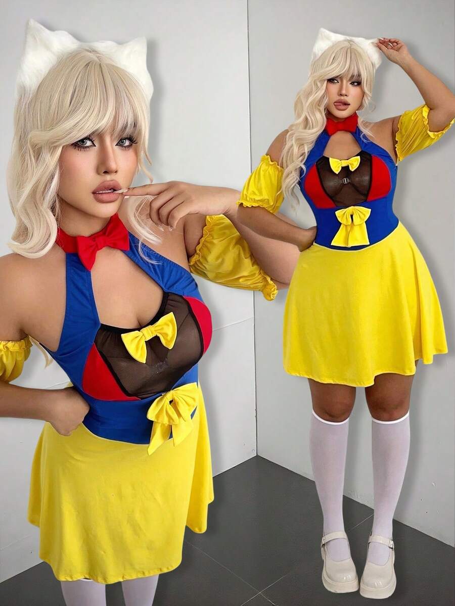 Whyspr disfraz de princesa fugitiva, vestido corto lindo y sexy con mangas abullonadas y lazo