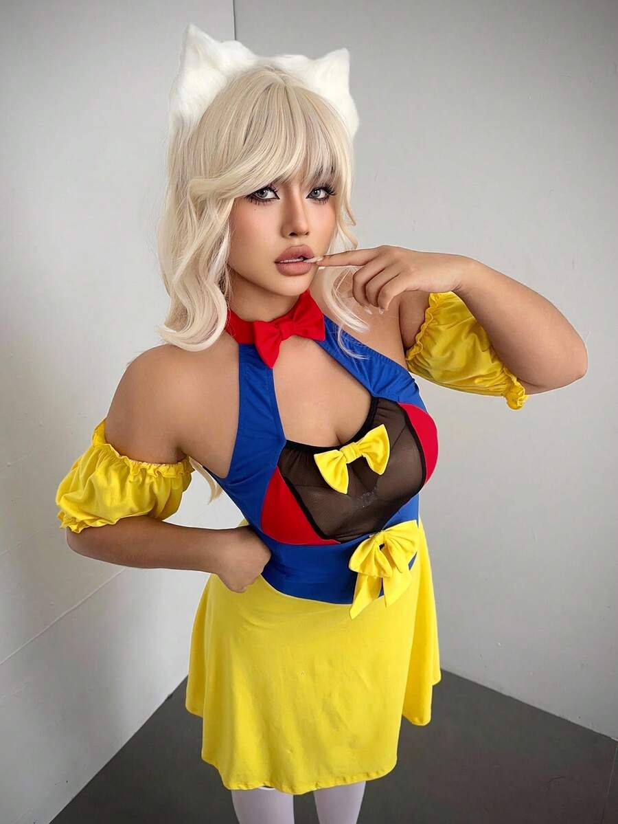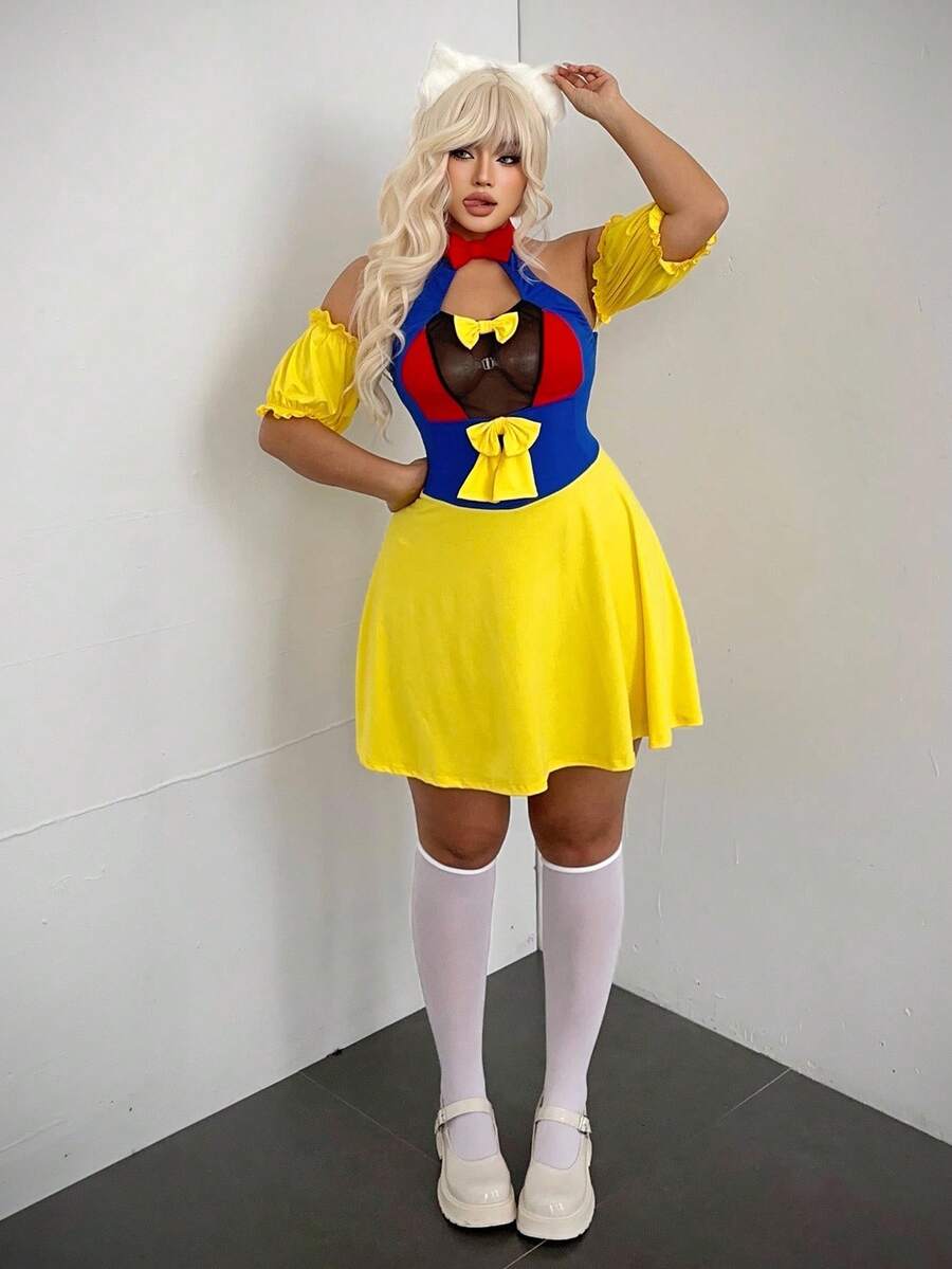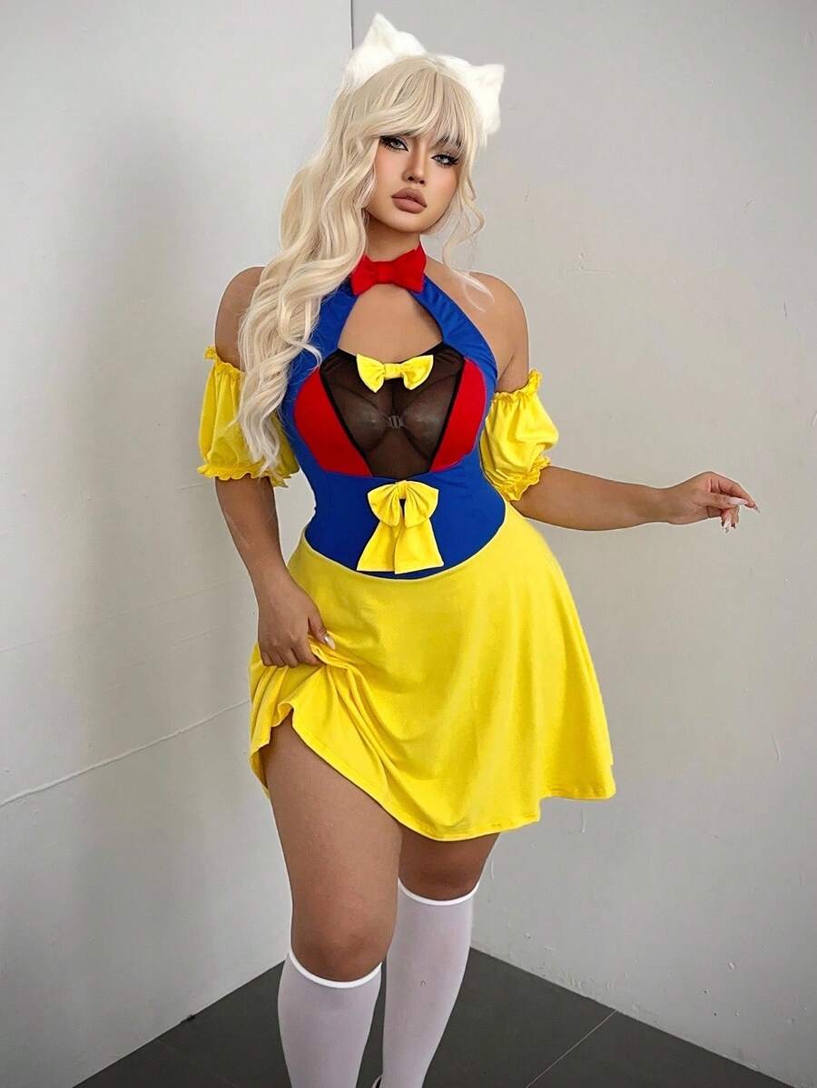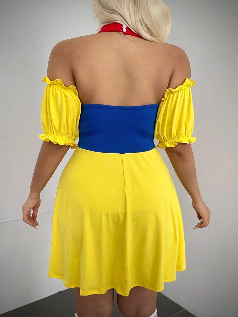 Whyspr disfraz de princesa fugitiva, vestido corto lindo y sexy con mangas abullonadas y lazo