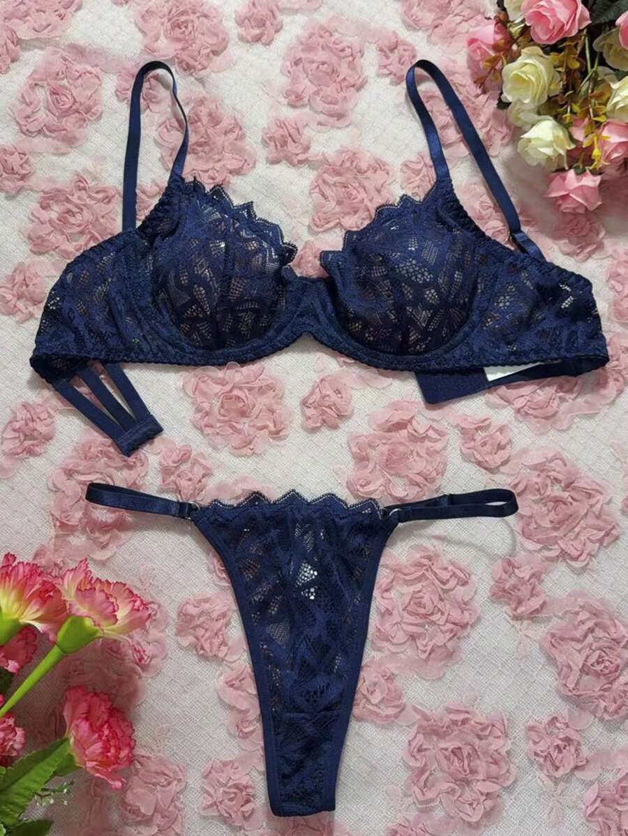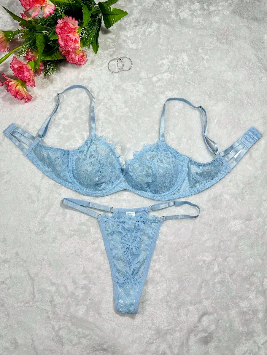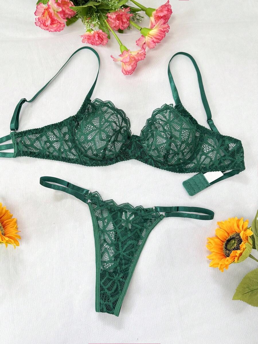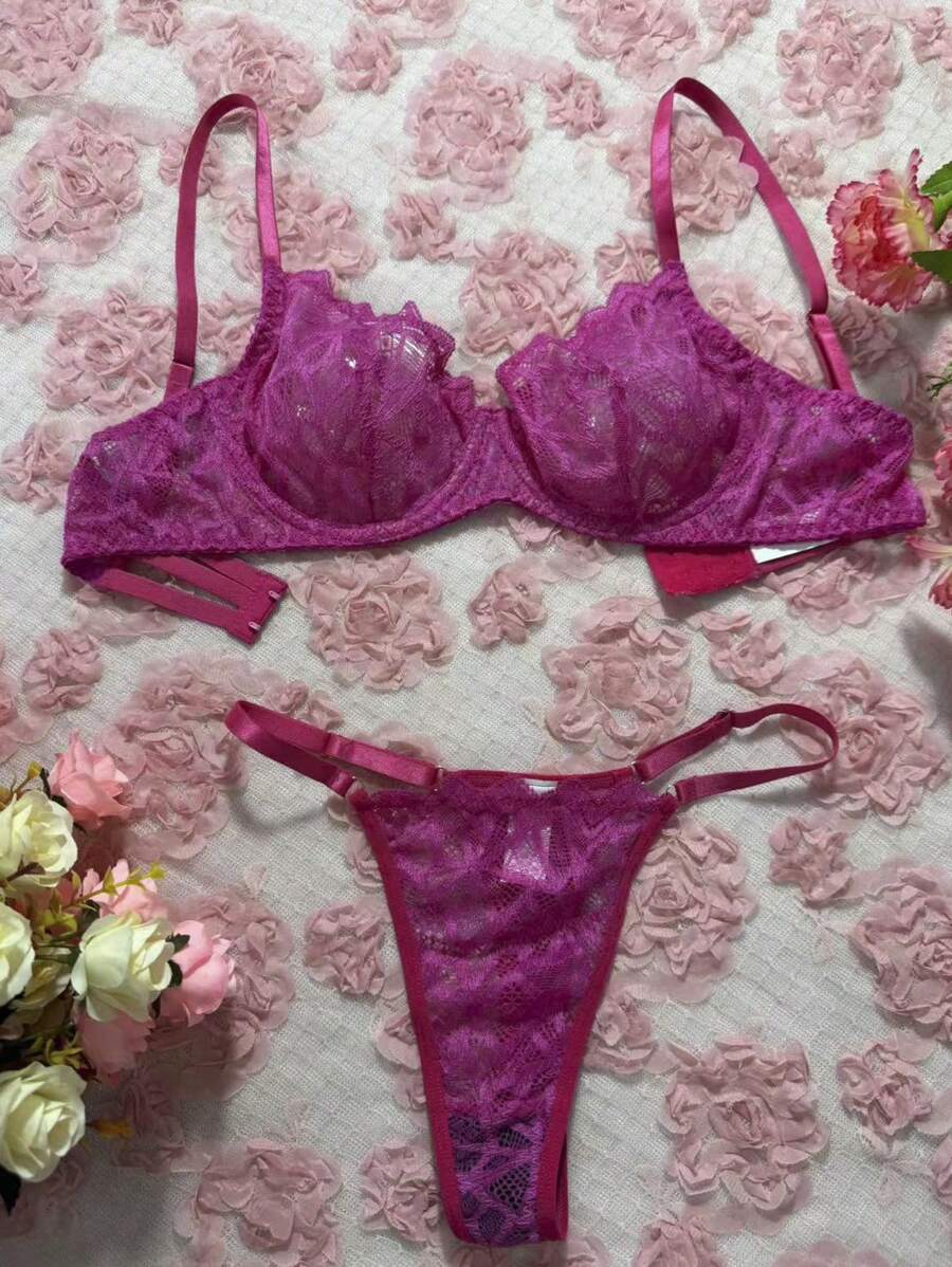 2 piezas conjunto de brasier con aros y encaje de unicolor sexy para mujer