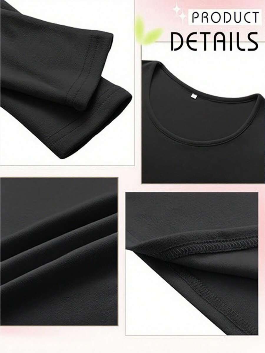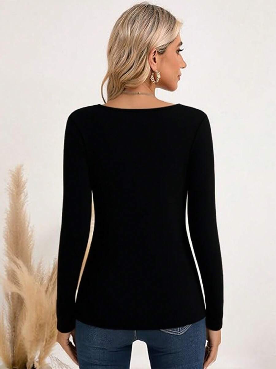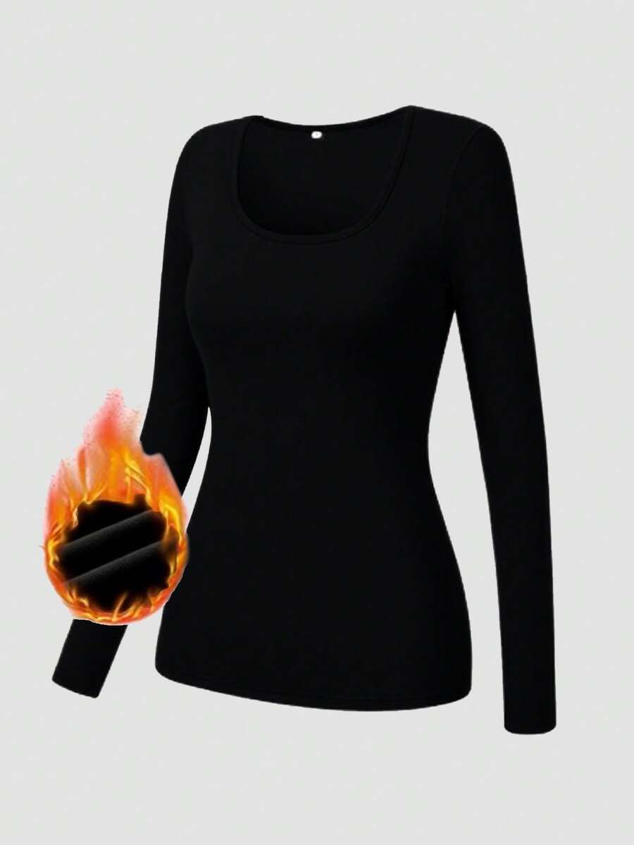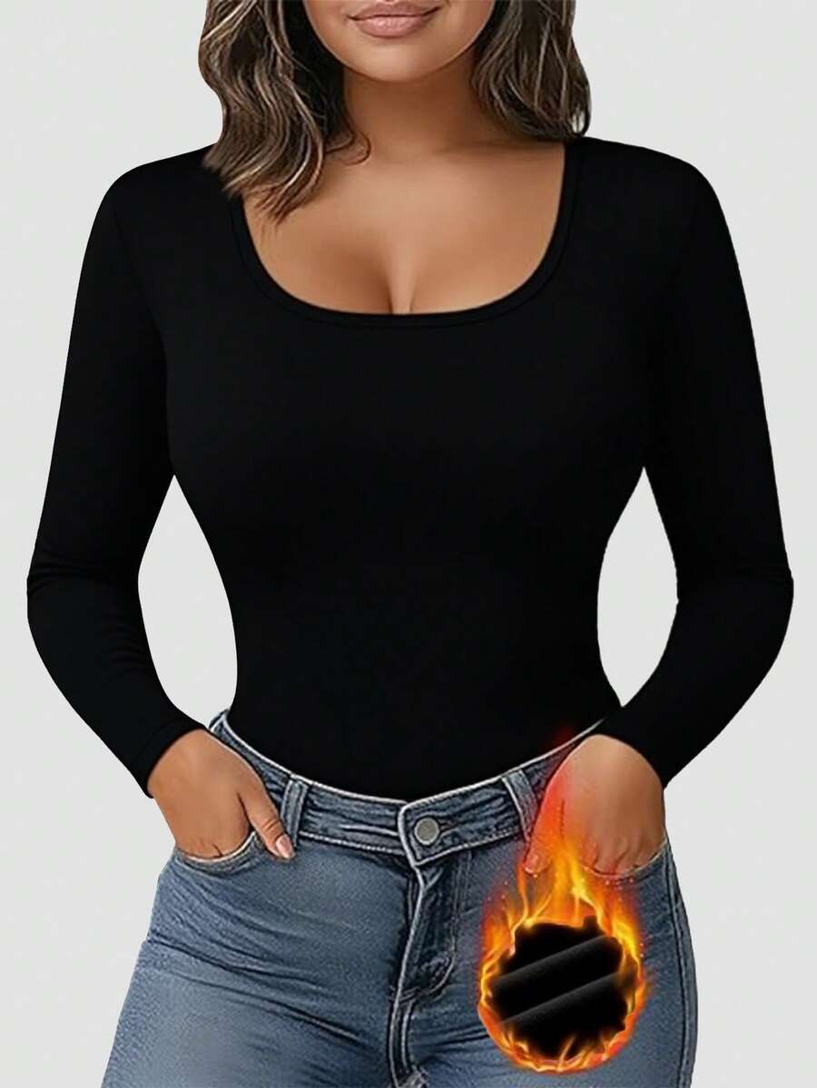 1 pieza parte superior de manga larga con cuello cuadrado nueva para mujer en otono/invierno, con forro termico, ajuste slim, ropa deportiva casual, blusa versatil sin mangas
