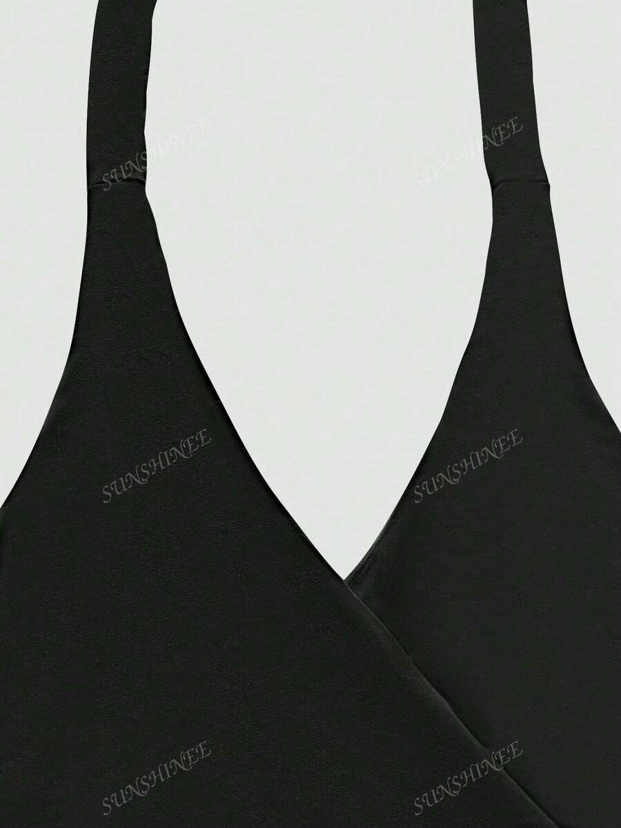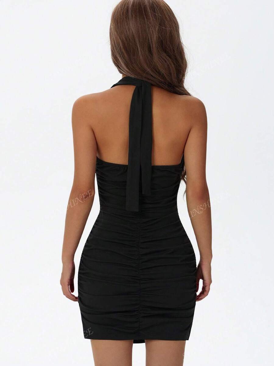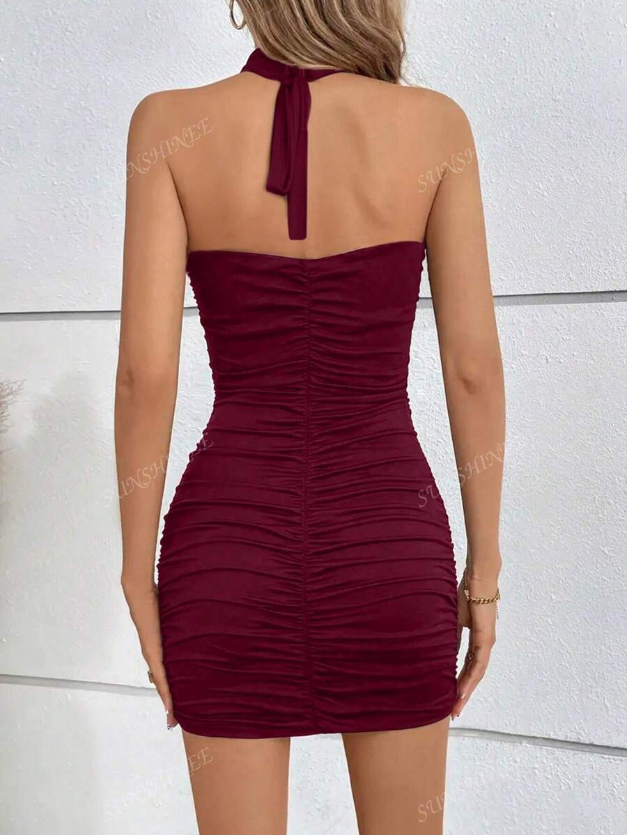 Vestido mini sexy con escote en v profundo, cintura fruncida, cuello halter, espalda descubierta y recortes, nuevo diseno de verano