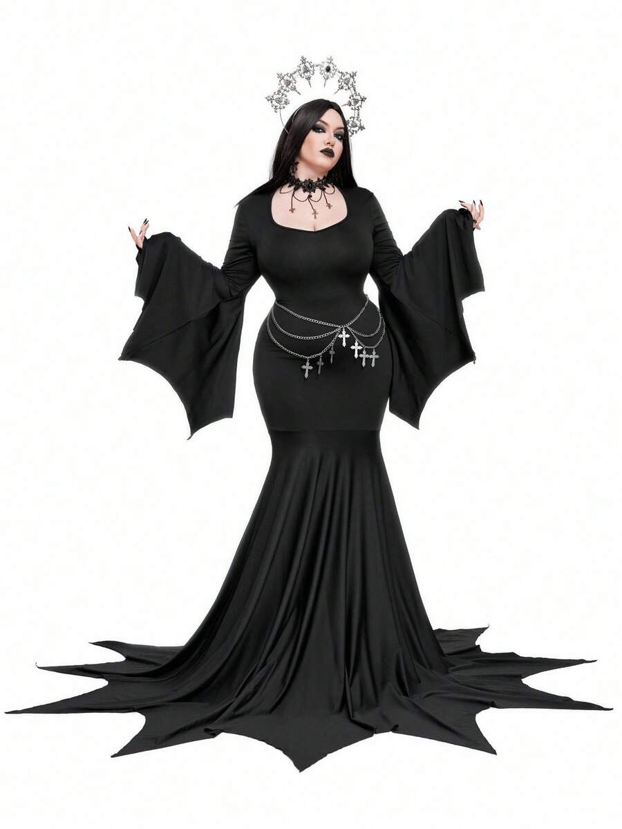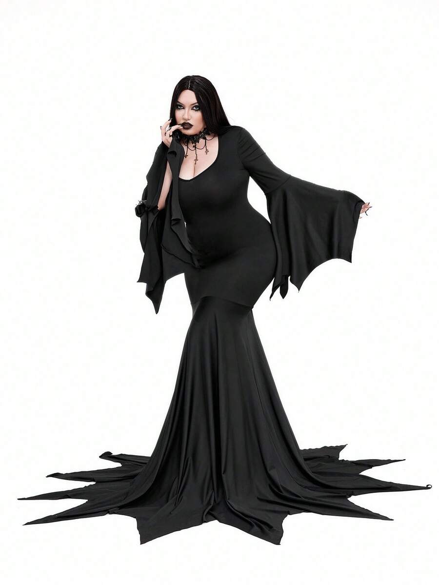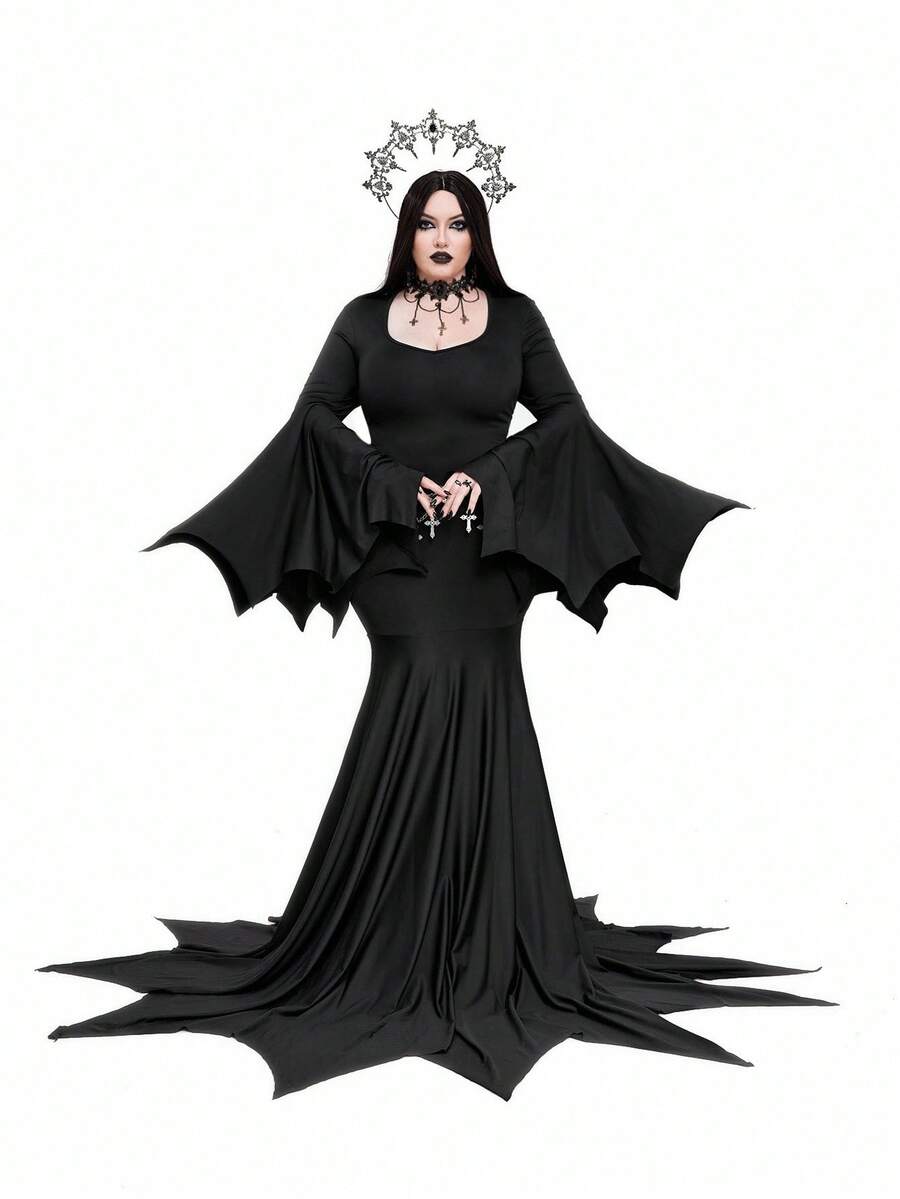 Whyspr disfraz de halloween sexy y punk de bruja talla grande con bajo asimetrico y mangas de campana