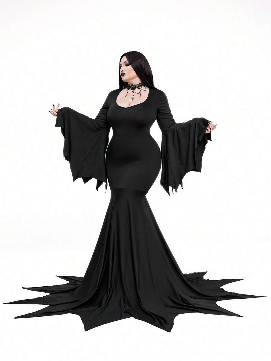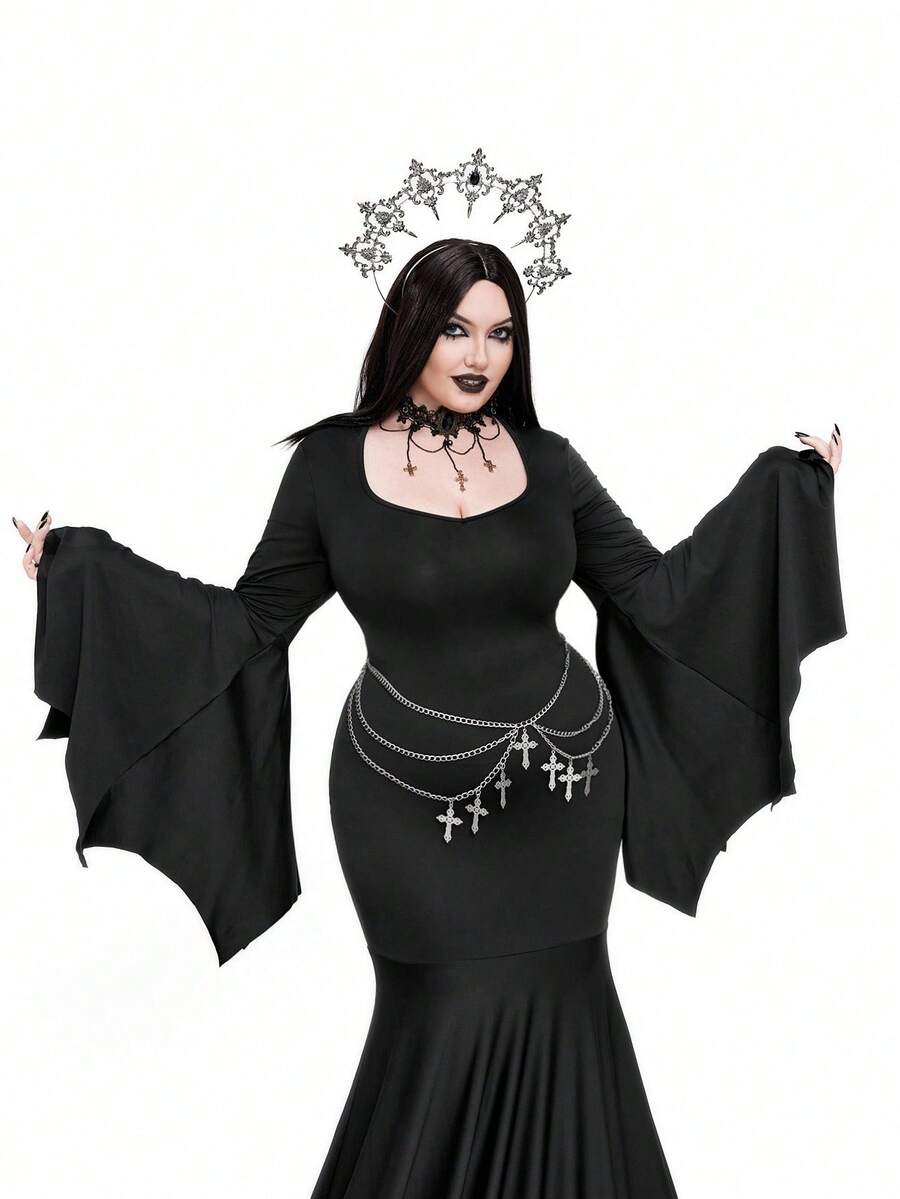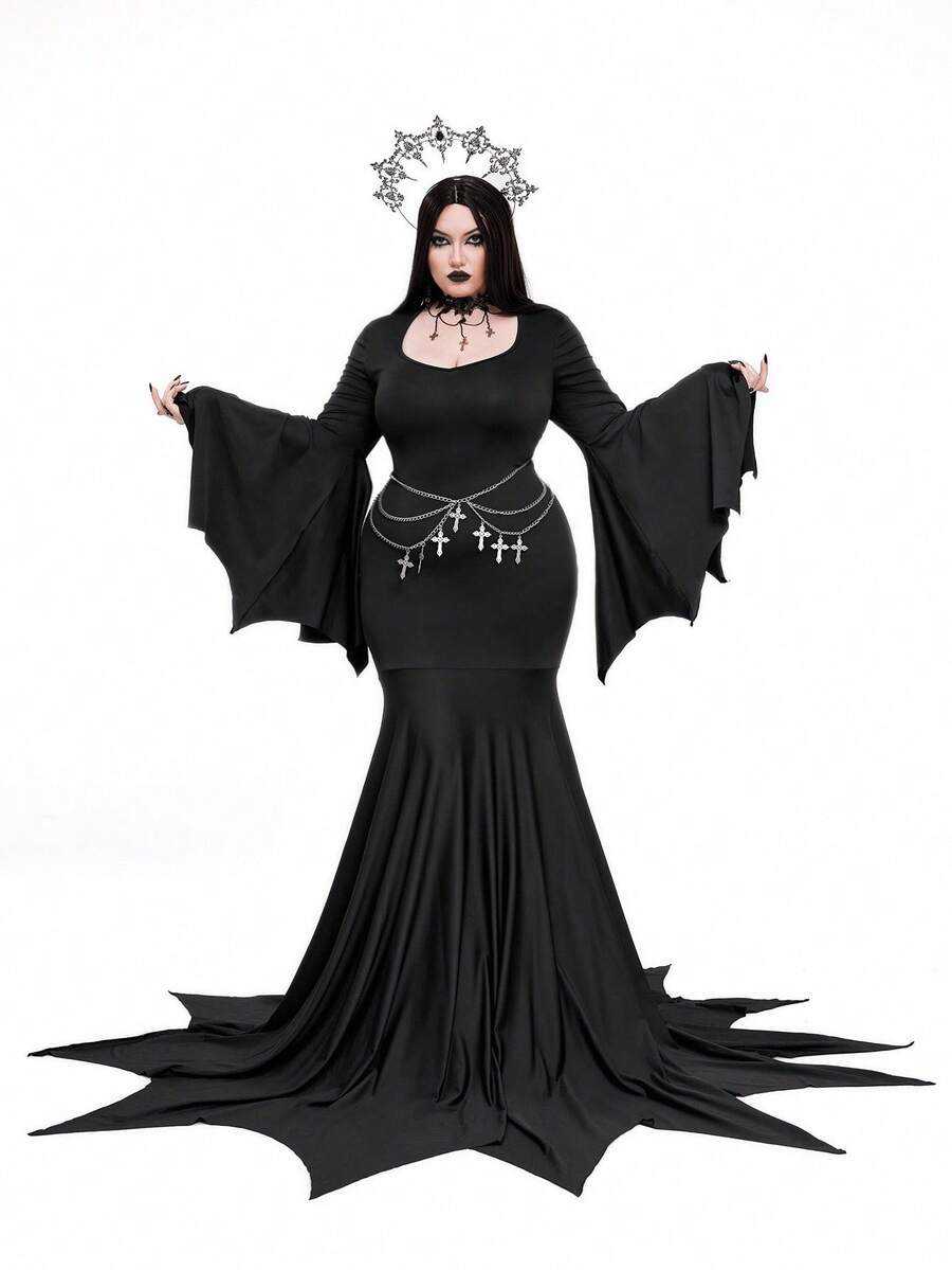 Whyspr disfraz de halloween sexy y punk de bruja talla grande con bajo asimetrico y mangas de campana