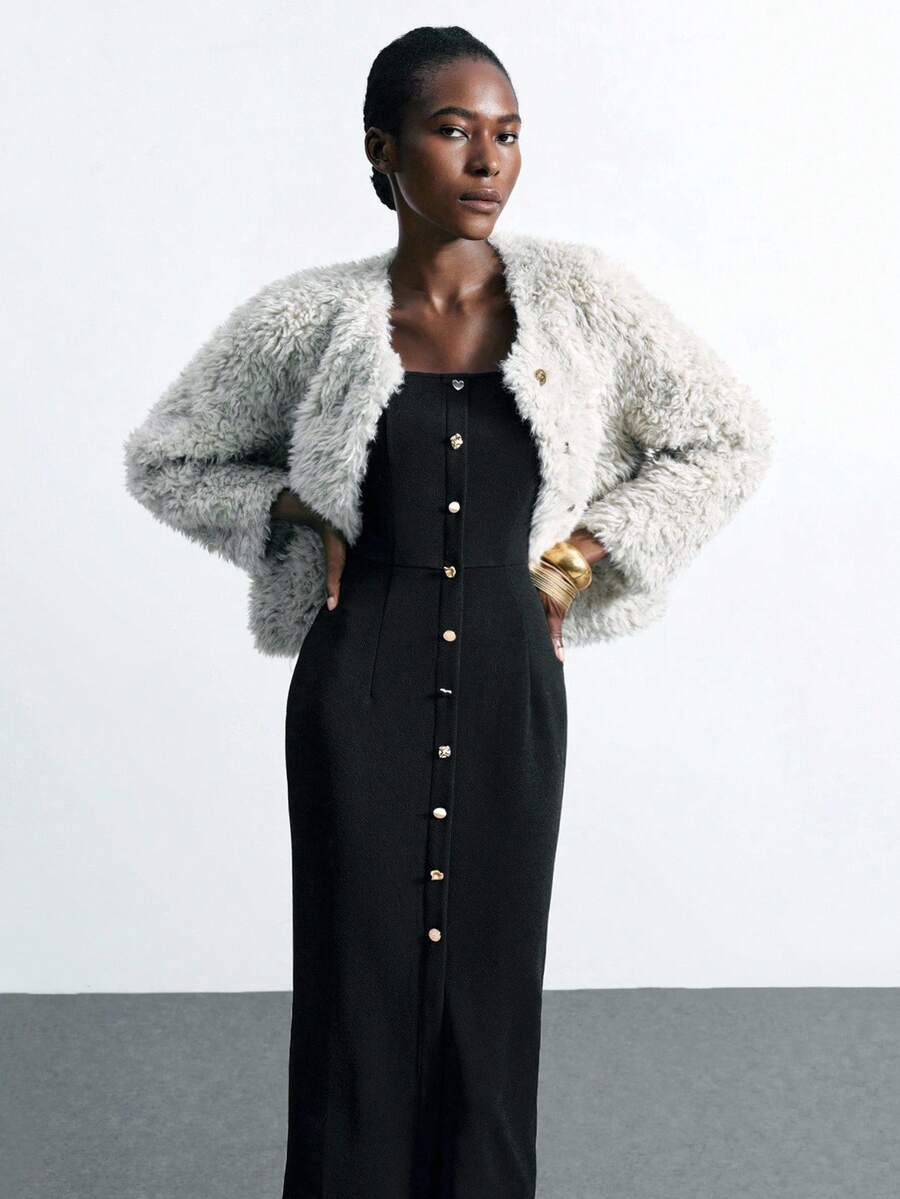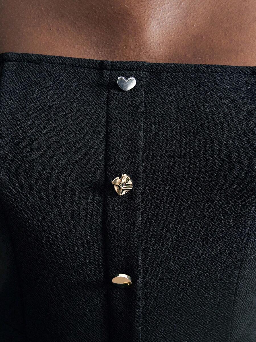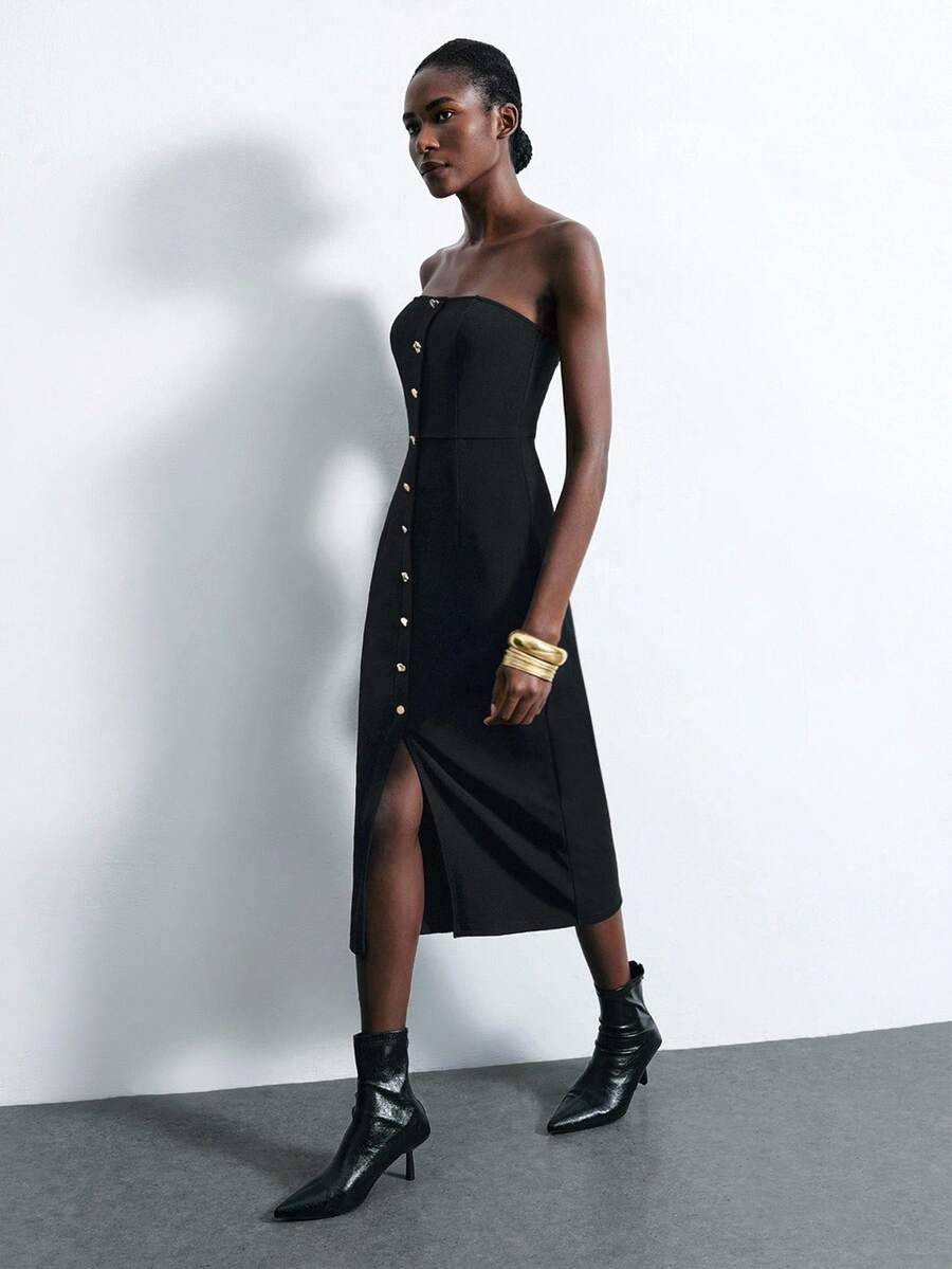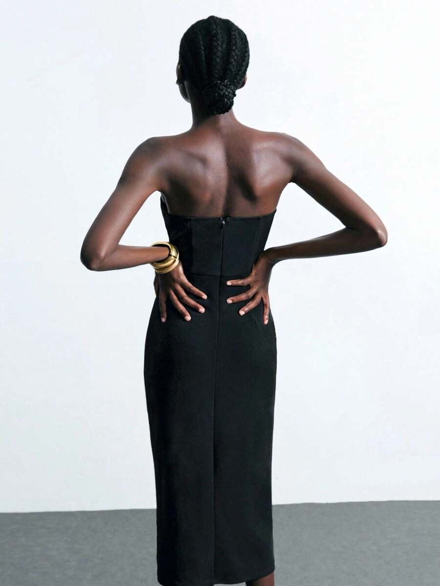 Vestido elegante sin tirantes con decoracion metalica para mujer, adecuado para la temporada de regreso a clases 2025