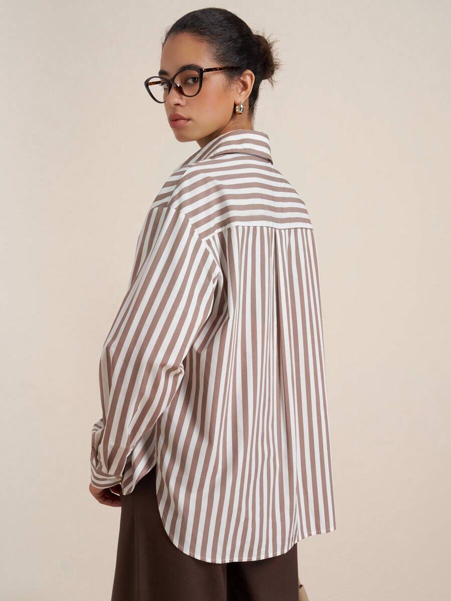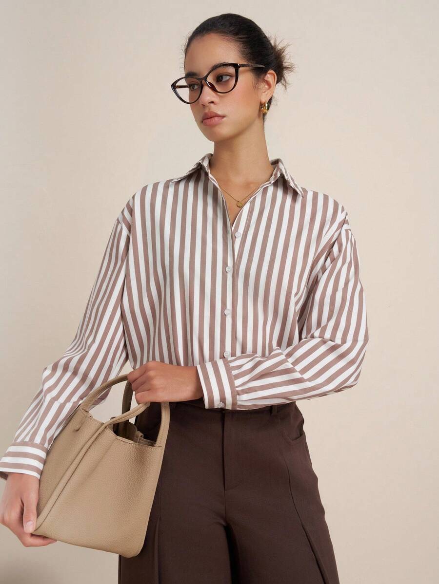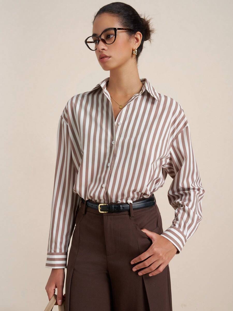 Airaco camisa casual de mujer de manga larga con estampado de rayas
