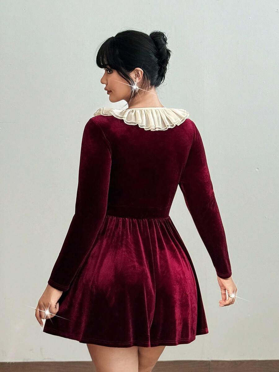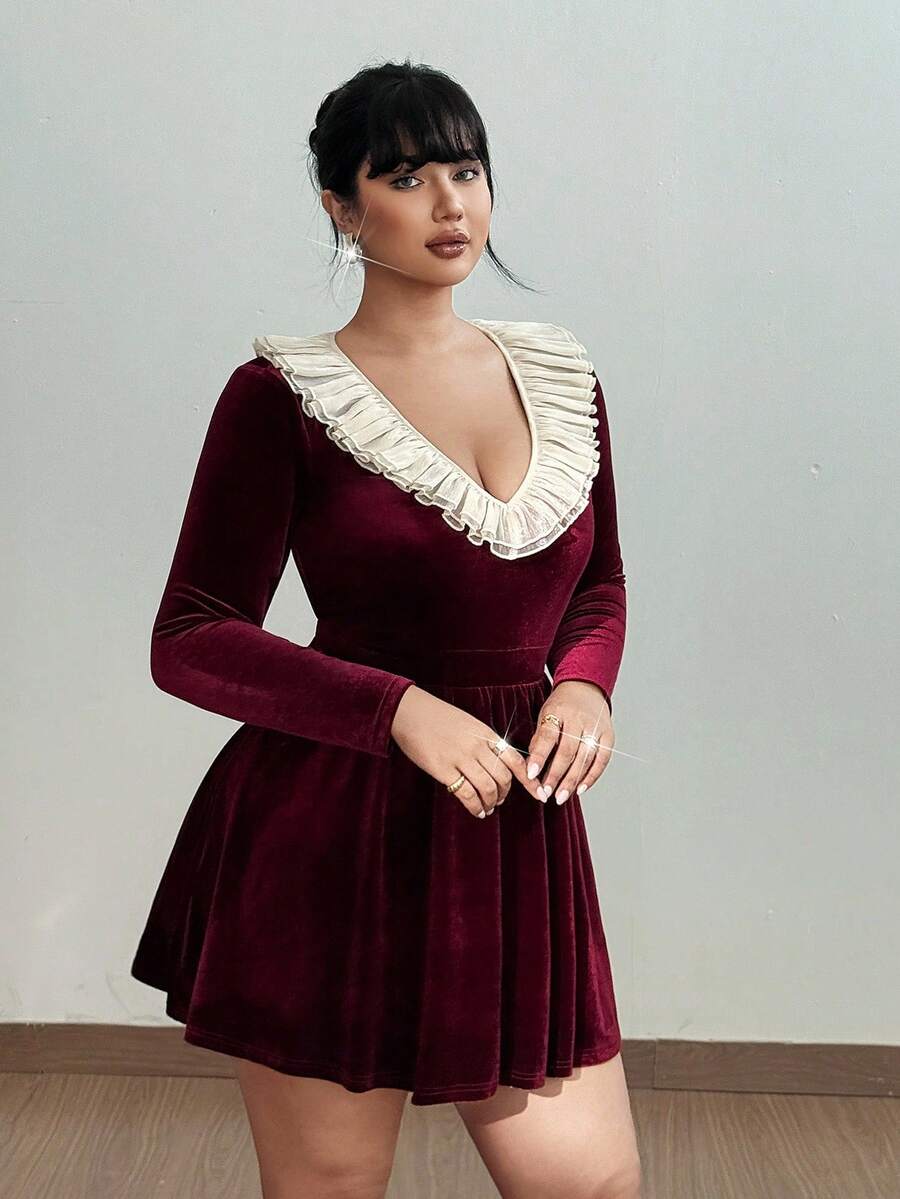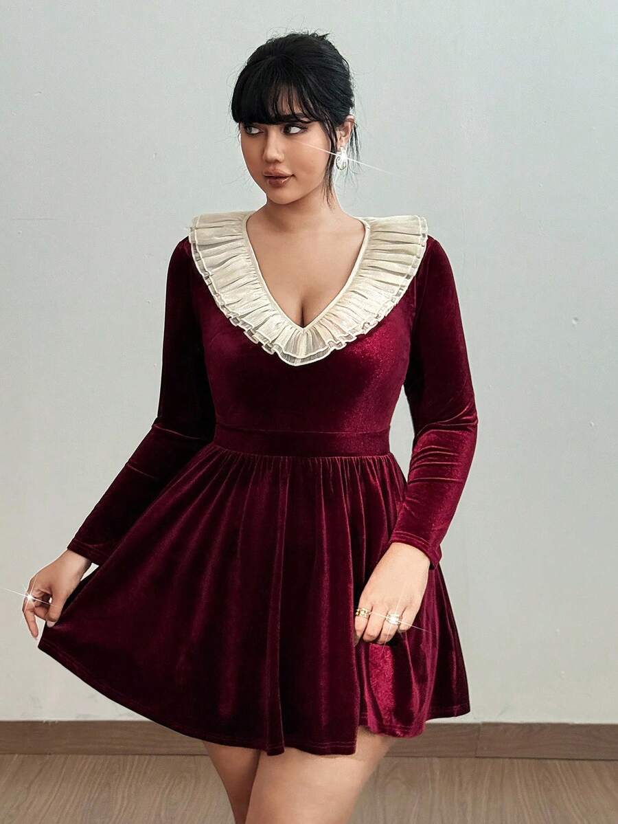 Viva relle vestido de fiesta de talla grande para mujer 2025 con cuello en v profundo, cintura de encaje y terciopelo, y falda acampanada en linea a