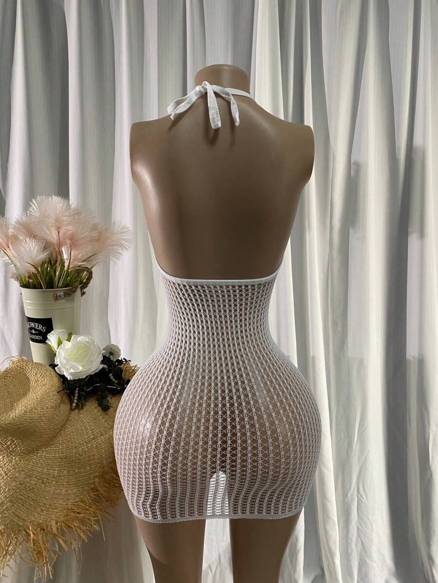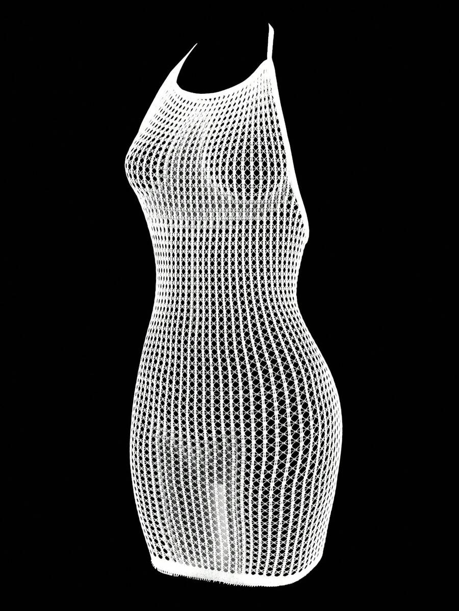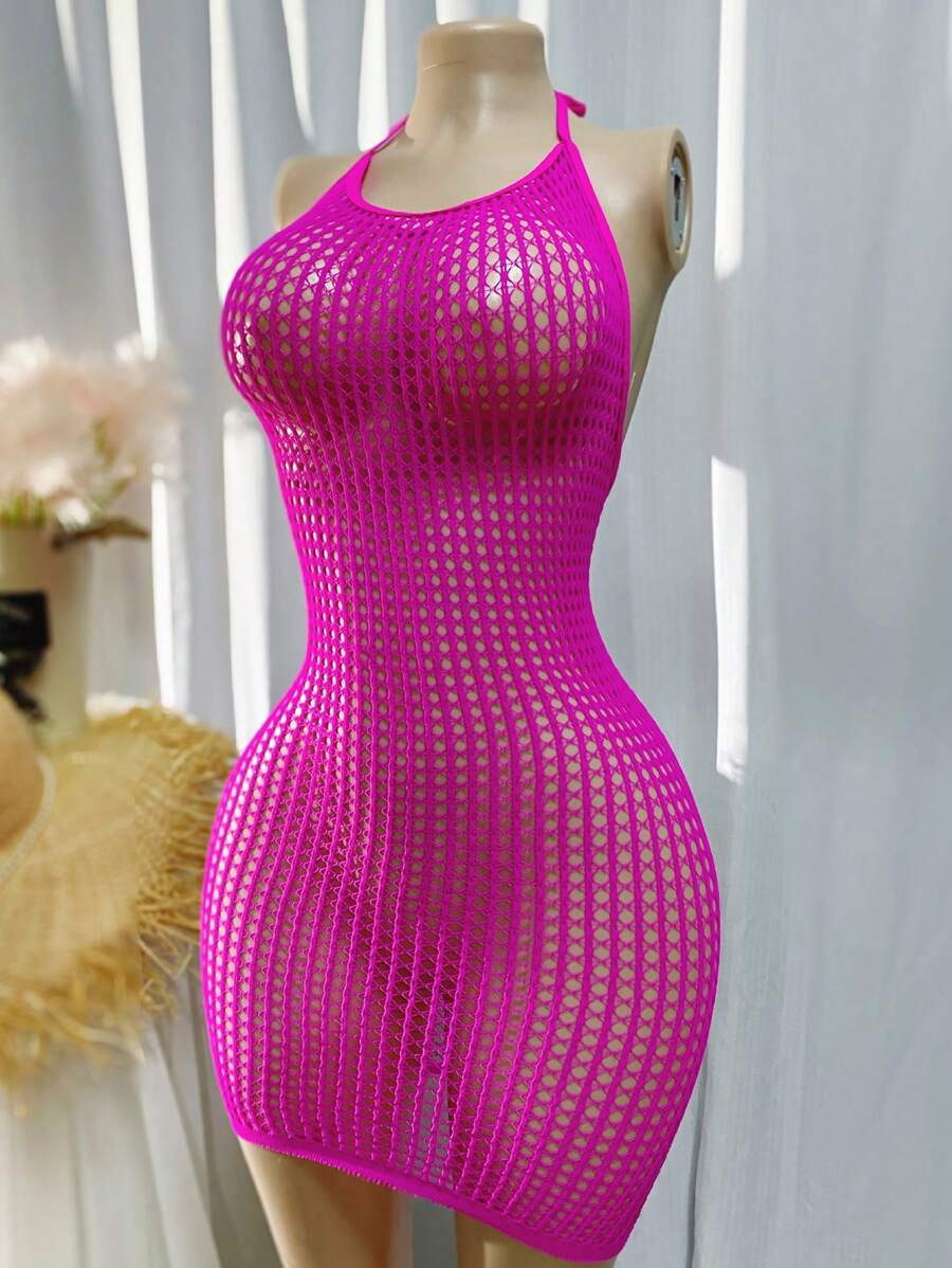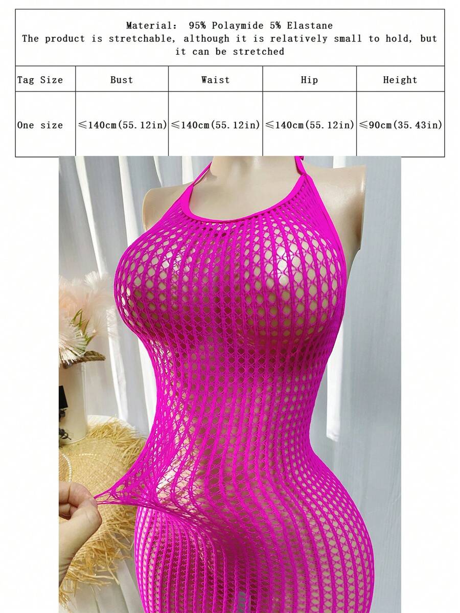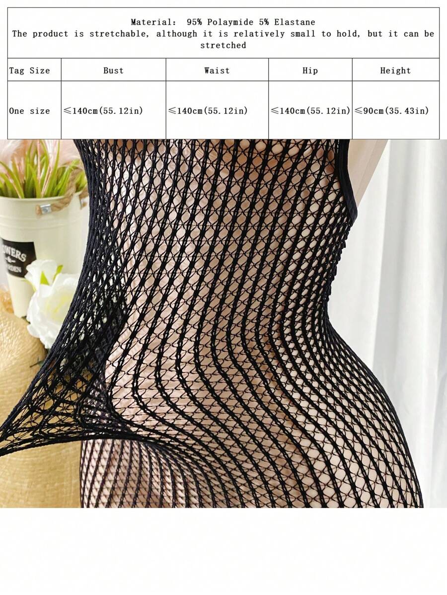 1 pieza lenceria sexy para mujer de talla grande, cubre con diseno de red sexy para festival de musica sin bikini, vestido ajustado calado y transparente, ropa de playa de verano para mujer, traje de bano
