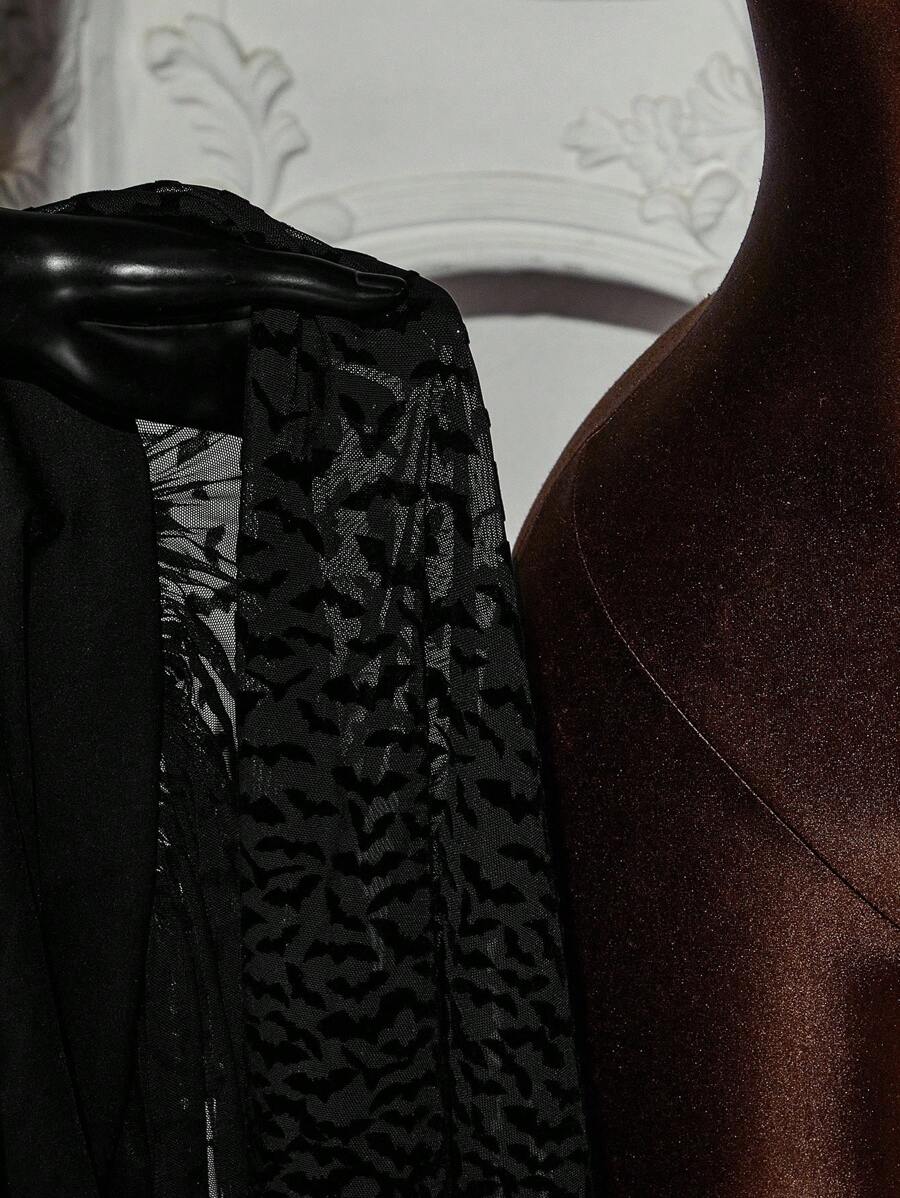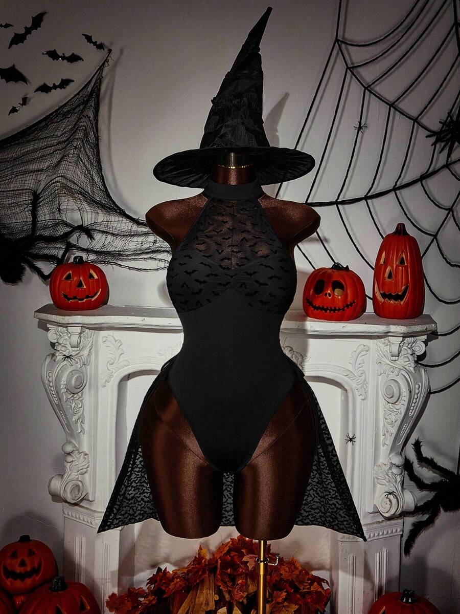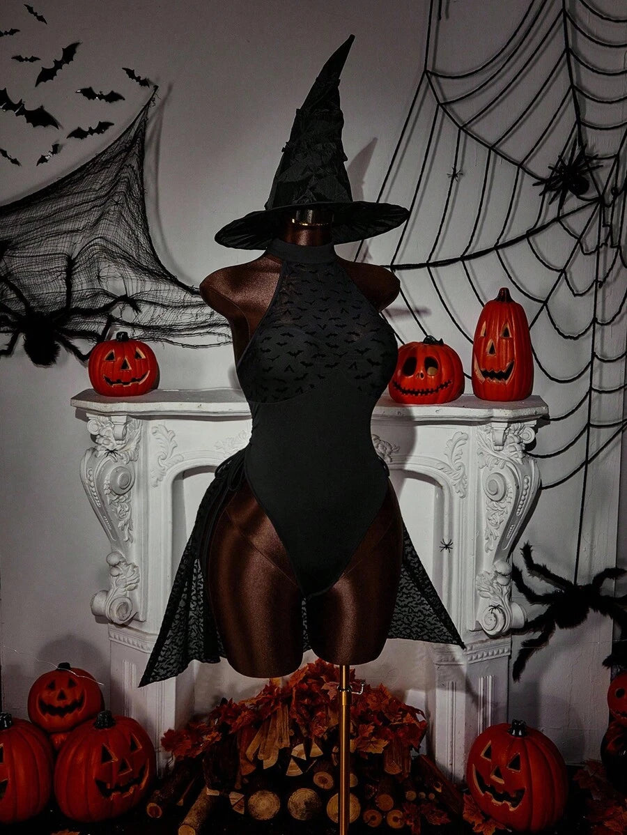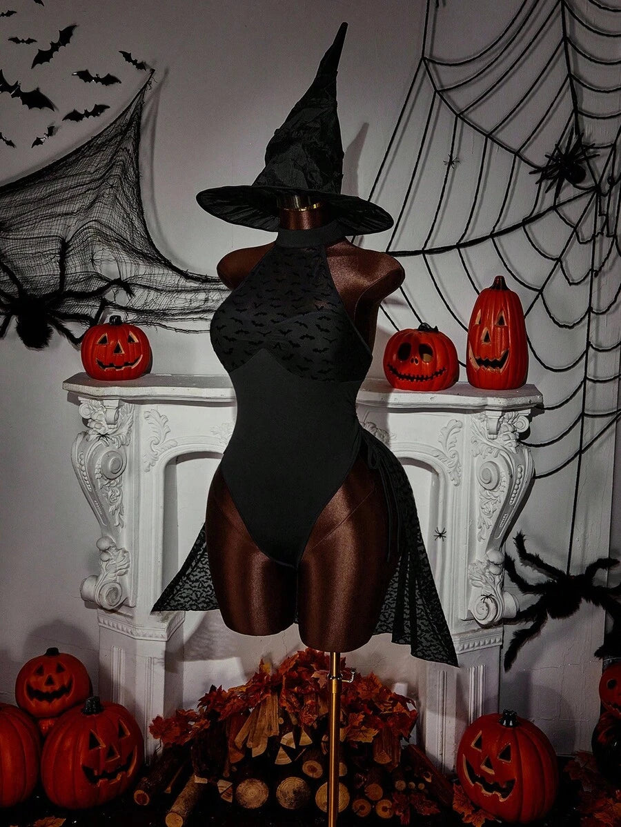 Amplova body de estilo gotico con estampado de murcielago, cuello halter y cordon lateral para mujer de talla grande