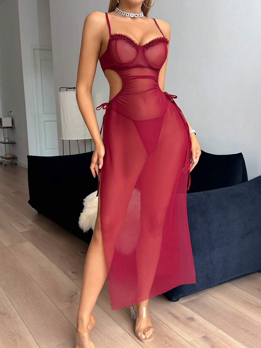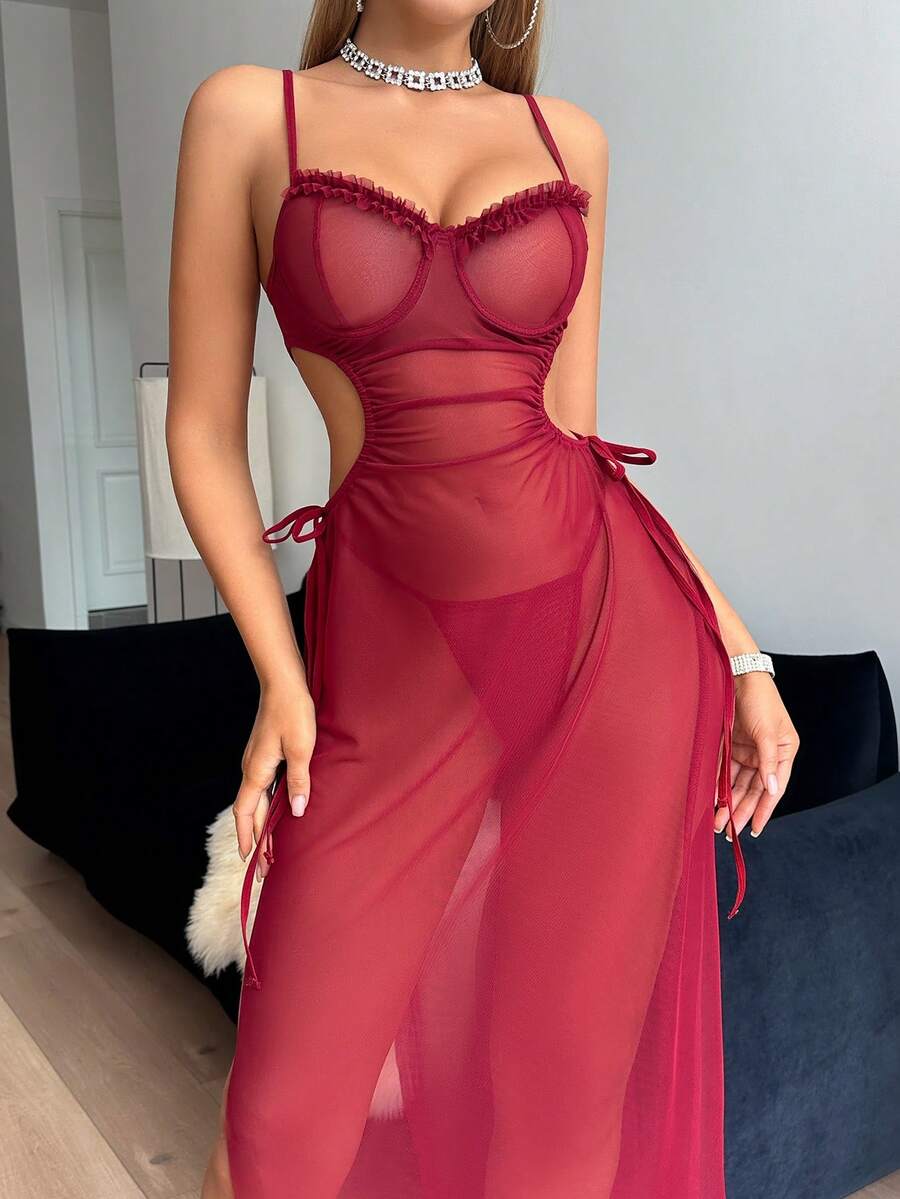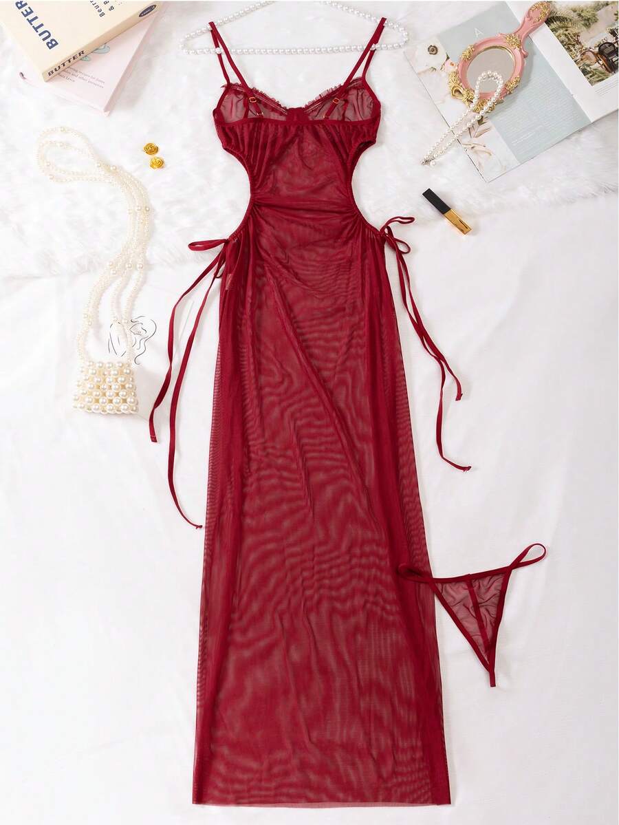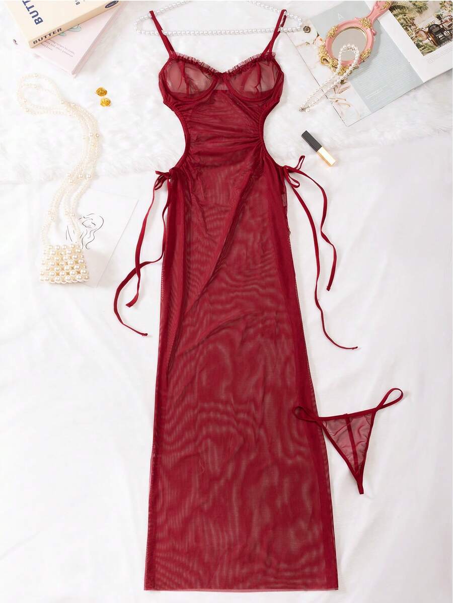 2 piezas nuevo conjunto de lenceria sexy con brasier de aros de malla transparente y corte en la cintura, camiseta y shorts