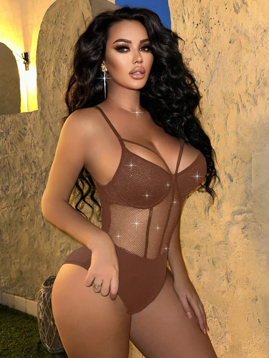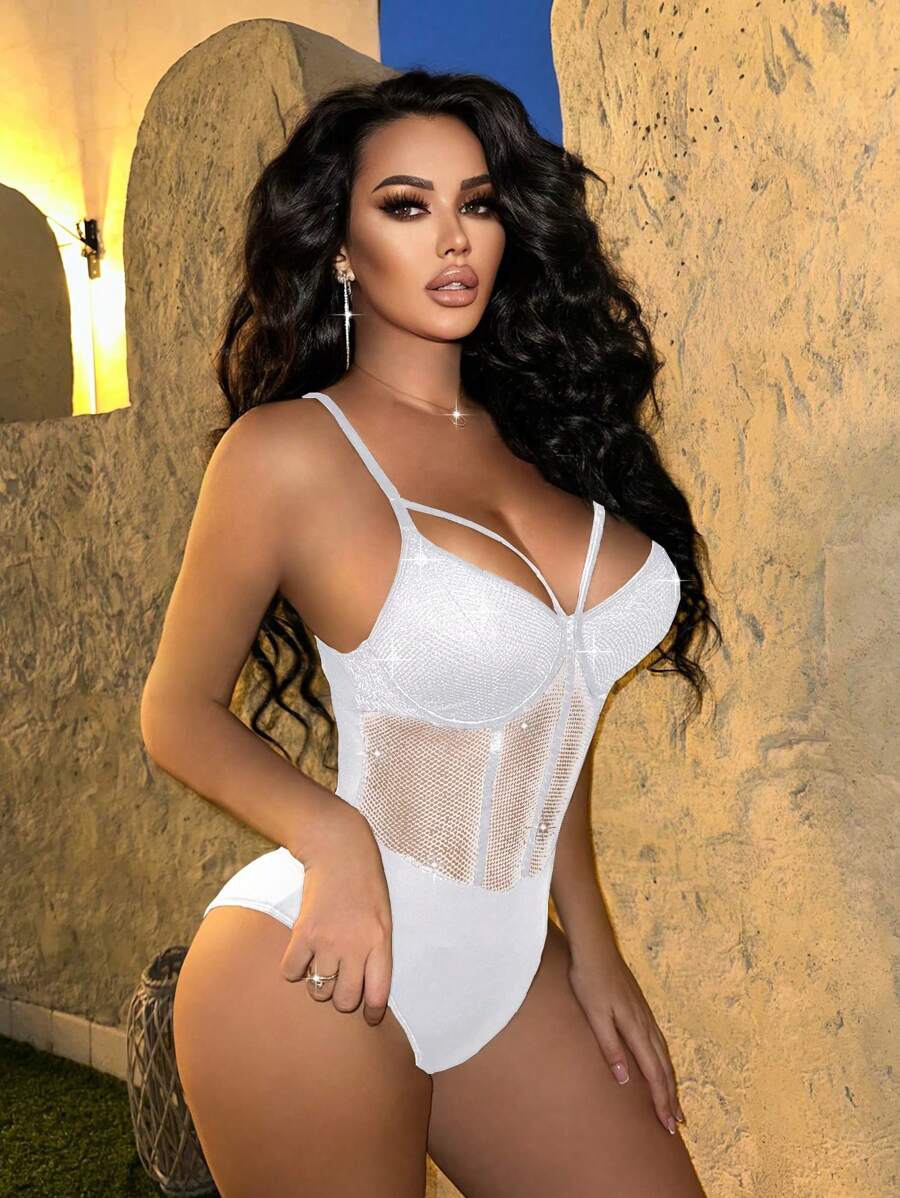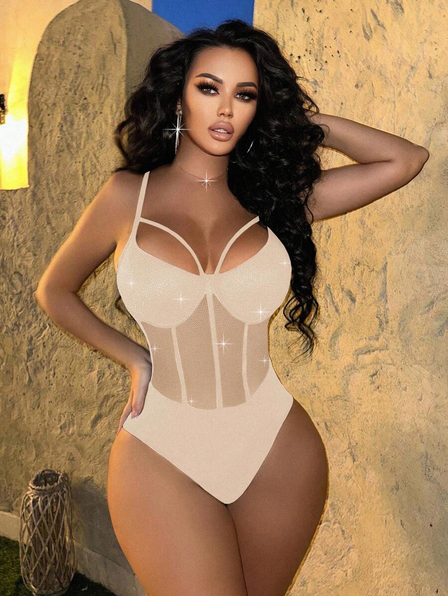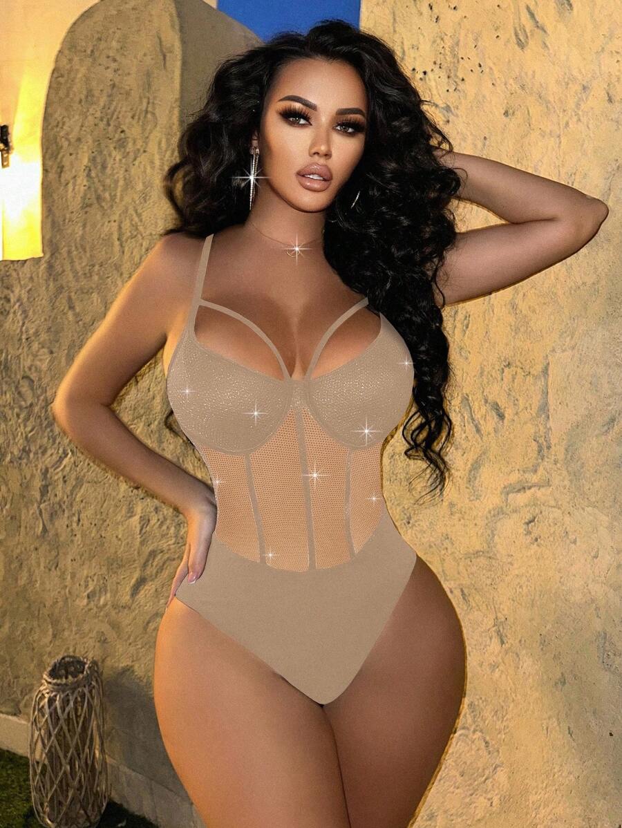 Zolique body de mujer con parches de malla y lentejuelas sexy
