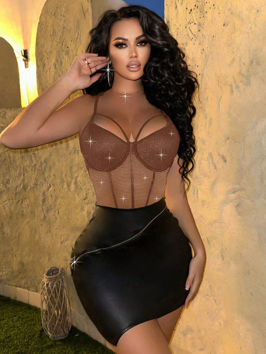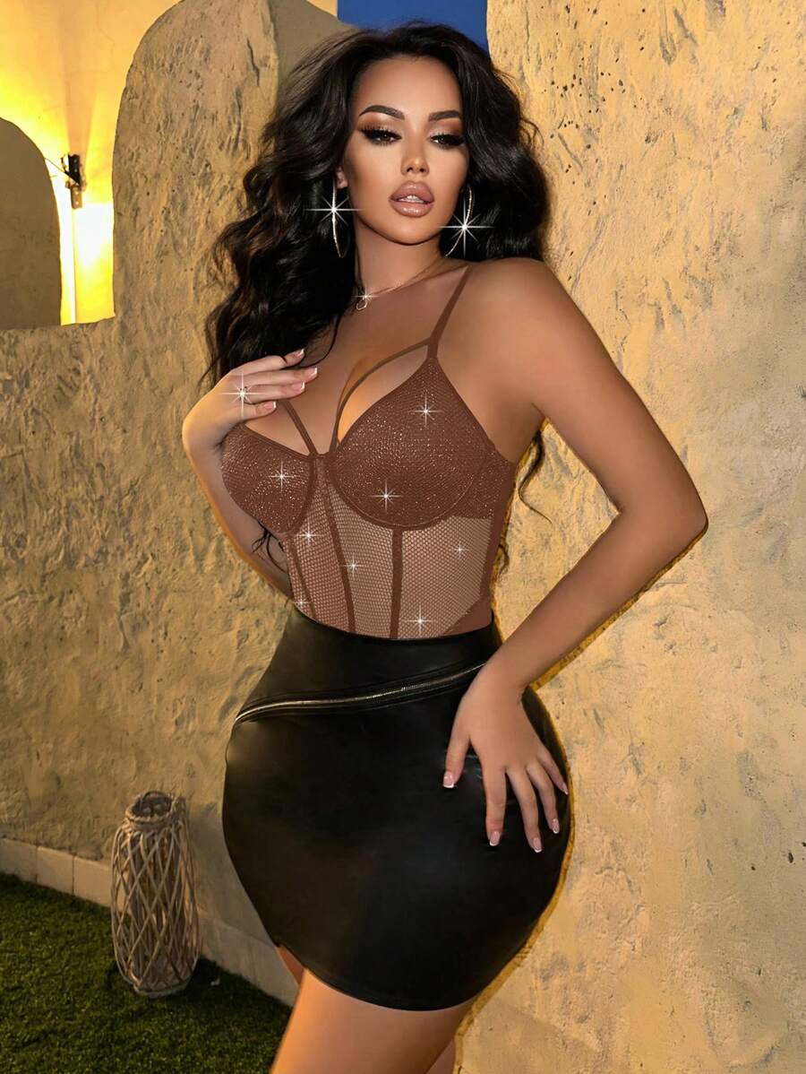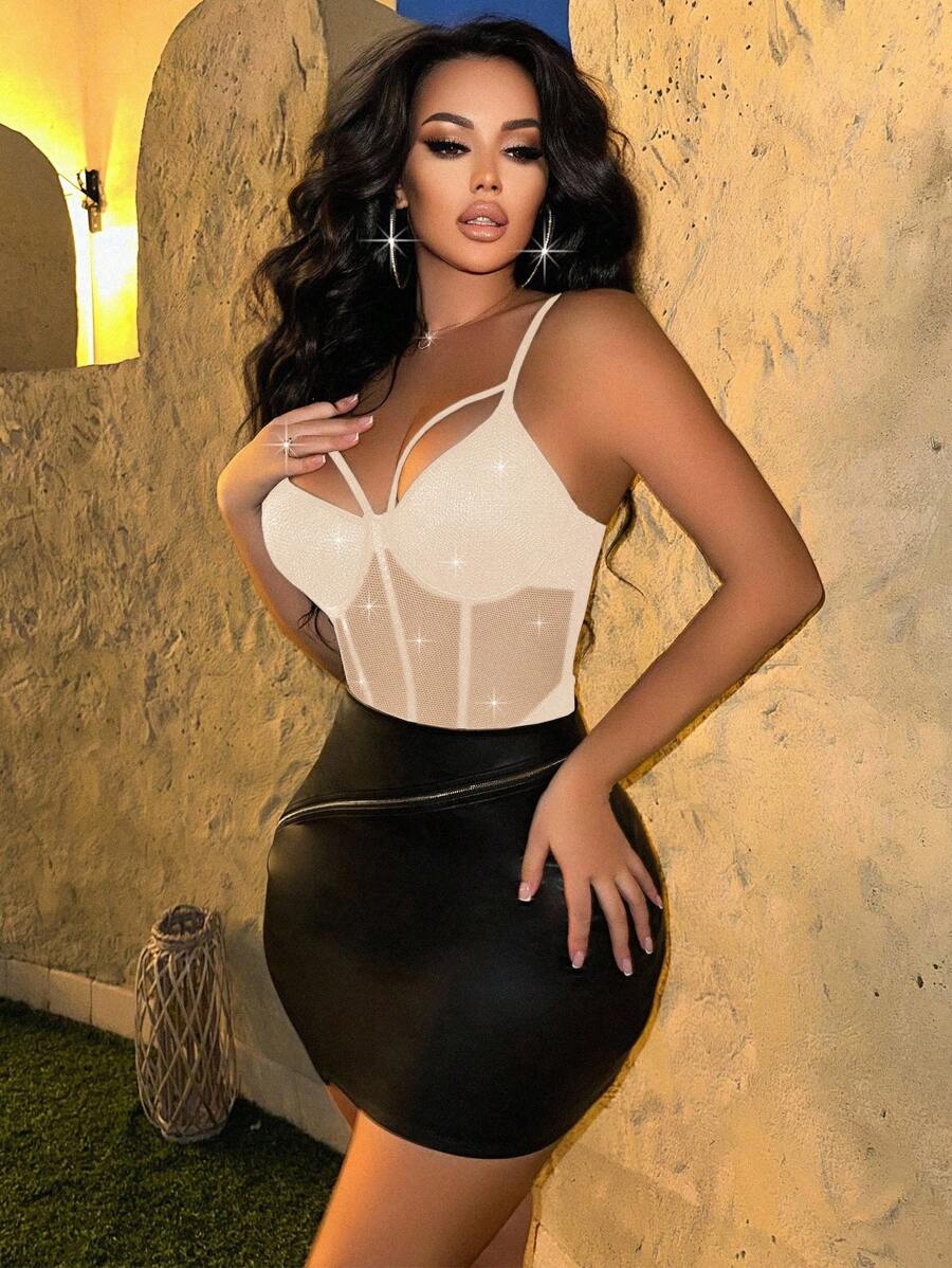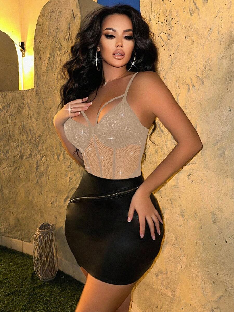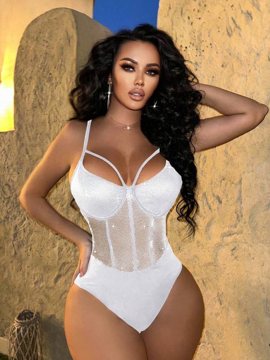 Zolique body de mujer con parches de malla y lentejuelas sexy