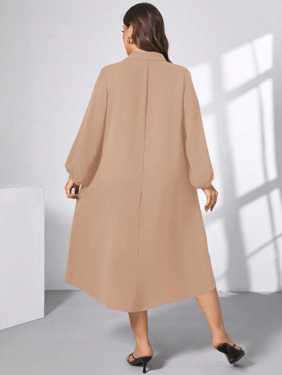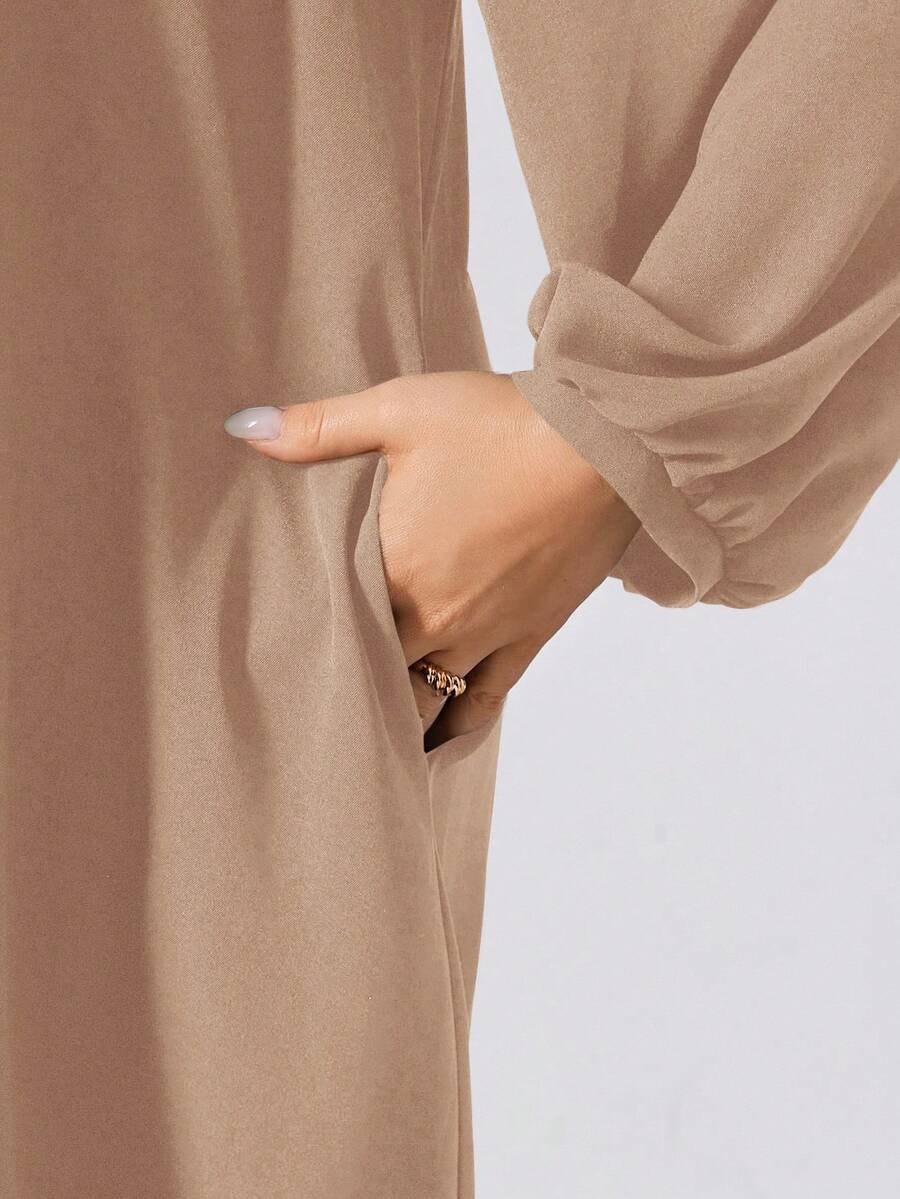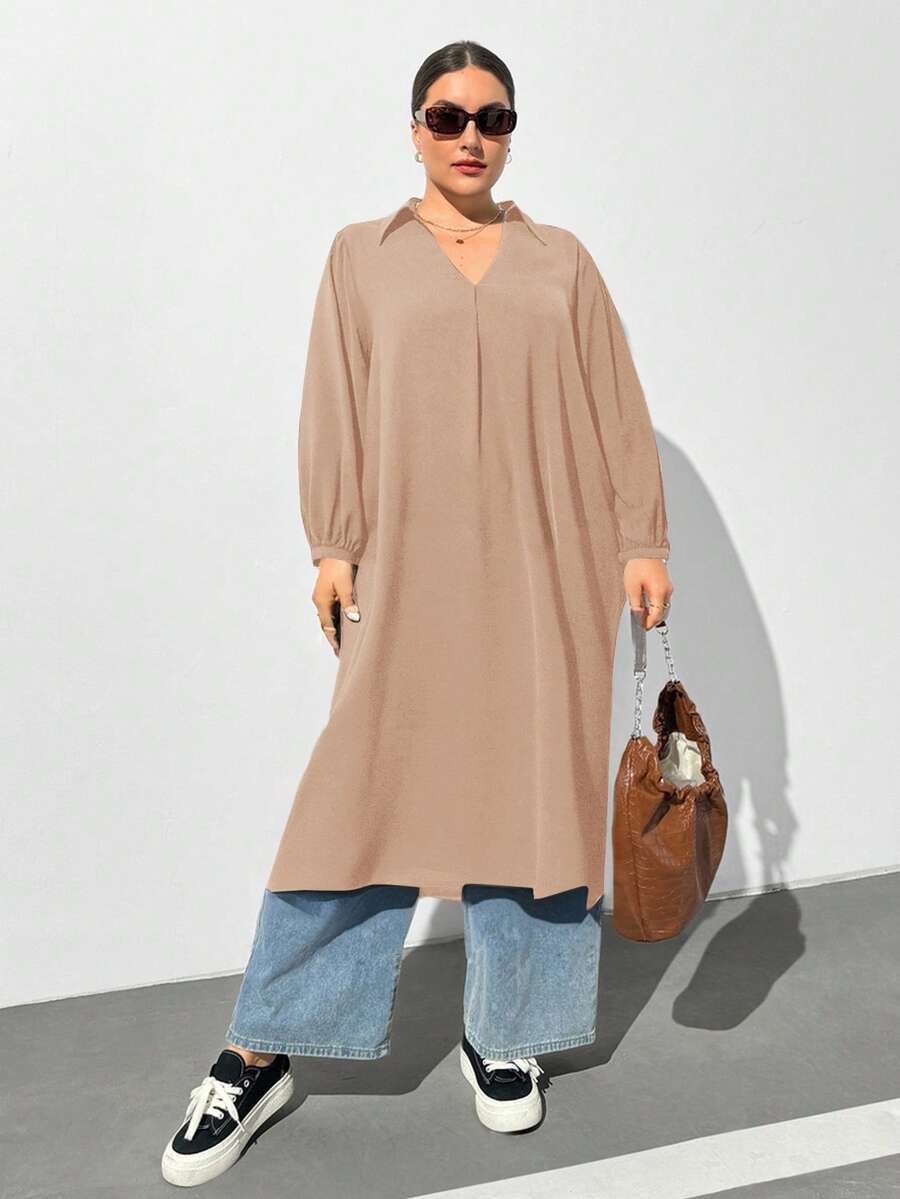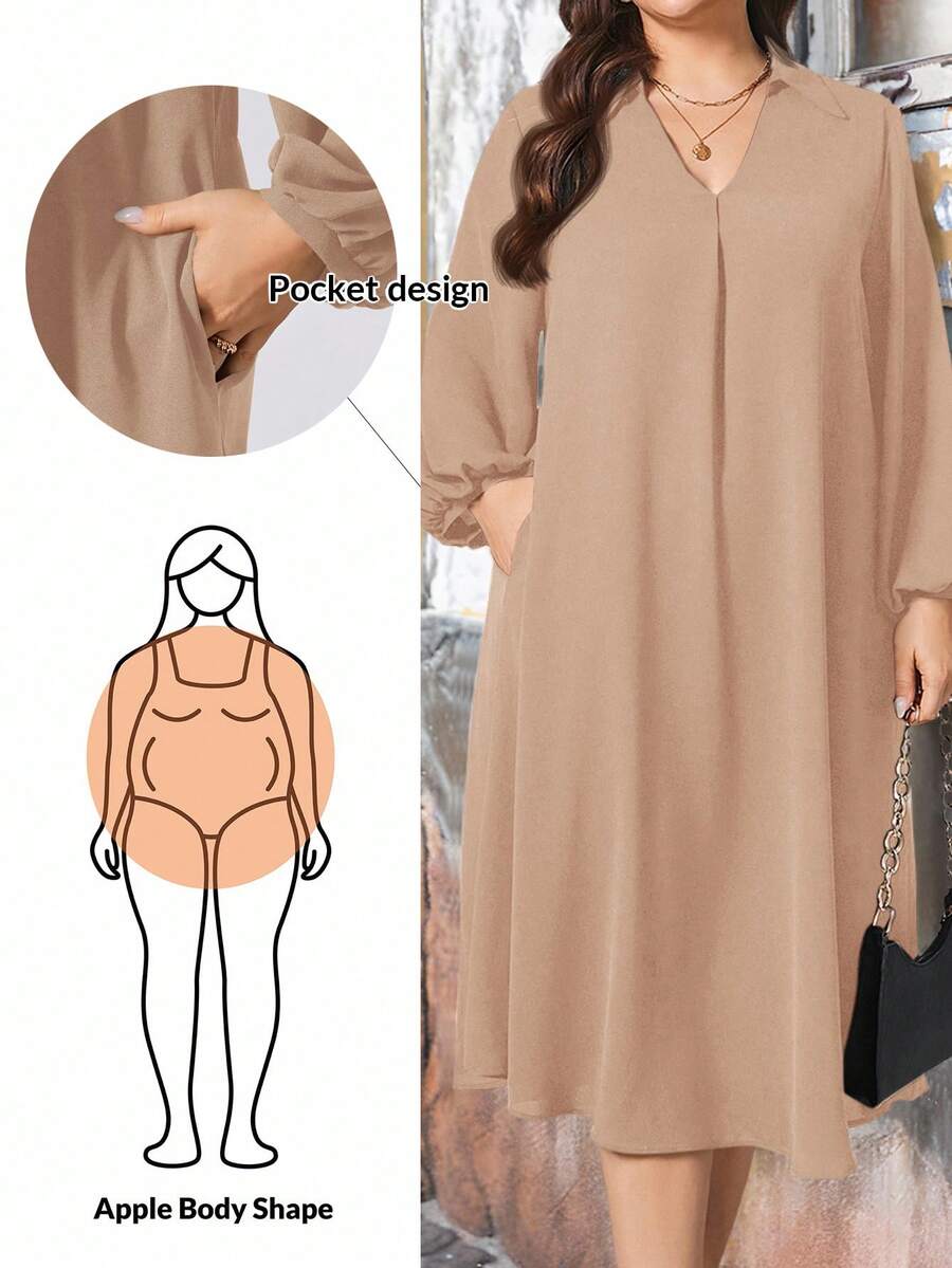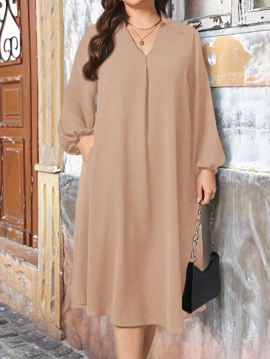 Vestido largo de manga larga con cuello en v negro, comodo y holgado, de estilo conservador y modesto, ideal para la iglesia y el estilo "old money", para mujeres de talla grande en primavera y verano