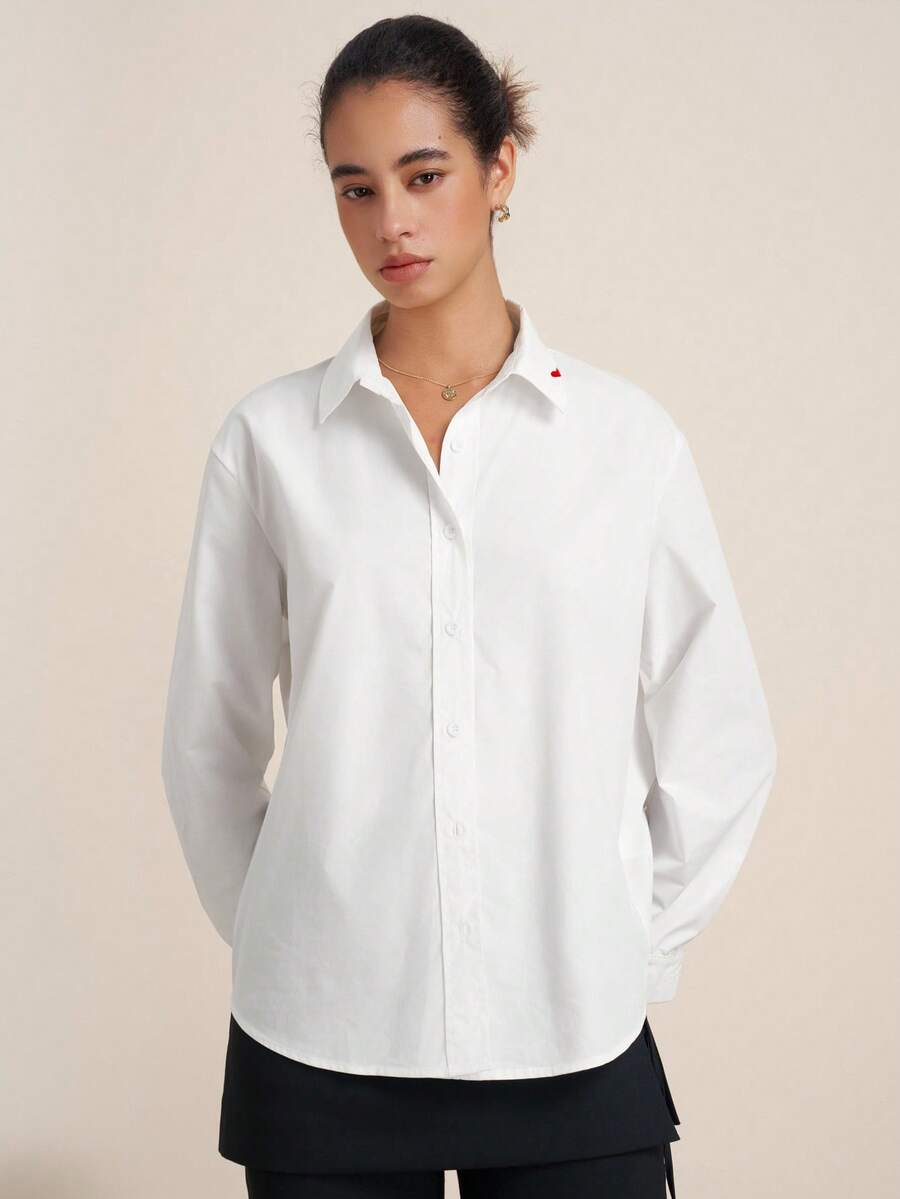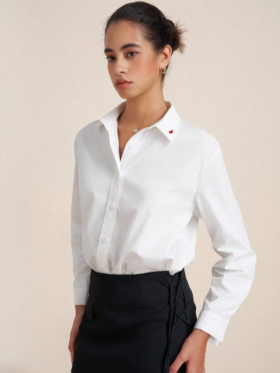 Airaco camisa casual de mujer de manga larga con botones y bordado de corazon