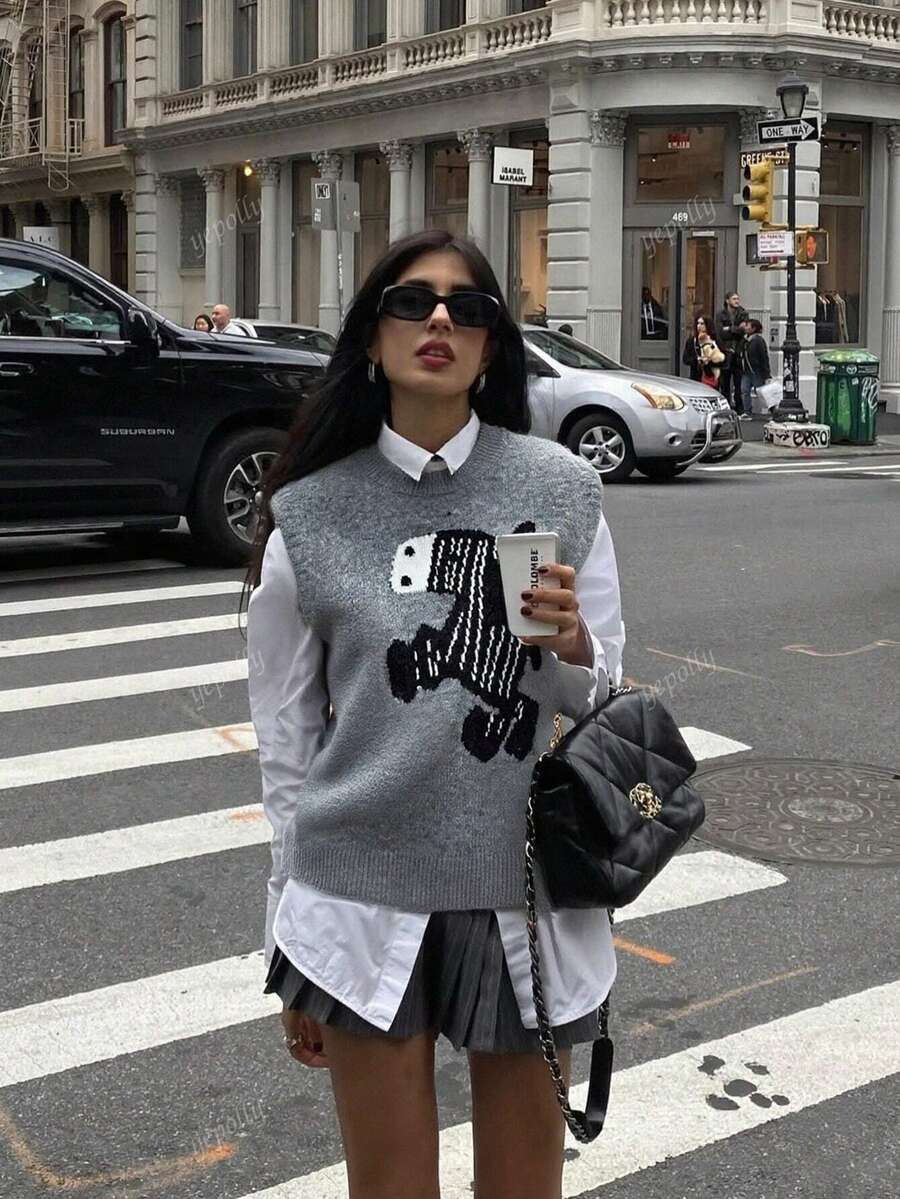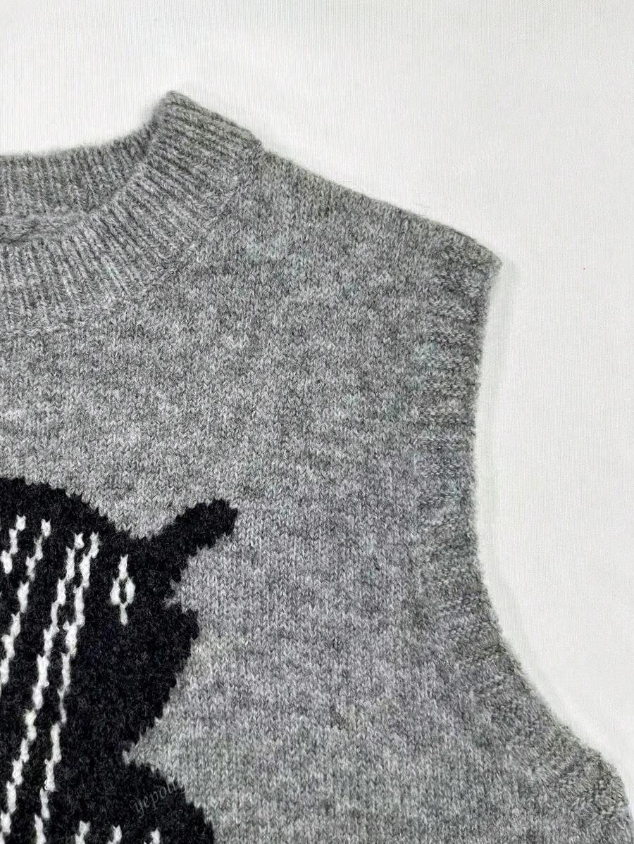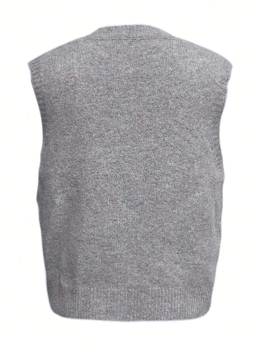 2025 otono/invierno nueva llegada chaleco de punto casual diario de mujer con patron de bloques de color cuello redondo, estilo universitario vintage minimalista y versatil en estilo