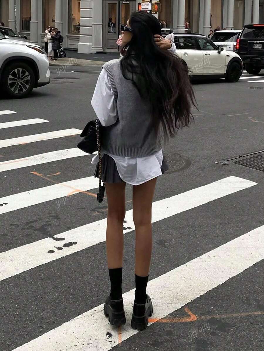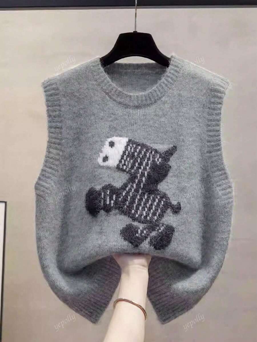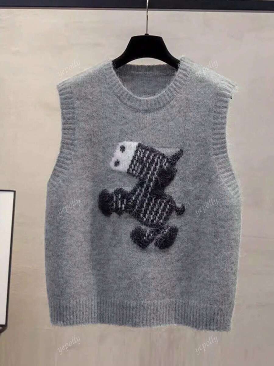 2025 otono/invierno nueva llegada chaleco de punto casual diario de mujer con patron de bloques de color cuello redondo, estilo universitario vintage minimalista y versatil en estilo