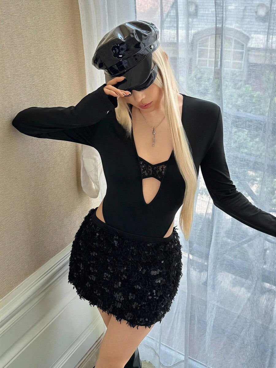 Ardnt enterizo de manga larga con escote en v y encaje, estilo sexy para fiesta de halloween, y2k