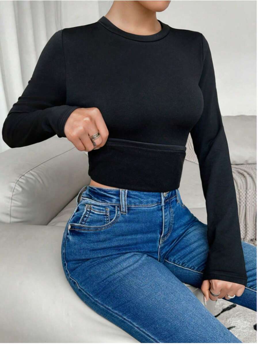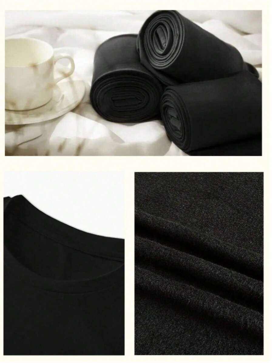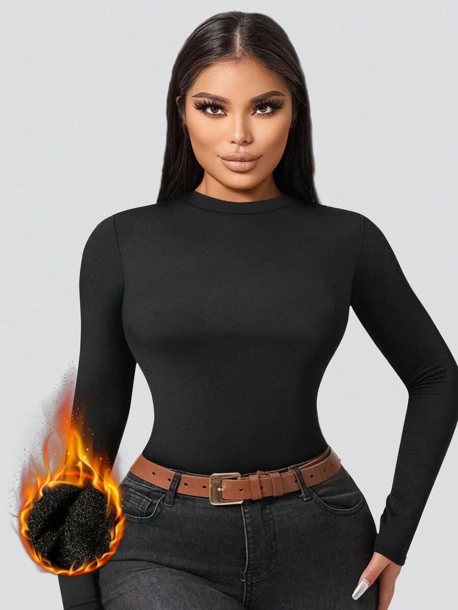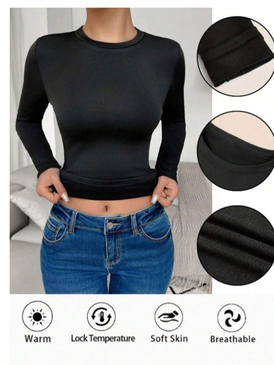 1 pieza camiseta de manga larga con cuello redondo, forro termico, ajustada, casual y de activewear para yoga, para otono/invierno