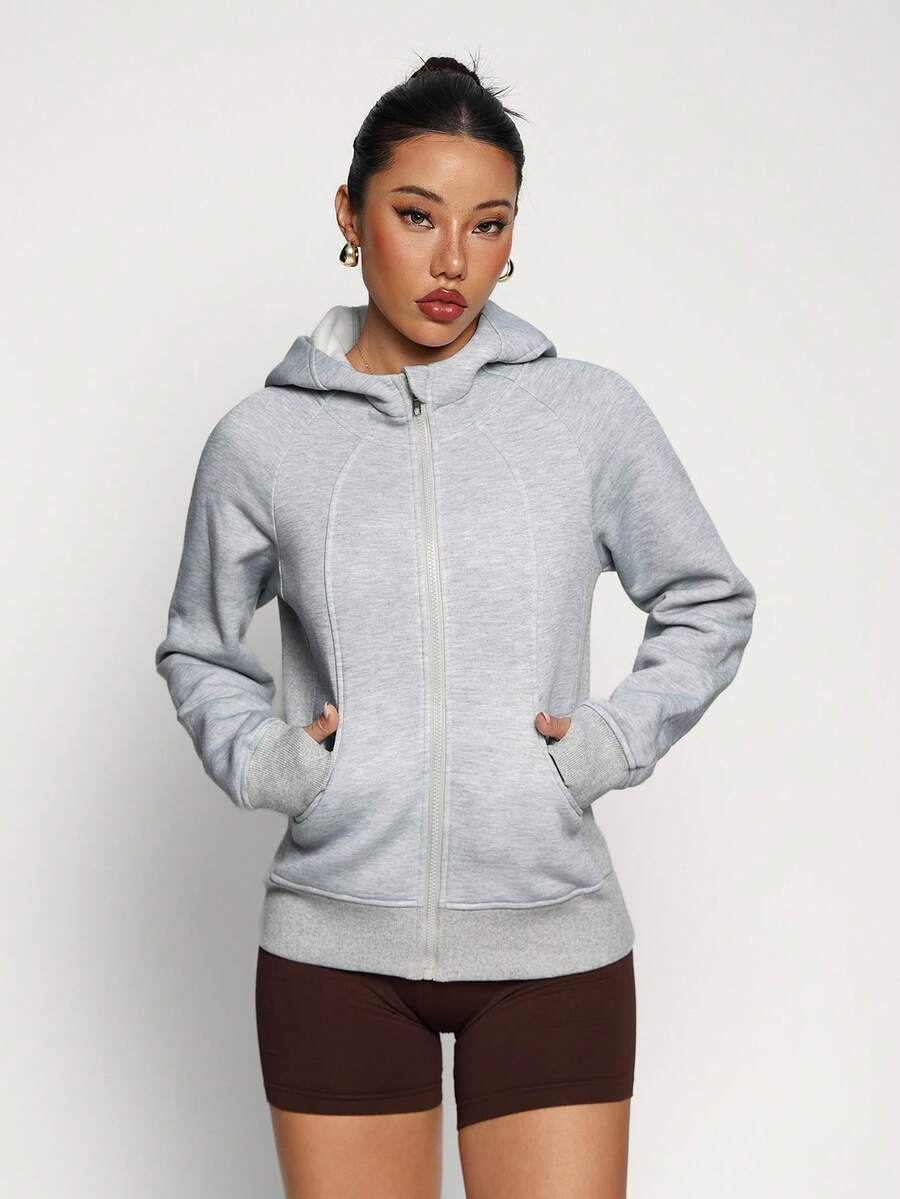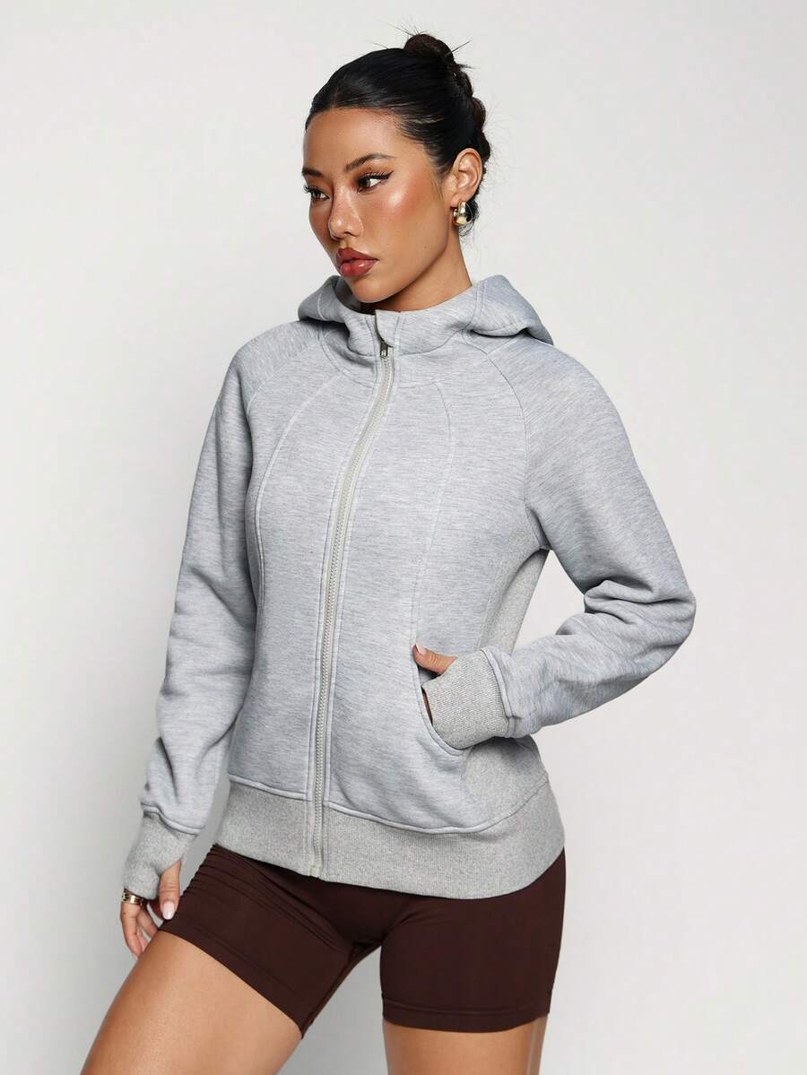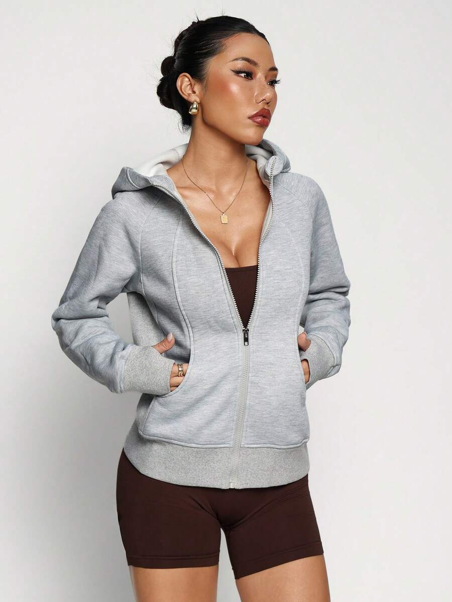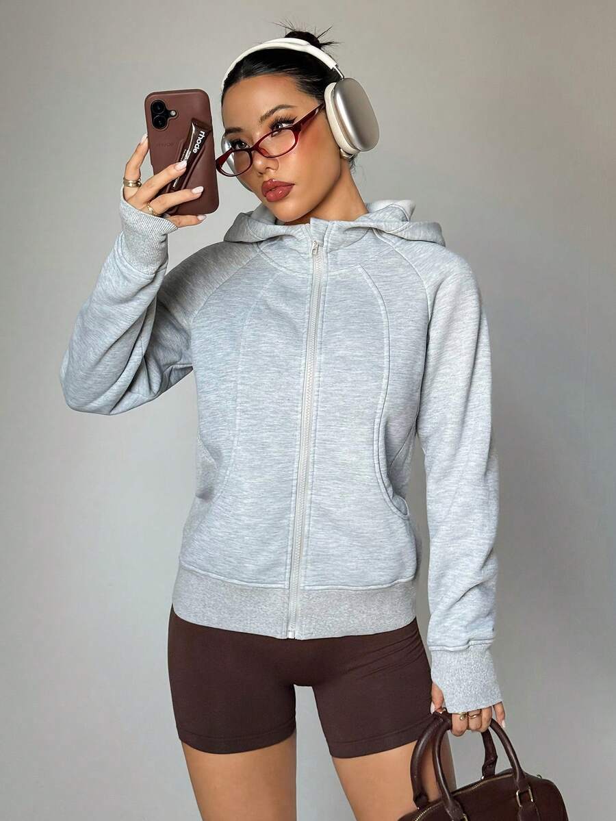 ¡esencial deportivo! sudadera con buzos con capucha y cremallera gris claro, perfecta para el uso diario y las sesiones de gimnasio