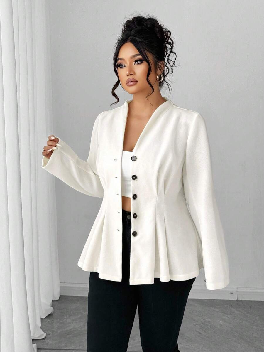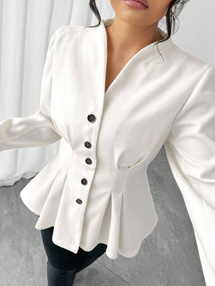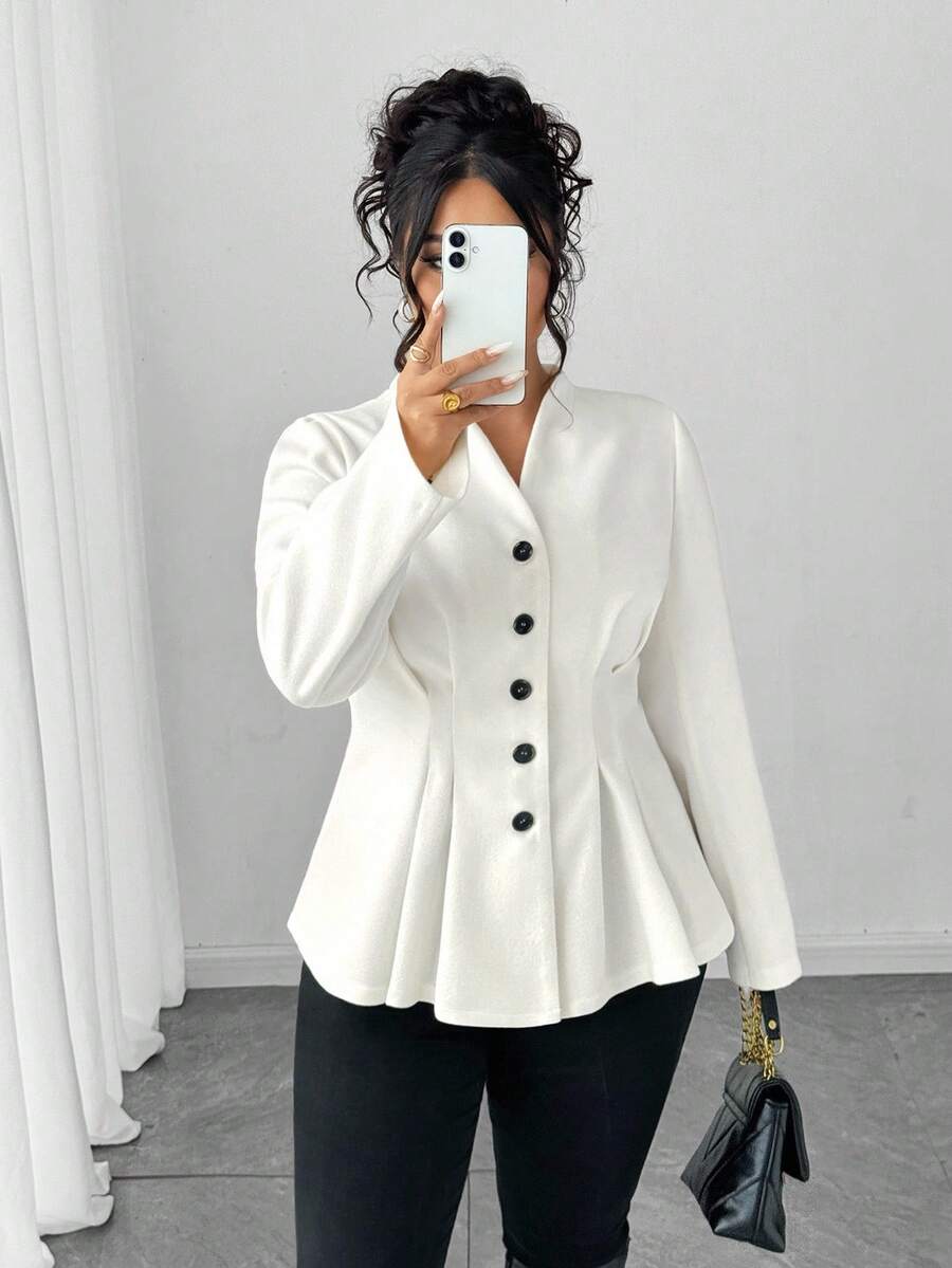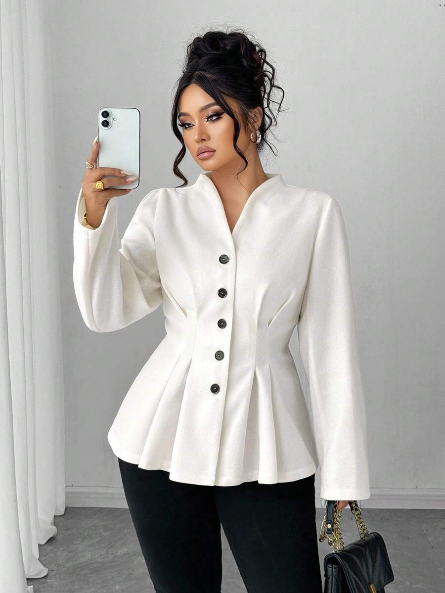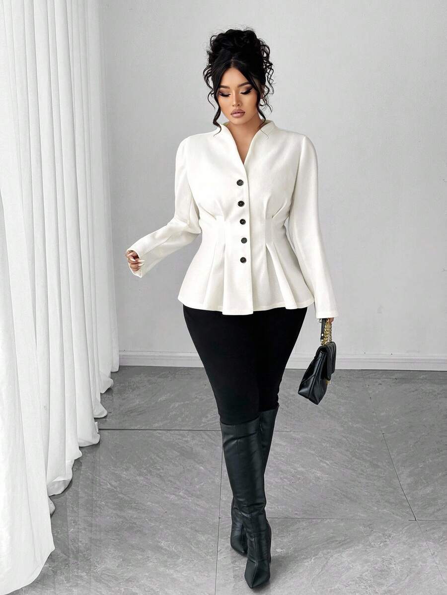 Abrigo elegante de talla grande de unicolor con cintura cenida, para otono/invierno