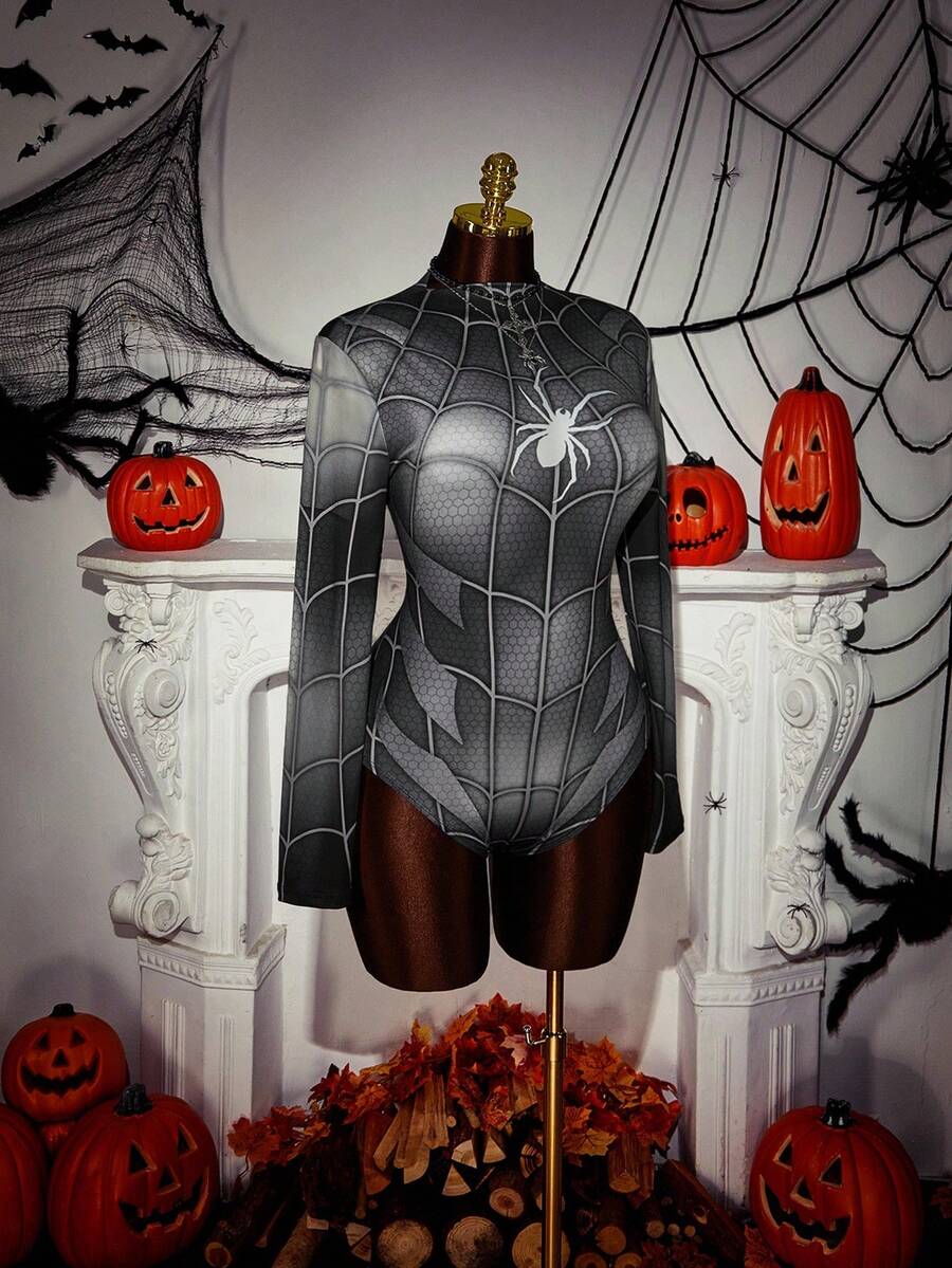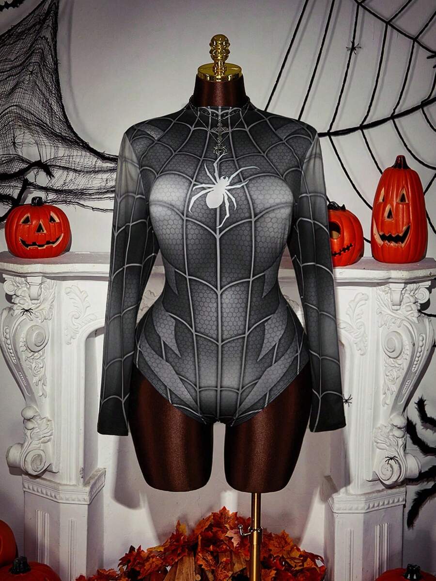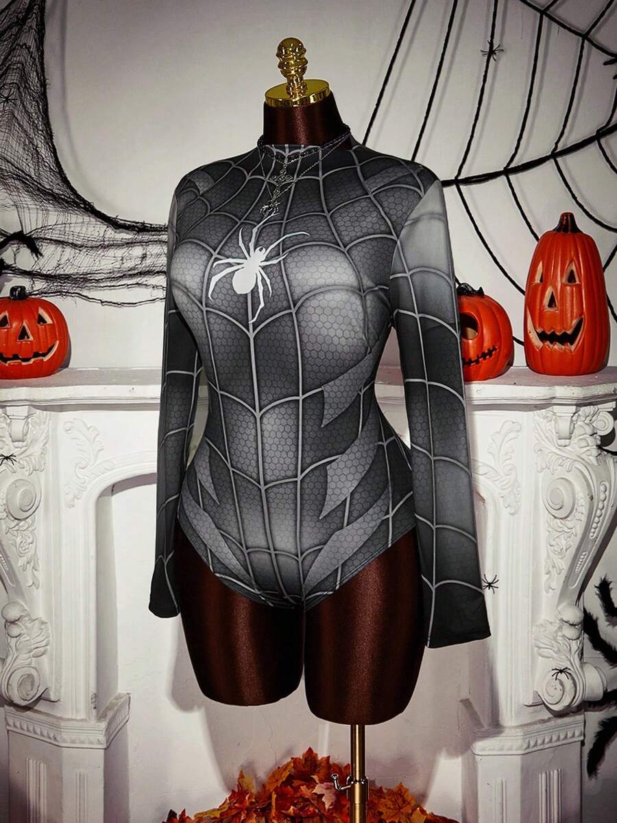 Amplova body ajustado de talla grande con estampado de arana, cuello alto y mangas raglan