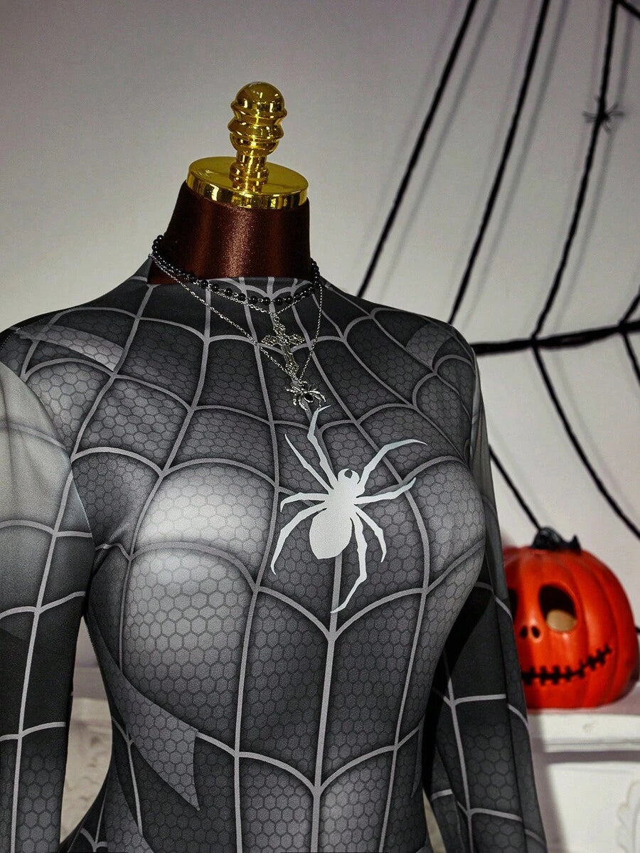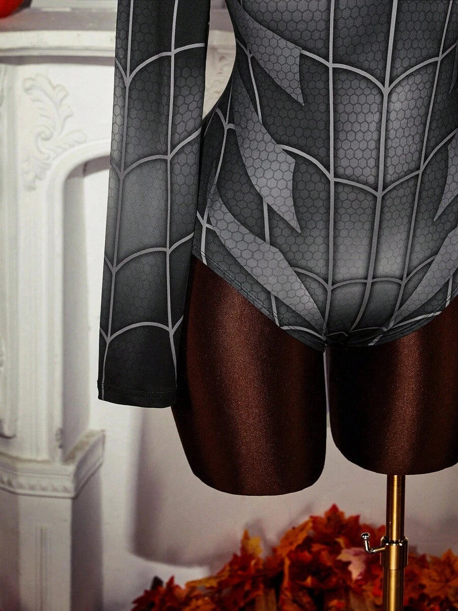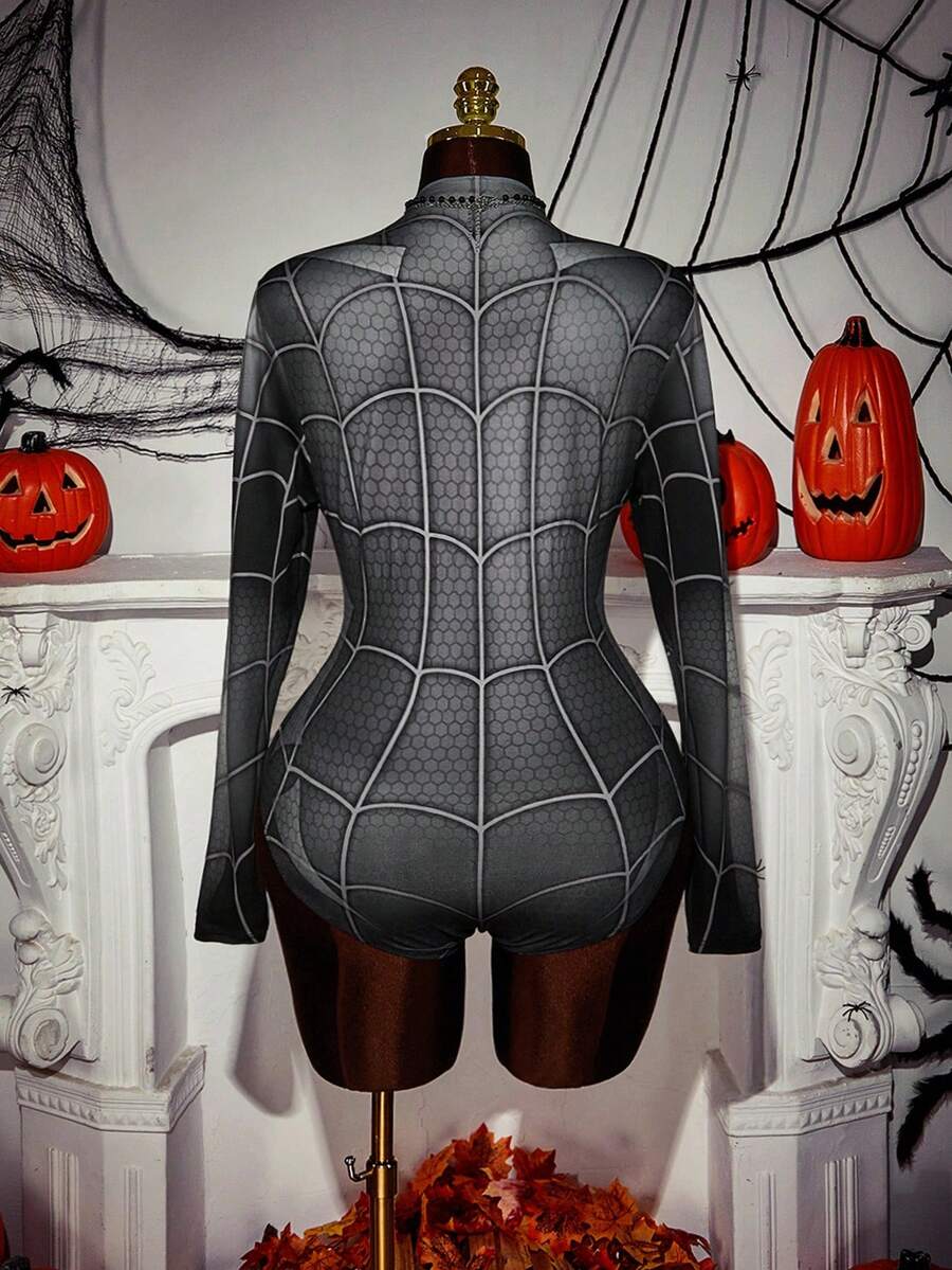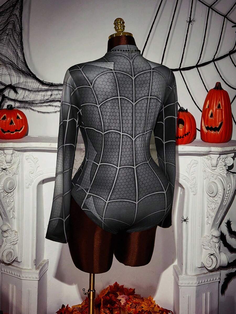 Amplova body ajustado de talla grande con estampado de arana, cuello alto y mangas raglan