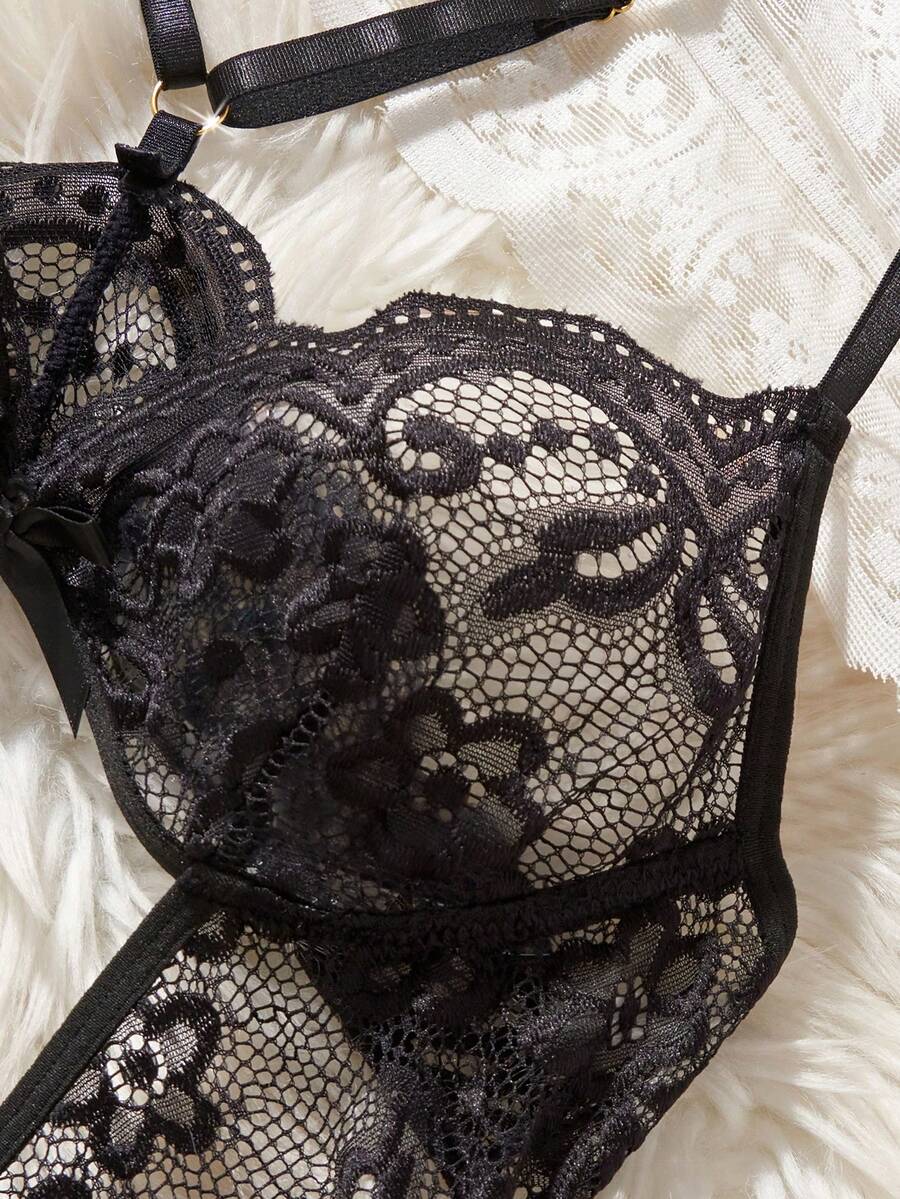 Detalles: Espalda al aire, Encaje en contraste, Transparente, Lazo trasero
