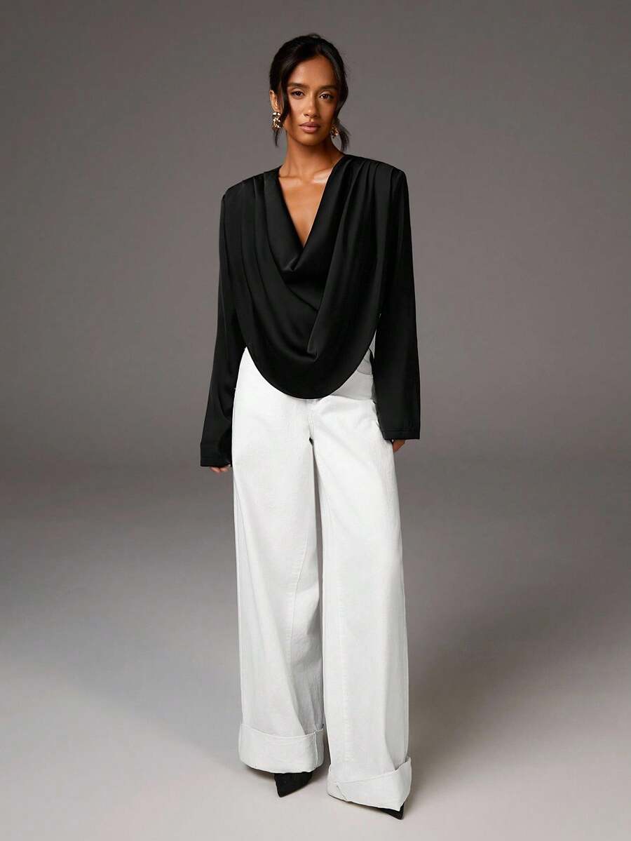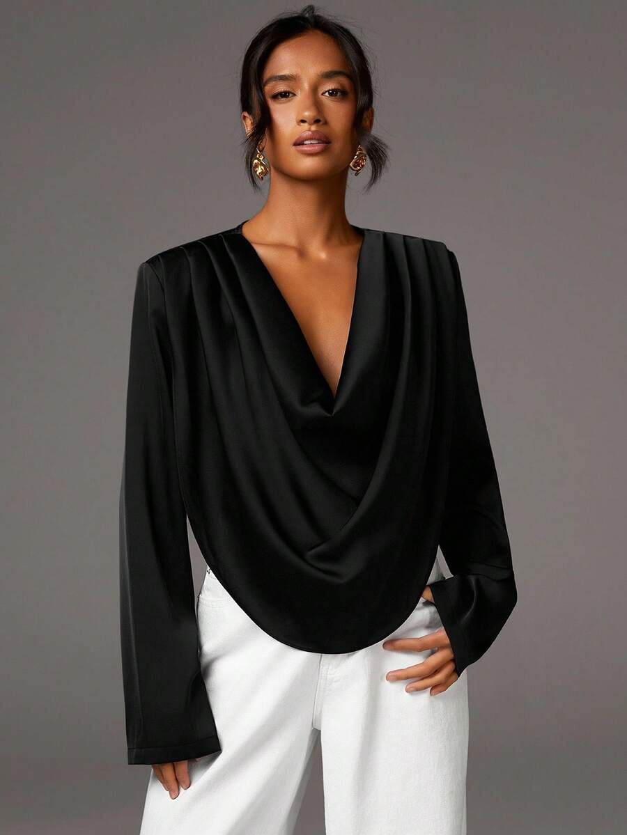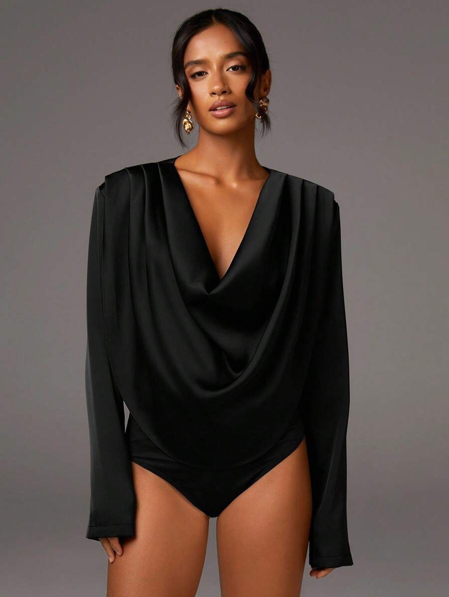 Athiral body de mujer de unicolor con escote pronunciado y manga larga, elegante