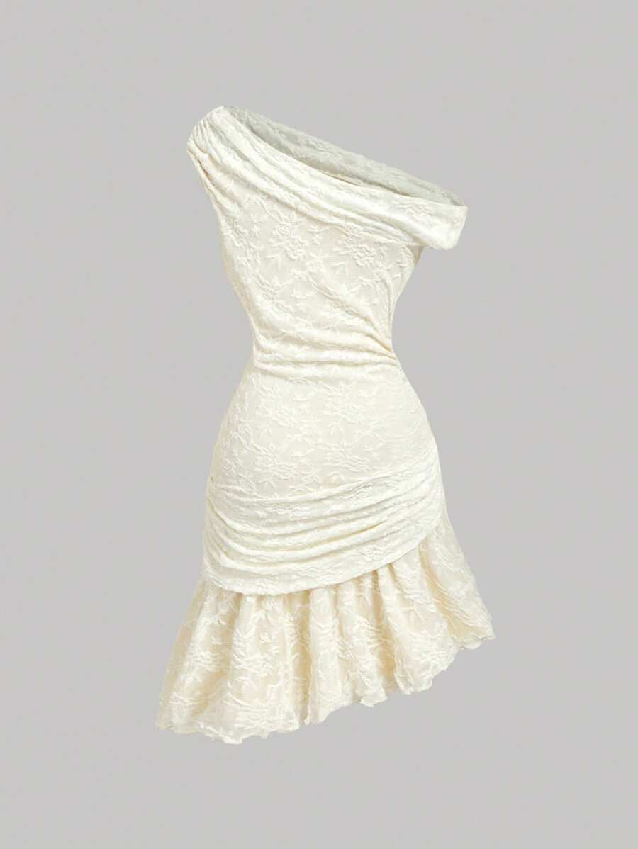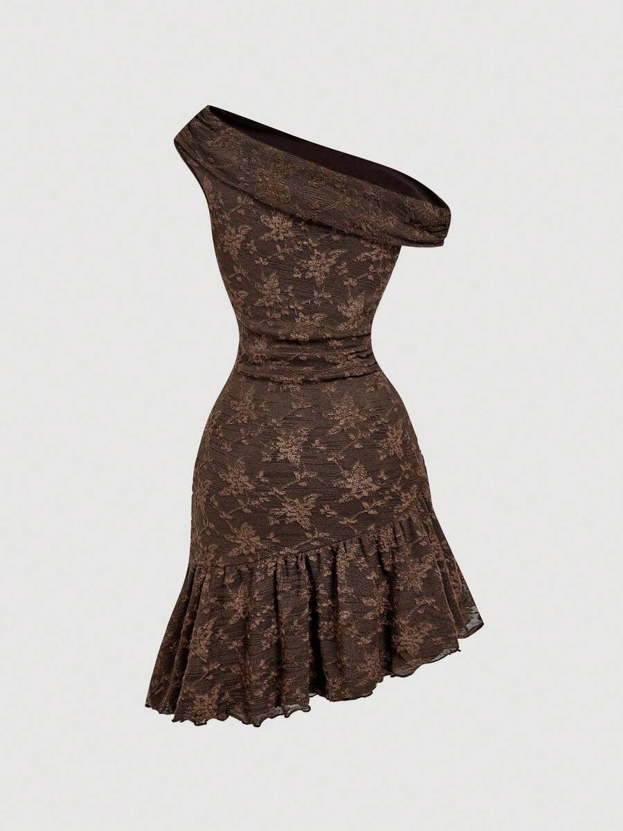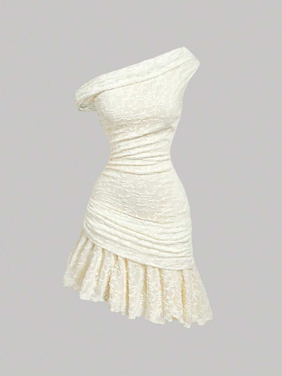 X belle mariano mod 1 pieza vestido corto con hombros descubiertos, volantes y textura