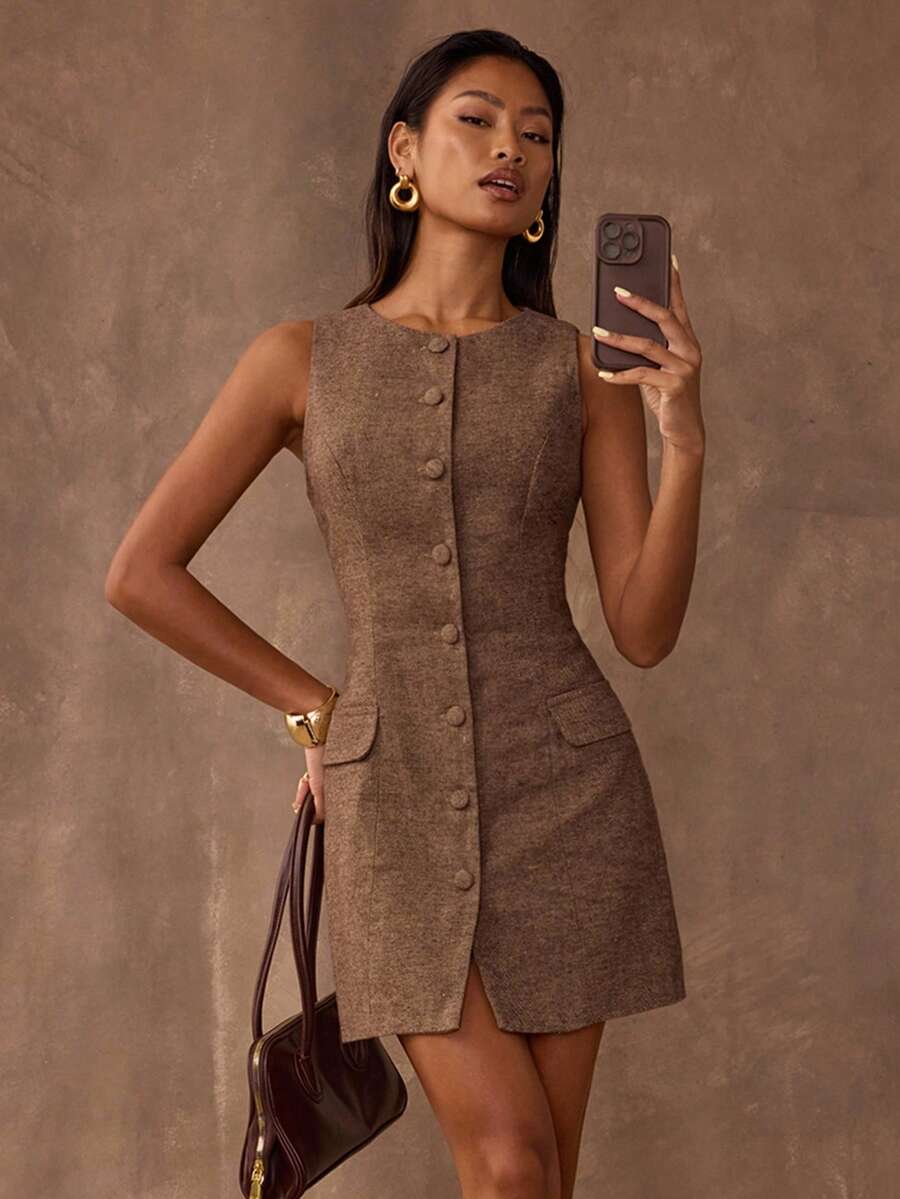 Vestido minimalista de ajuste cenido, sin mangas y con cintura entallada