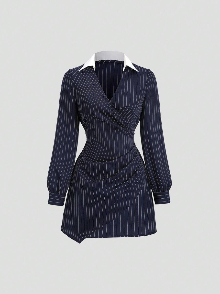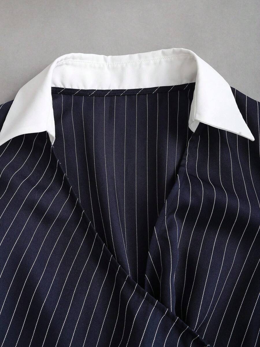 Vestido de mujer de rayas vintage con cuello en v sin mangas, ajustado y con bajo irregular, sexy y de ajuste cenido para ir al trabajo