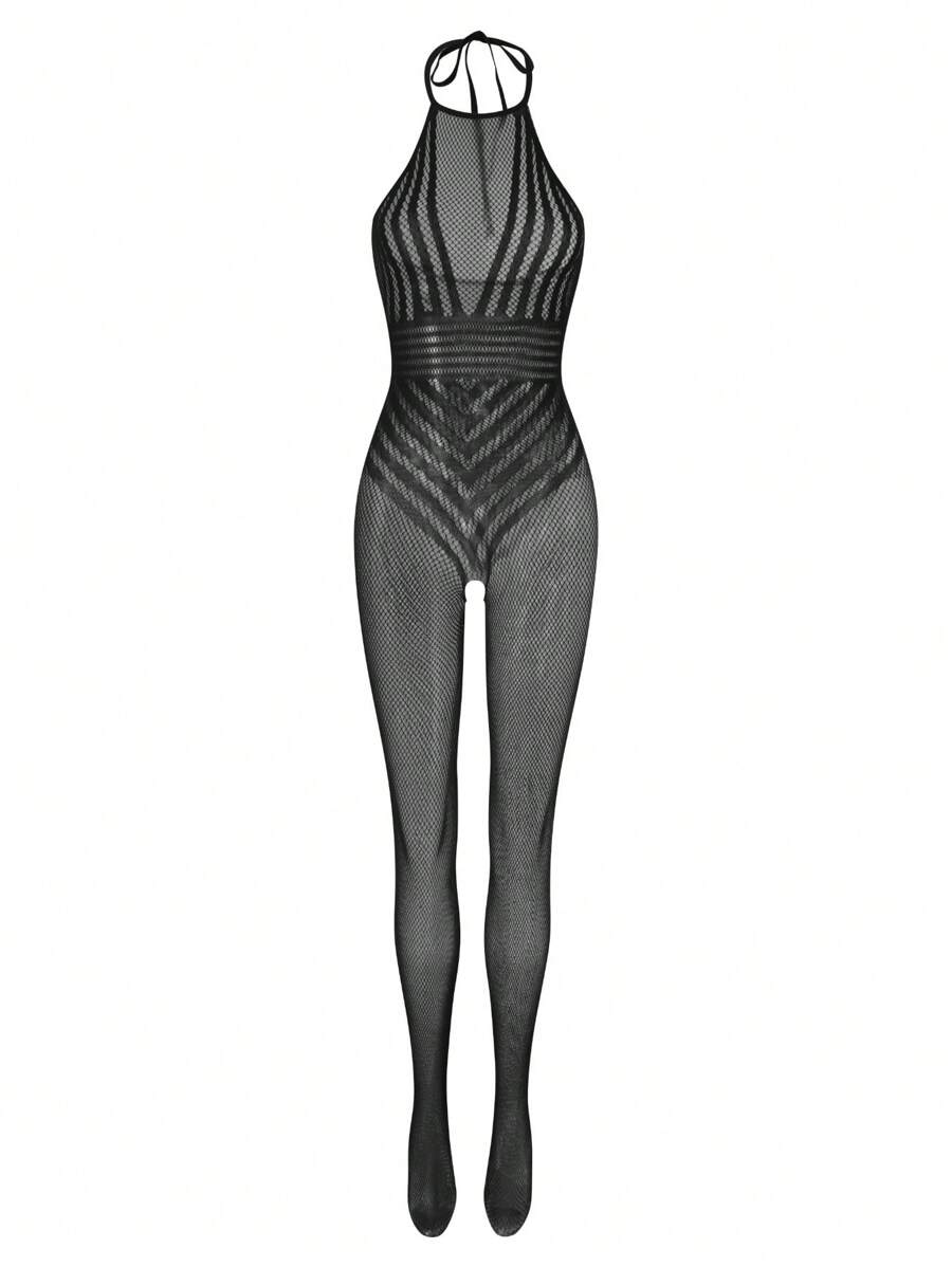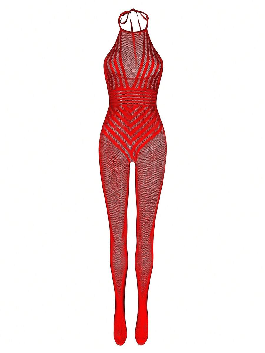 1 pieza enterizo ajustado con espalda descubierta, estilo lenceria sexy de red para mujer, adecuado para fiestas nocturnas