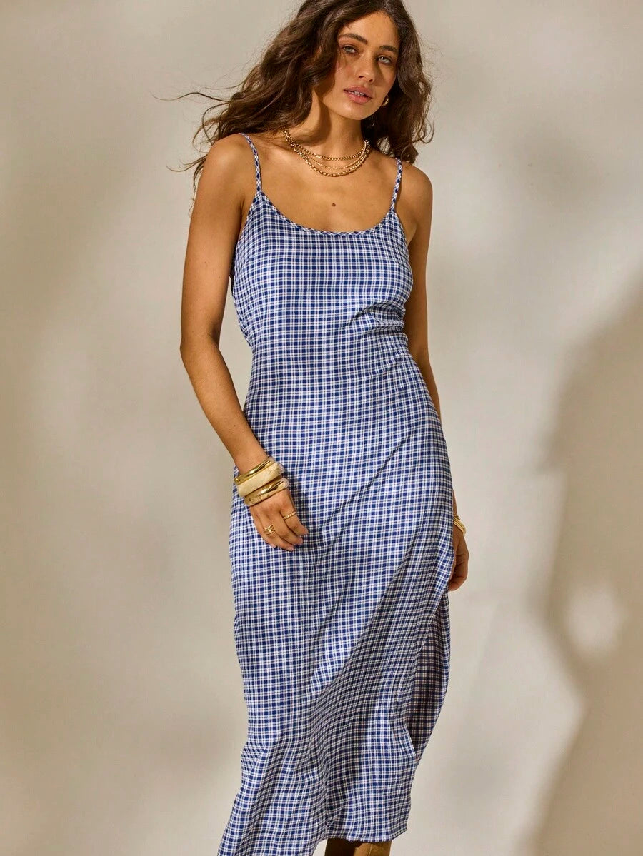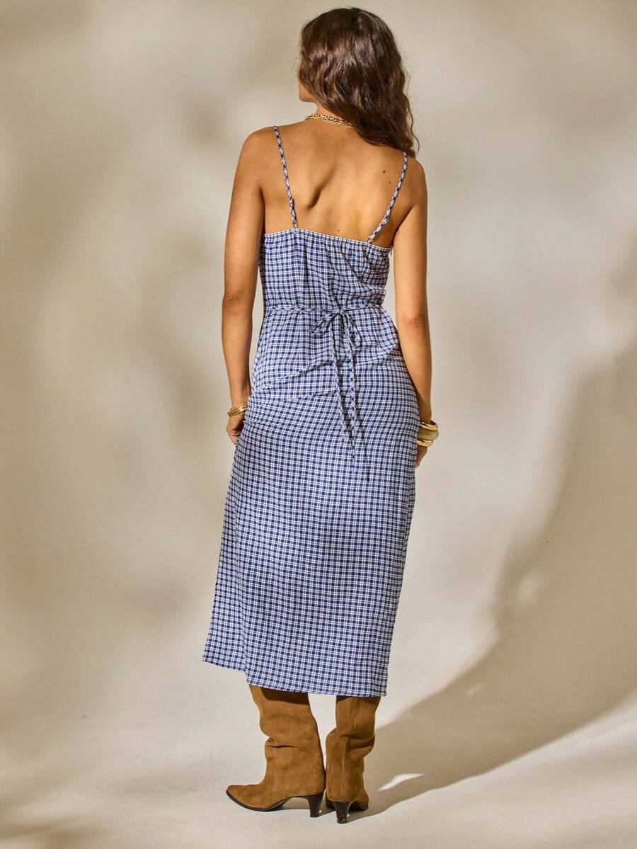Aralina vestido midi basico casual de cuadros escoceses estilo country para verano, otono e invierno