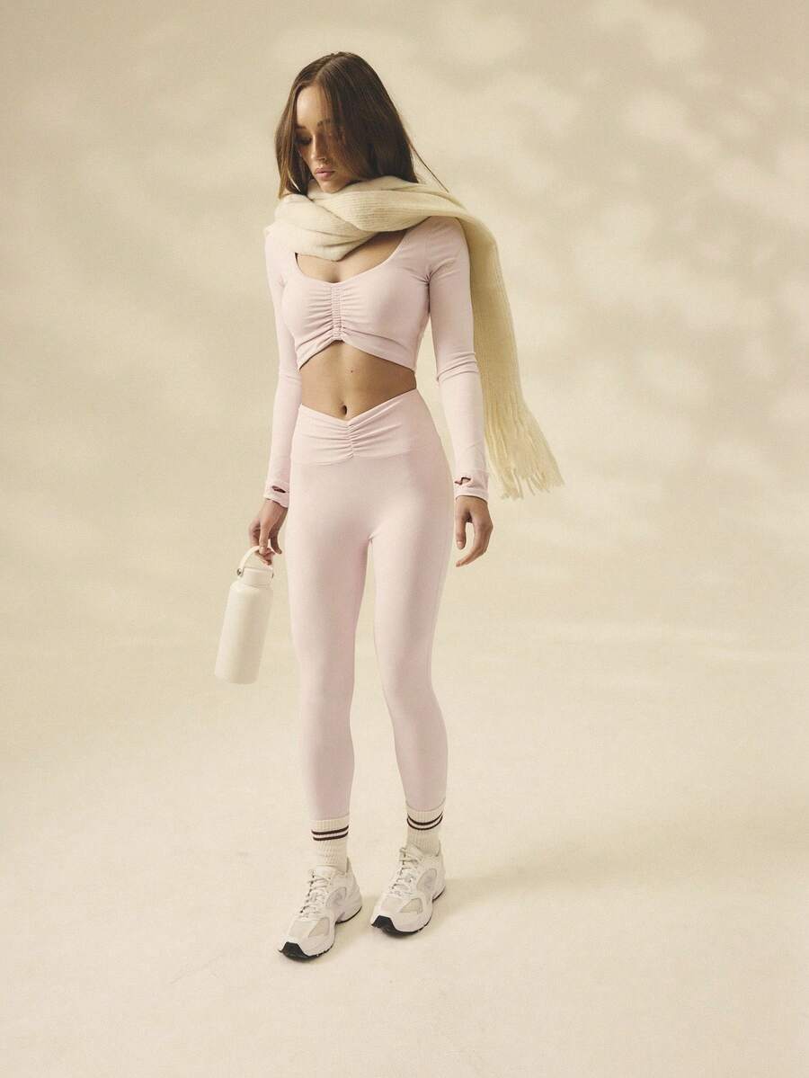 Aralina conjunto deportivo de top de manga larga con pliegues en el busto y leggings de unicolor minimalista para mujer