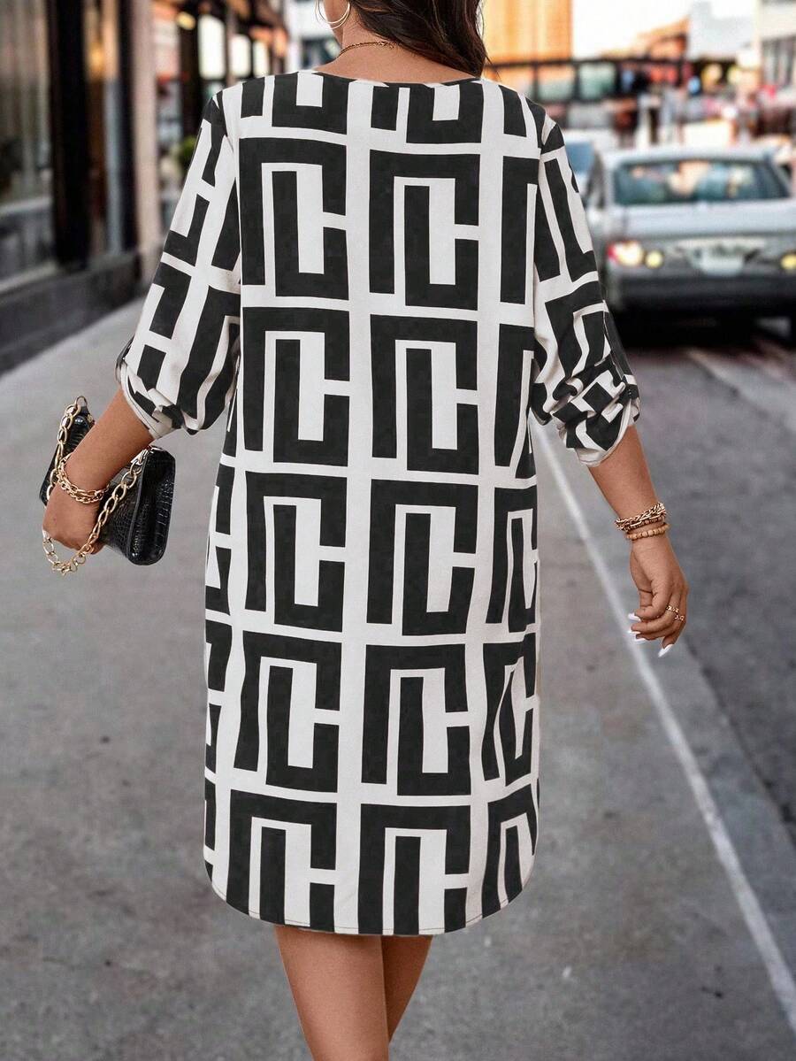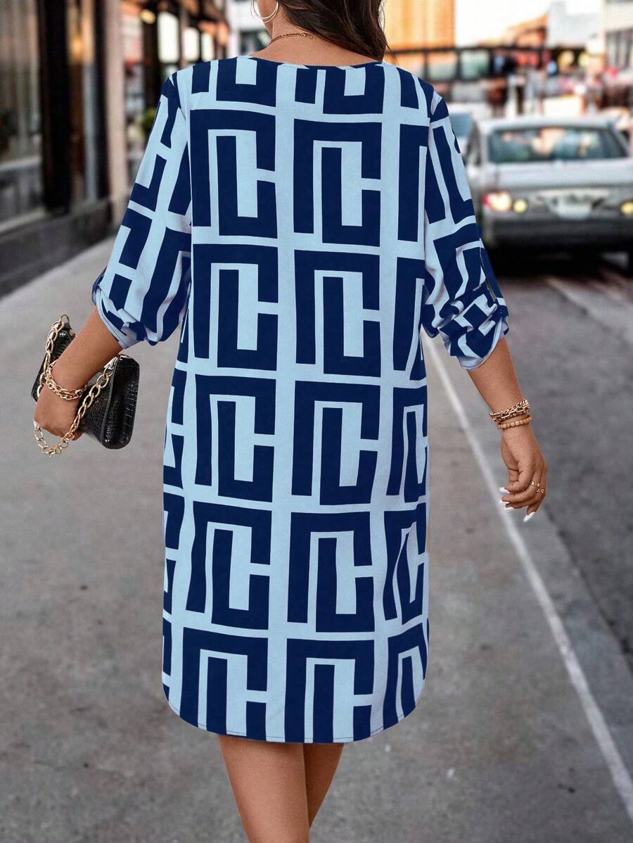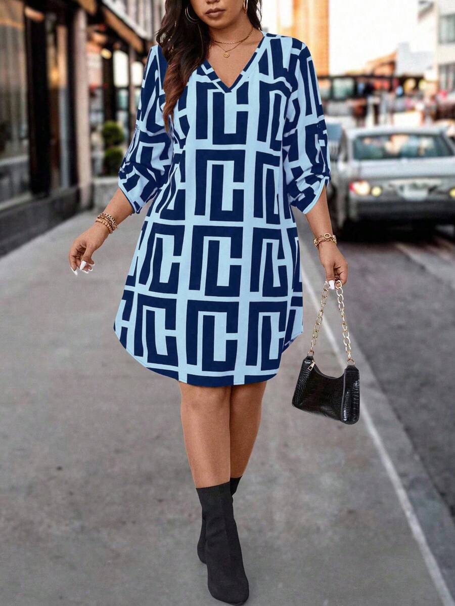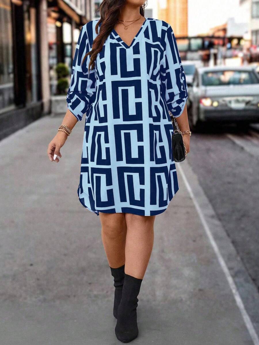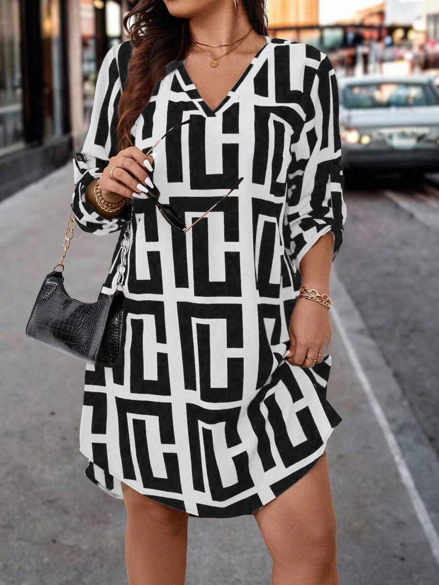 Vestido casual de verano con estampado geometrico para tallas grandes