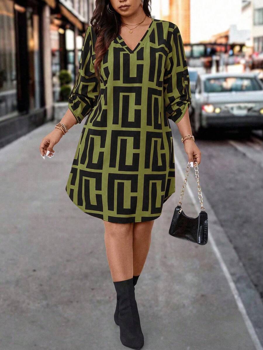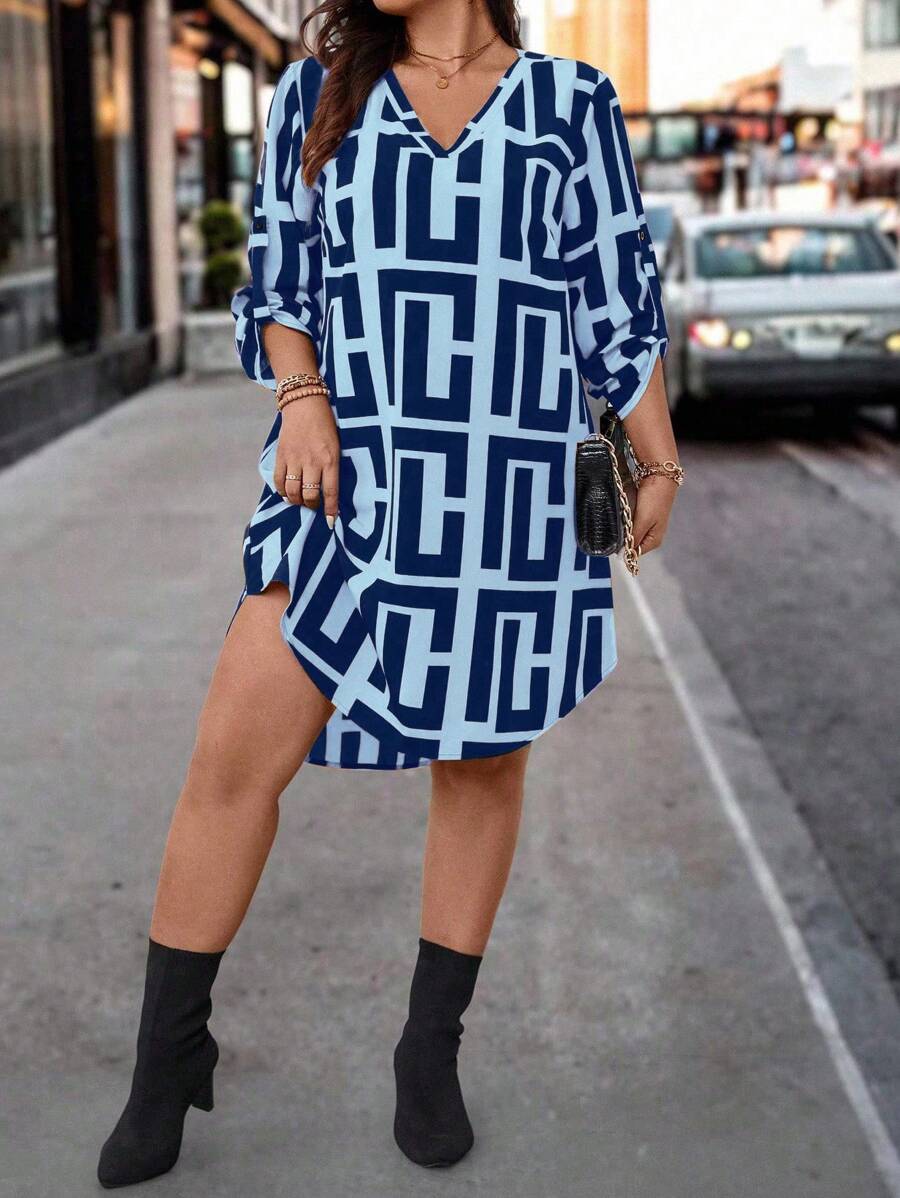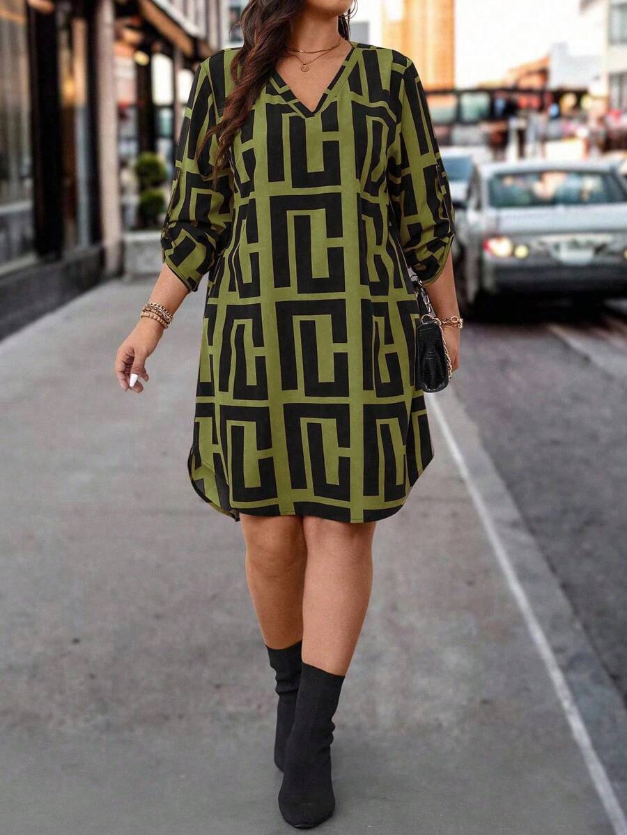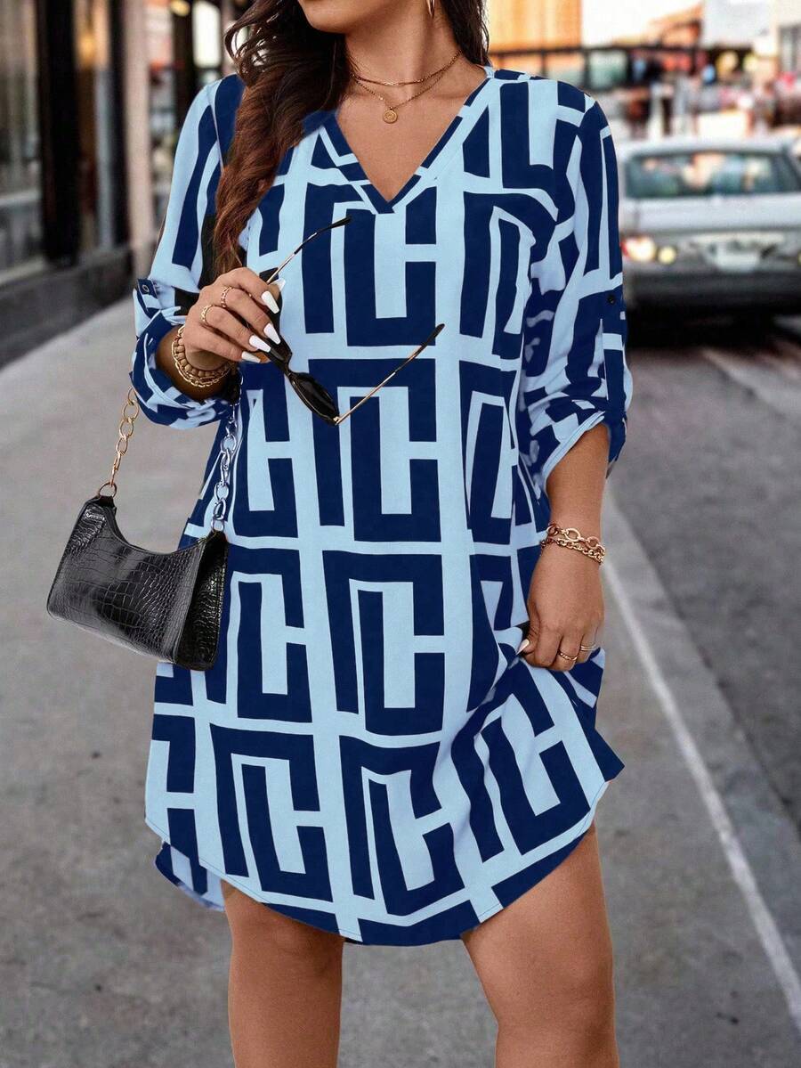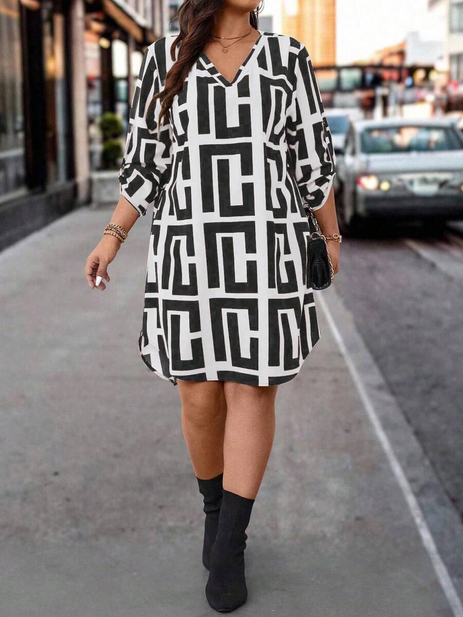Vestido casual de verano con estampado geometrico para tallas grandes