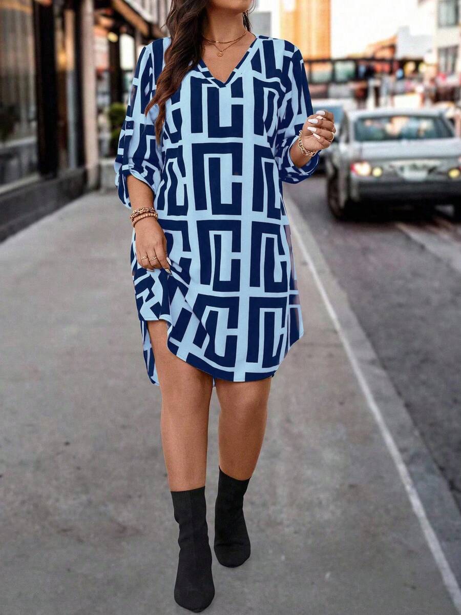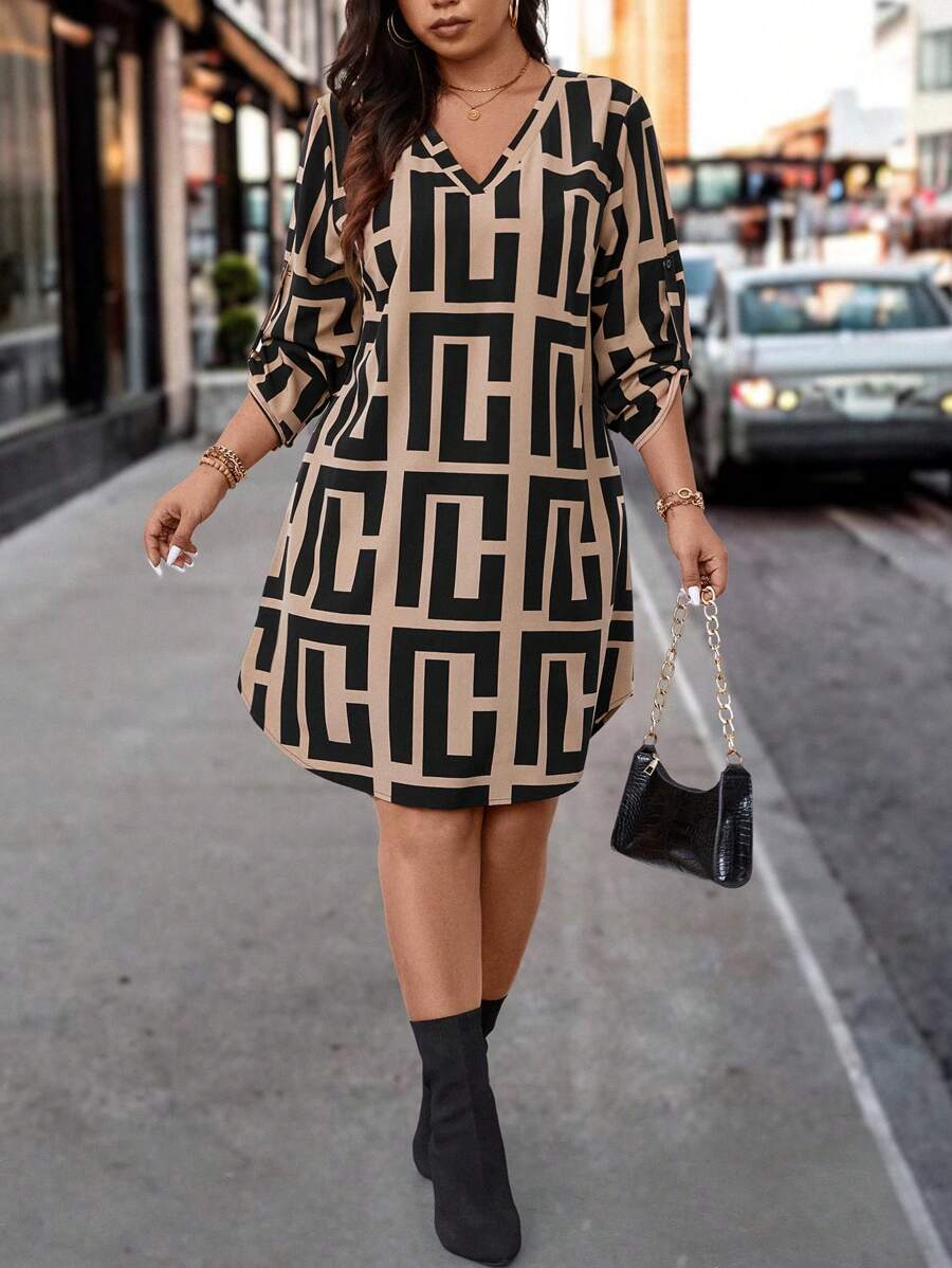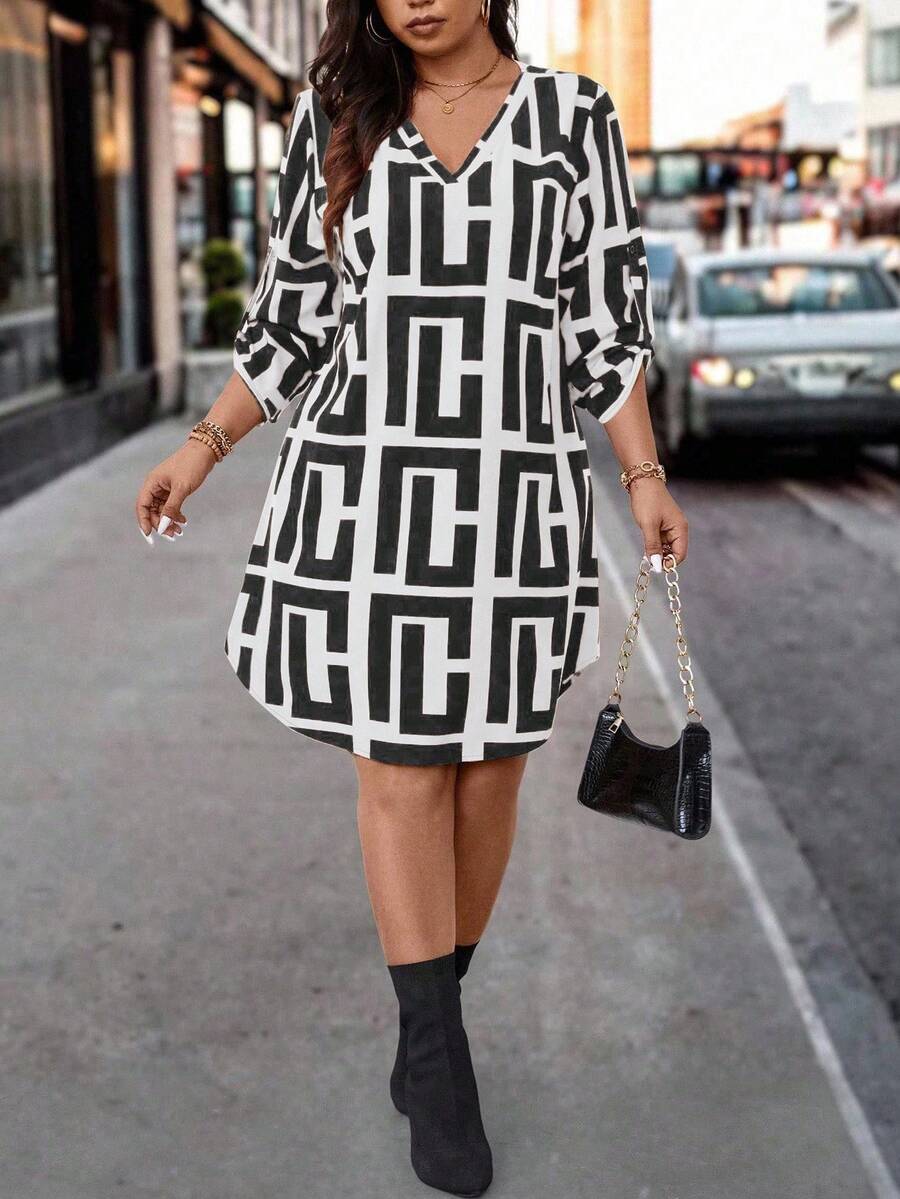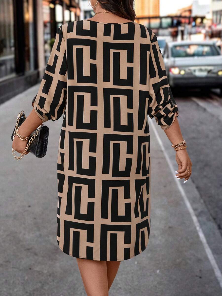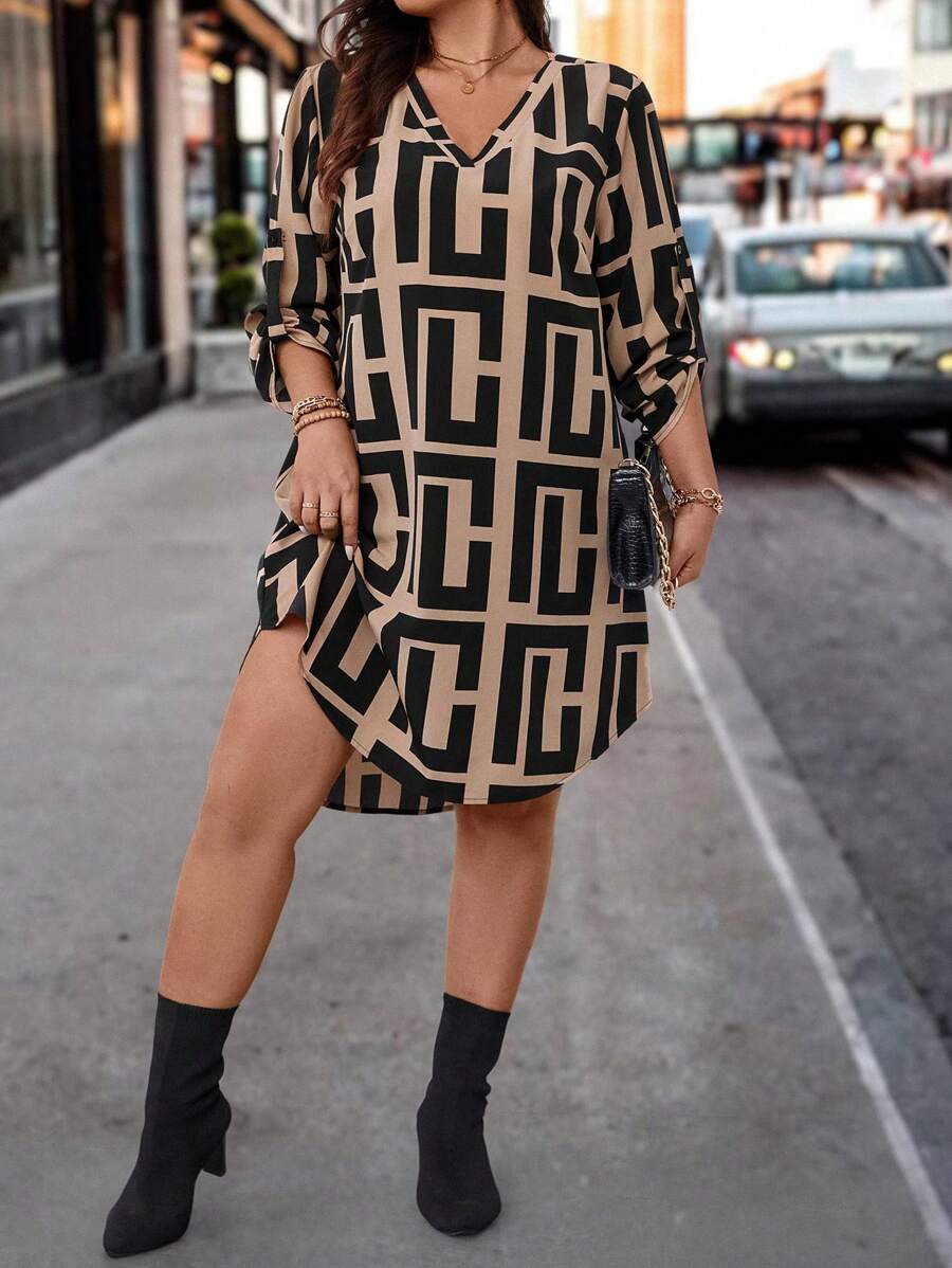 Vestido casual de verano con estampado geometrico para tallas grandes