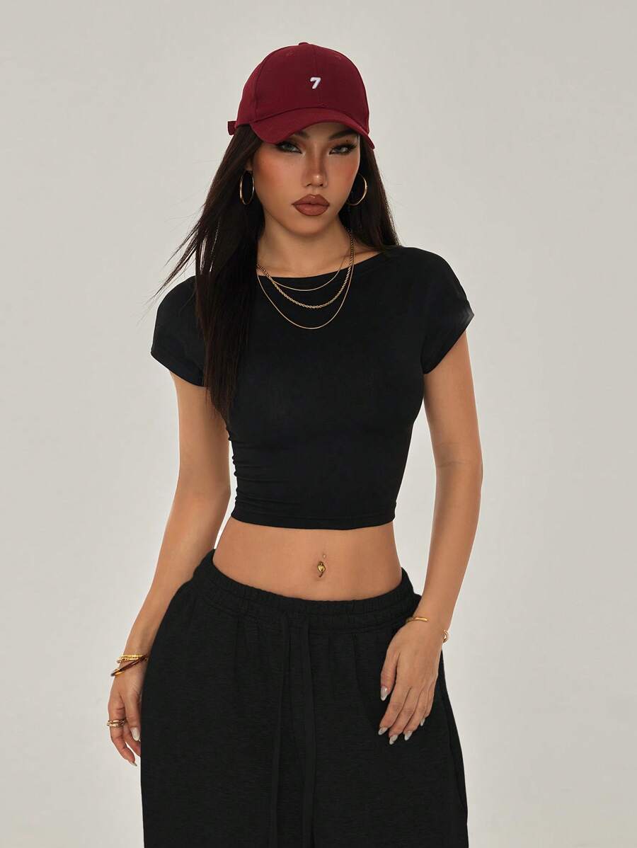 Camiseta sin espalda de unicolor versatil rojo vino y negro, adecuada para el grupo de talla pequena en verano