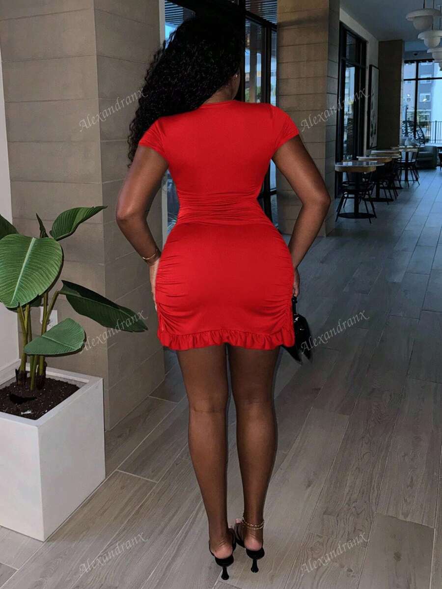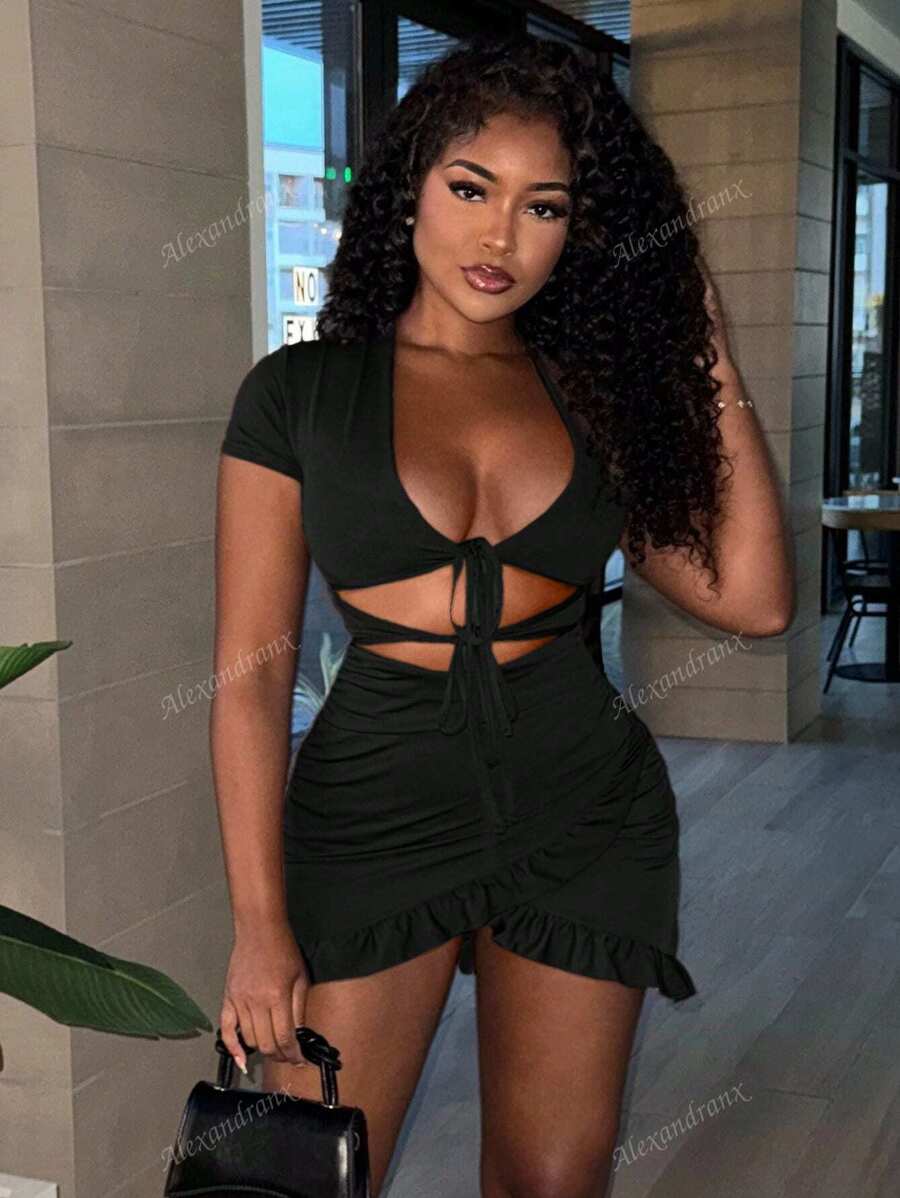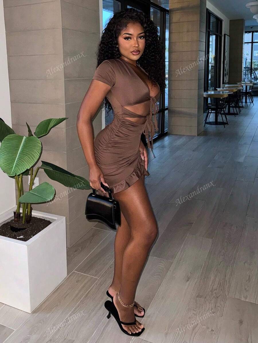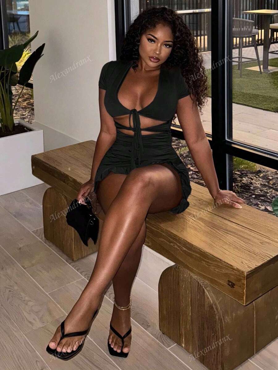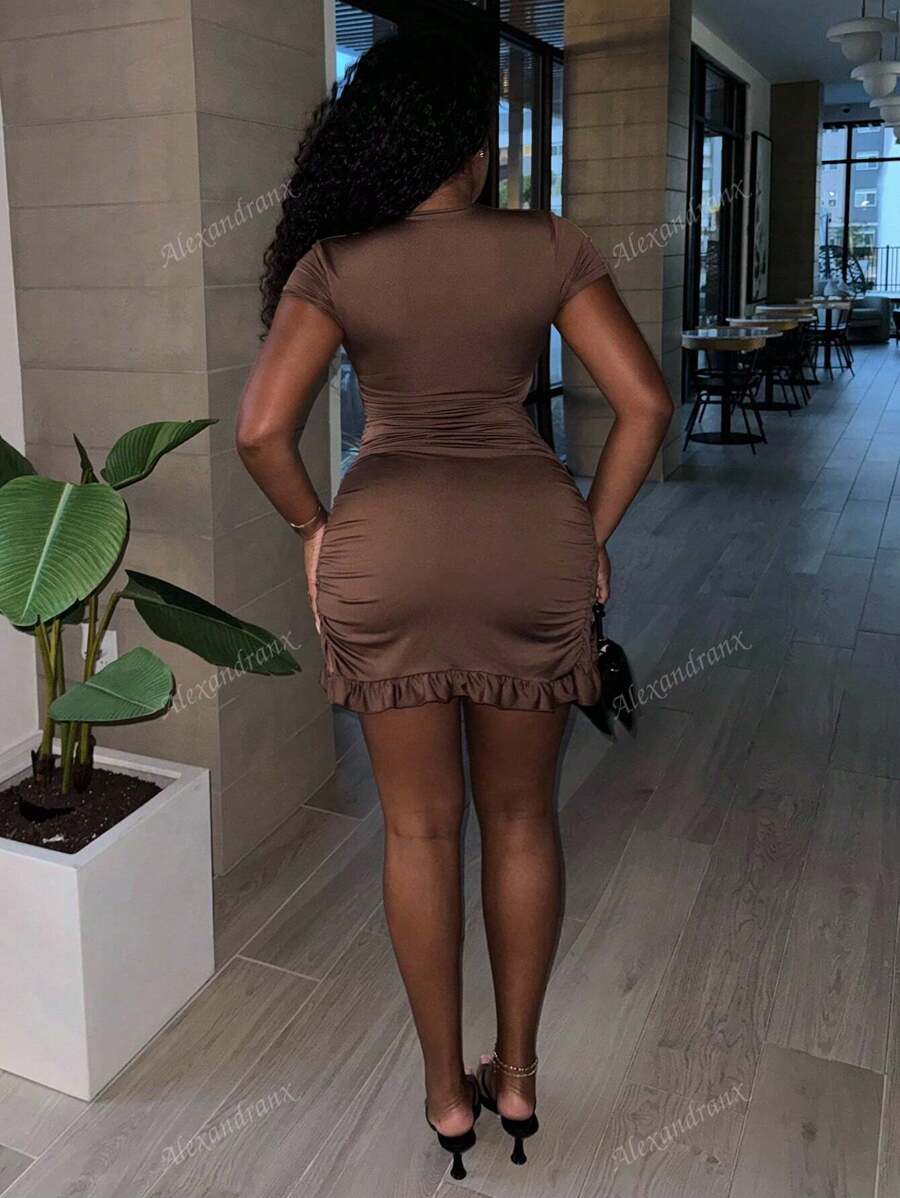 Alexandranx vestido bajo cruzado ribete con fruncido con abertura delantera con cordon