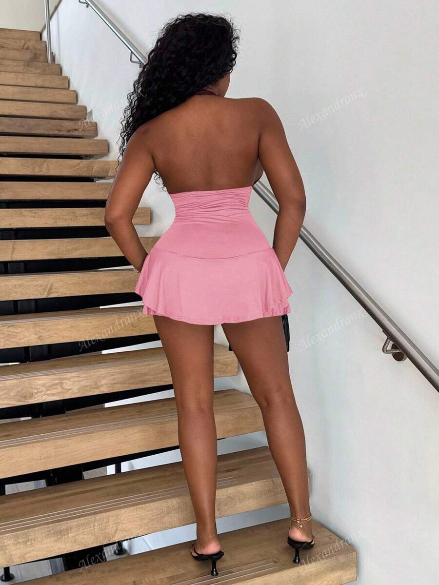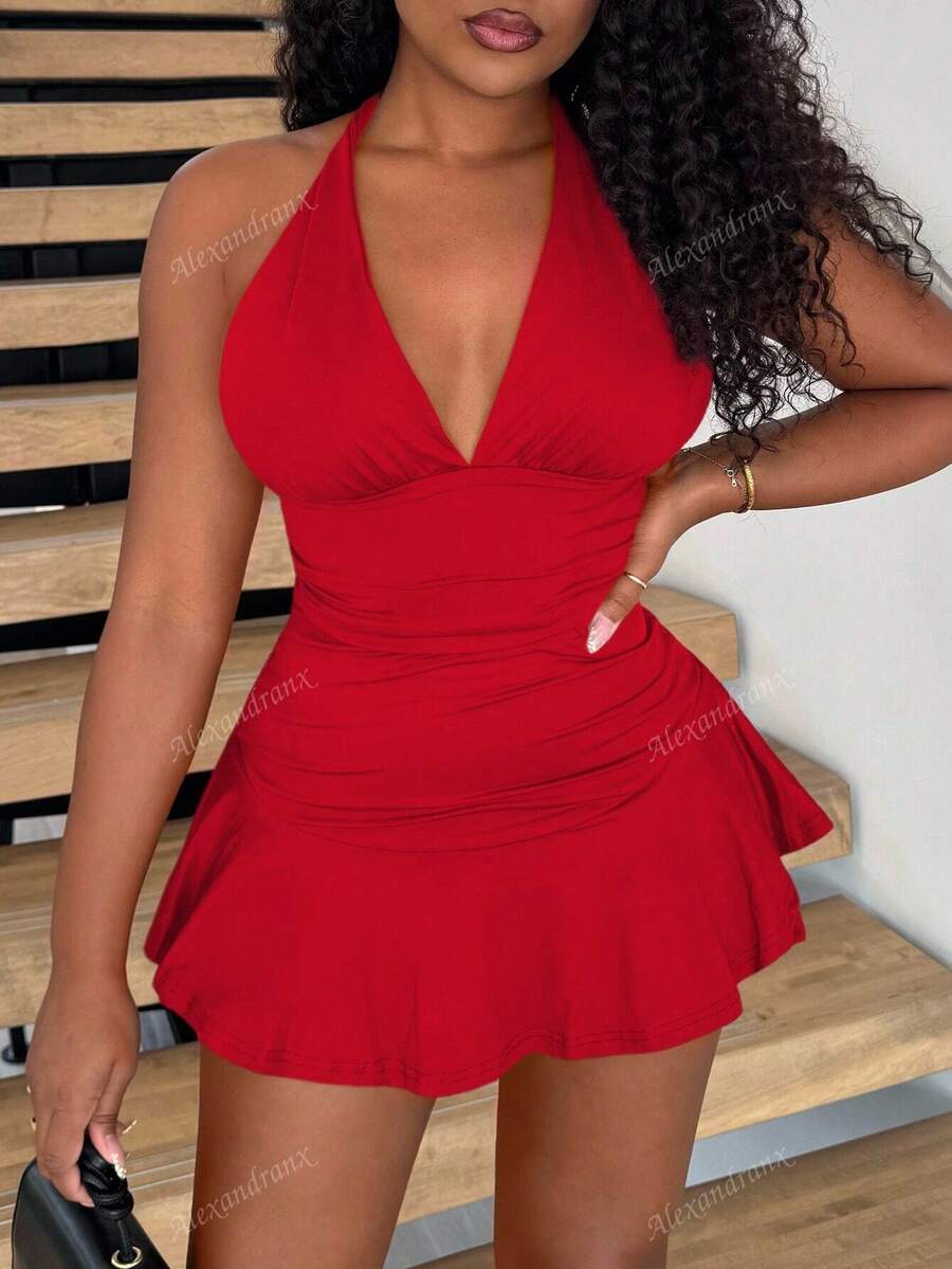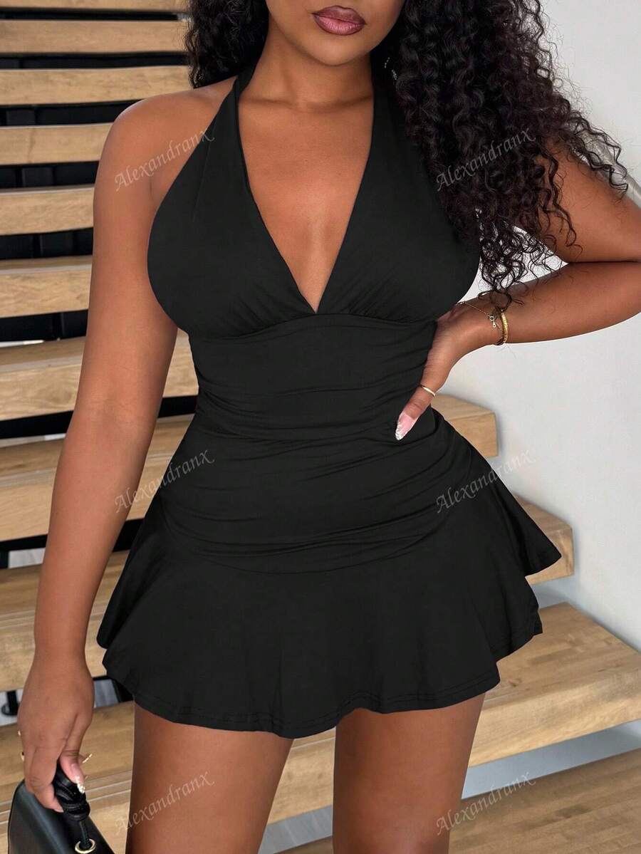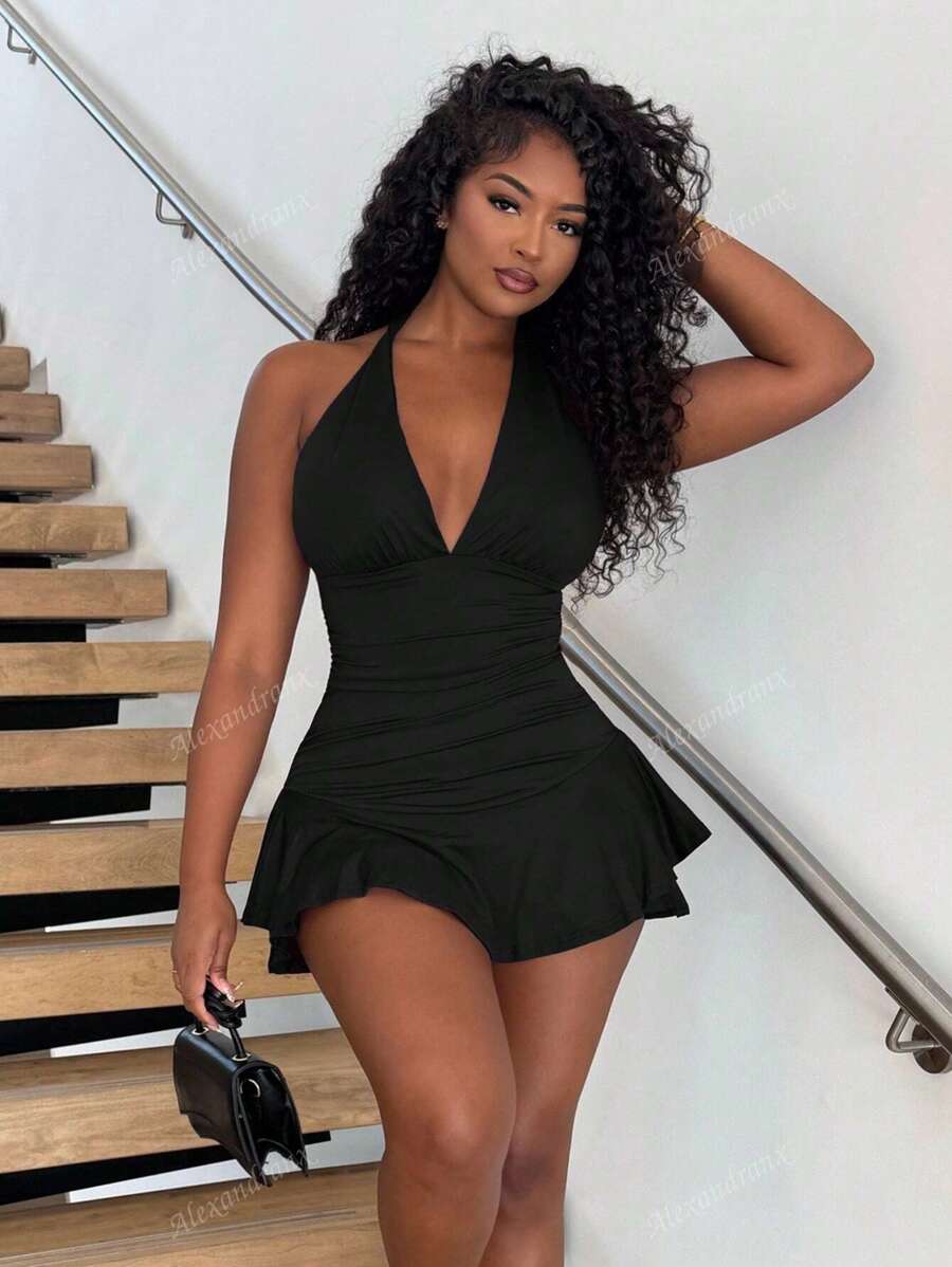 Alexandranx enterizo halter de espalda abierta fruncido bajo con fruncido