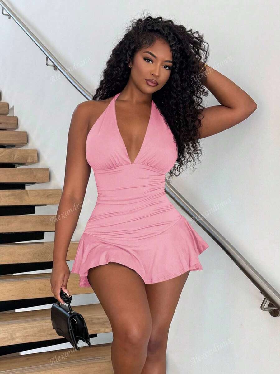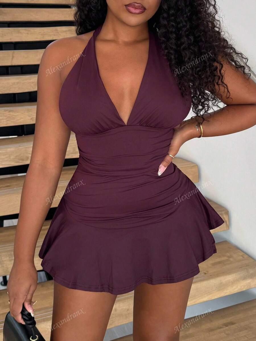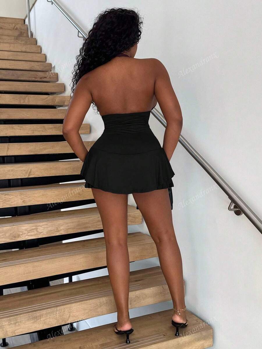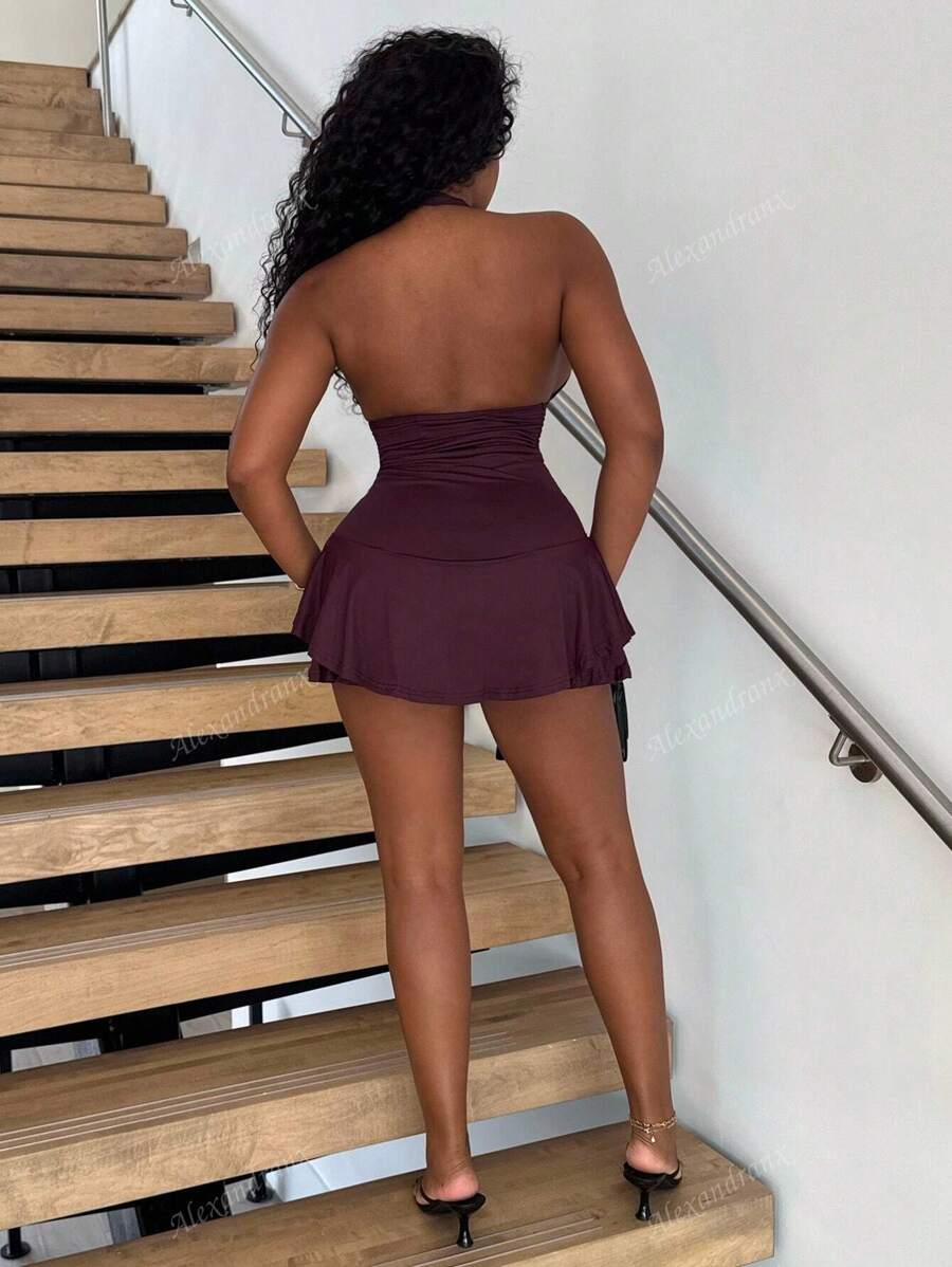 Alexandranx enterizo halter de espalda abierta fruncido bajo con fruncido