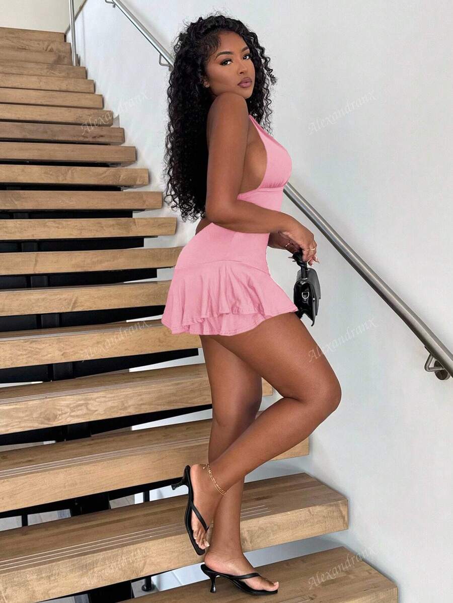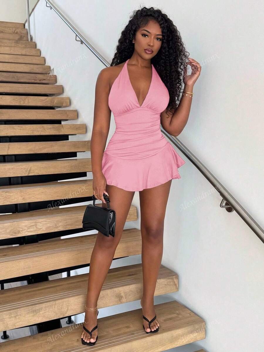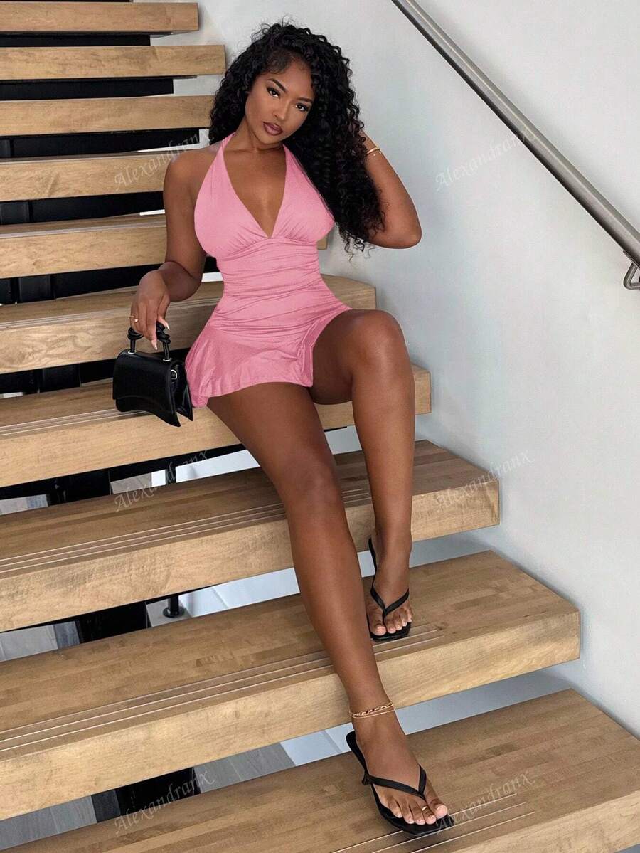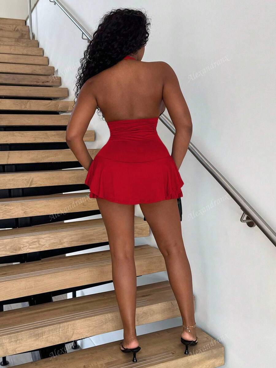 Alexandranx enterizo halter de espalda abierta fruncido bajo con fruncido