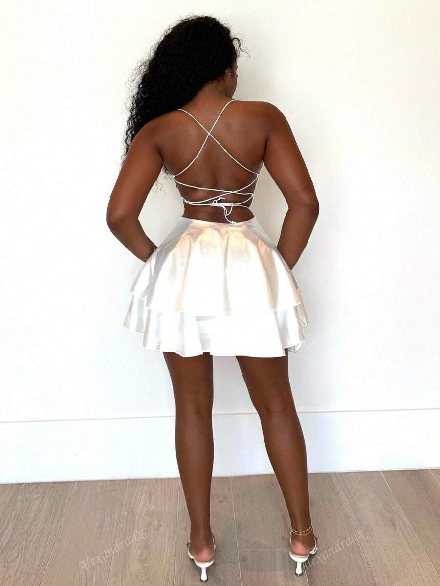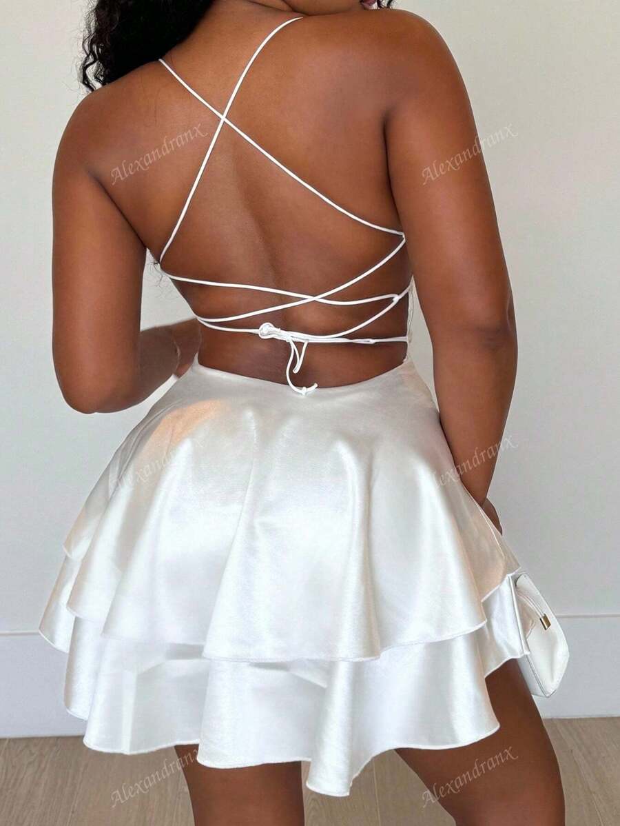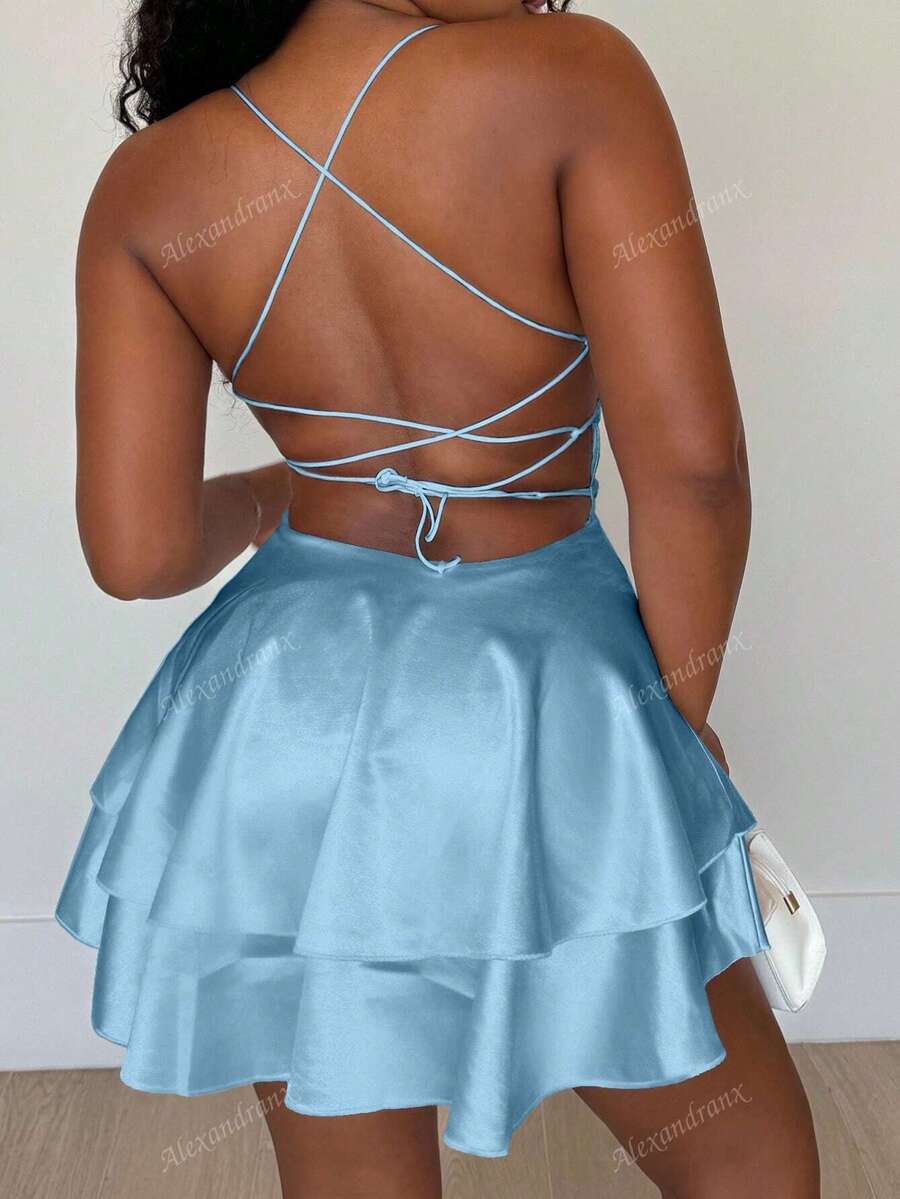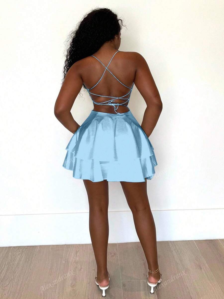 Alexandranx vestido corto de verano para mujer con tirantes finos y espalda descubierta
