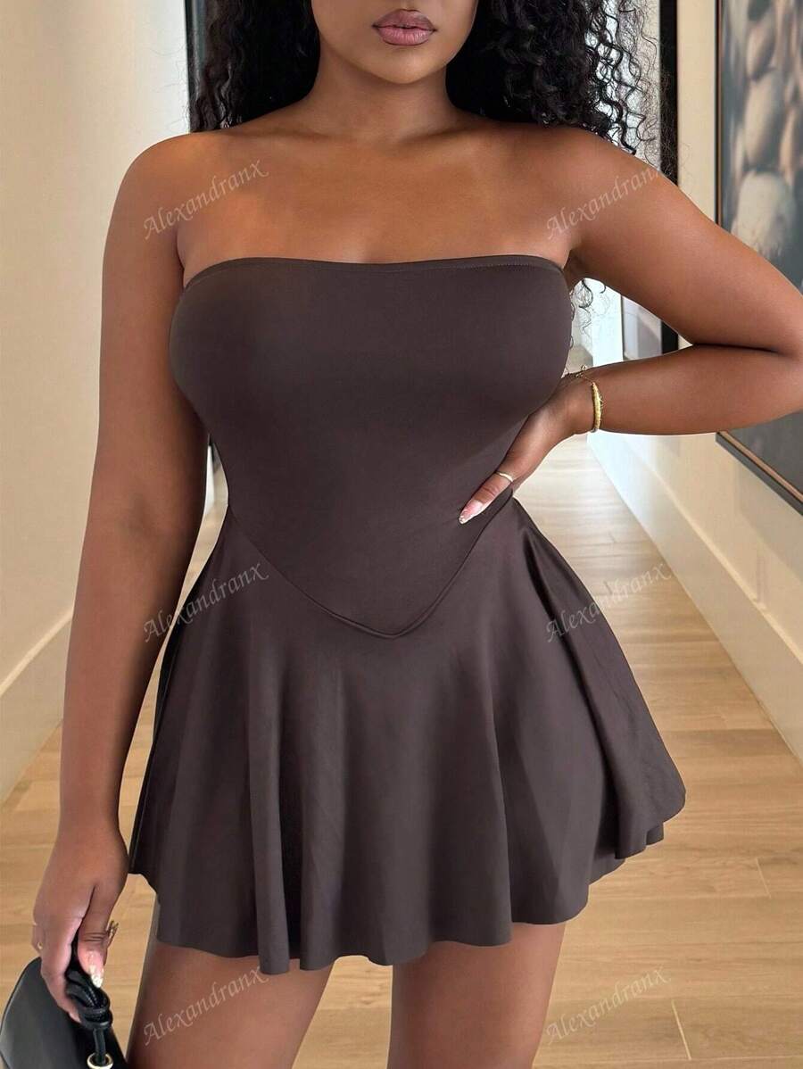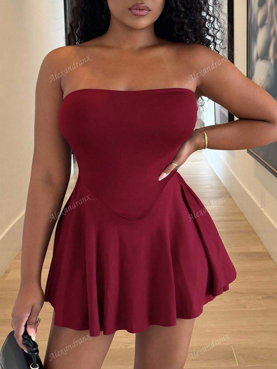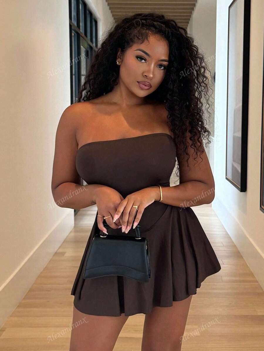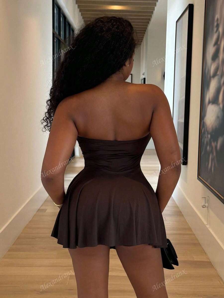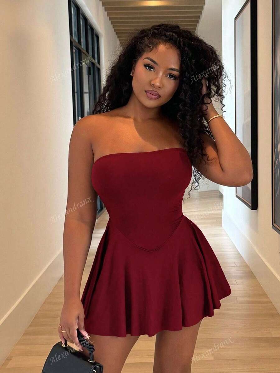 Alexandranx vestido minifalda elegante de color azul solido para mujer