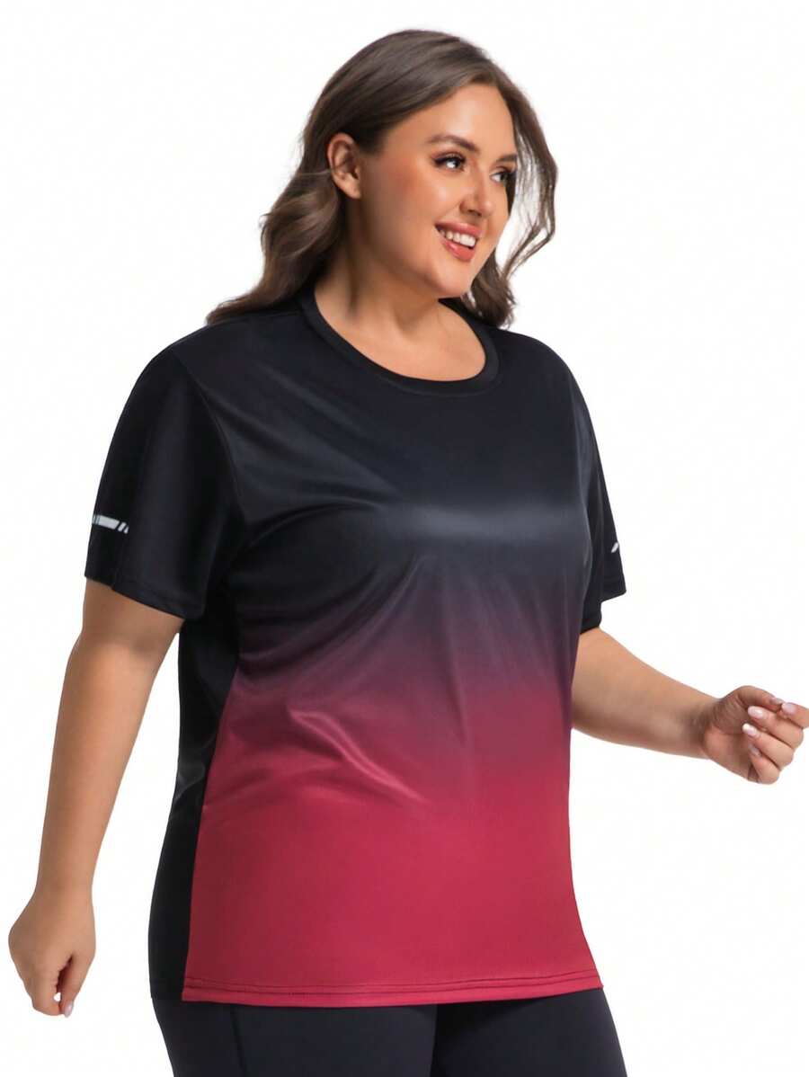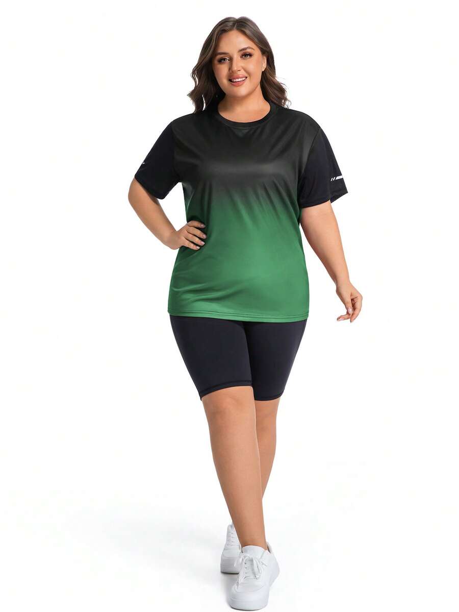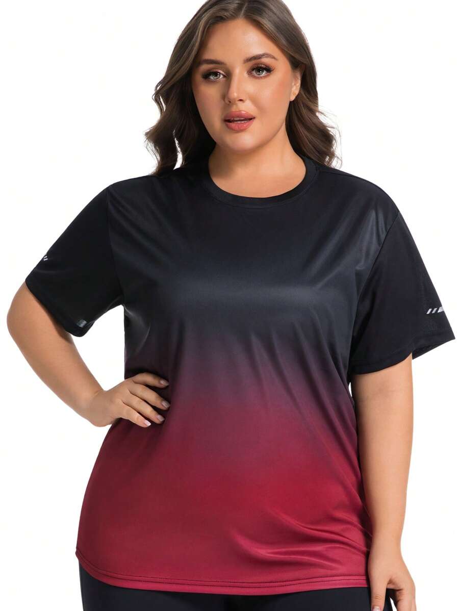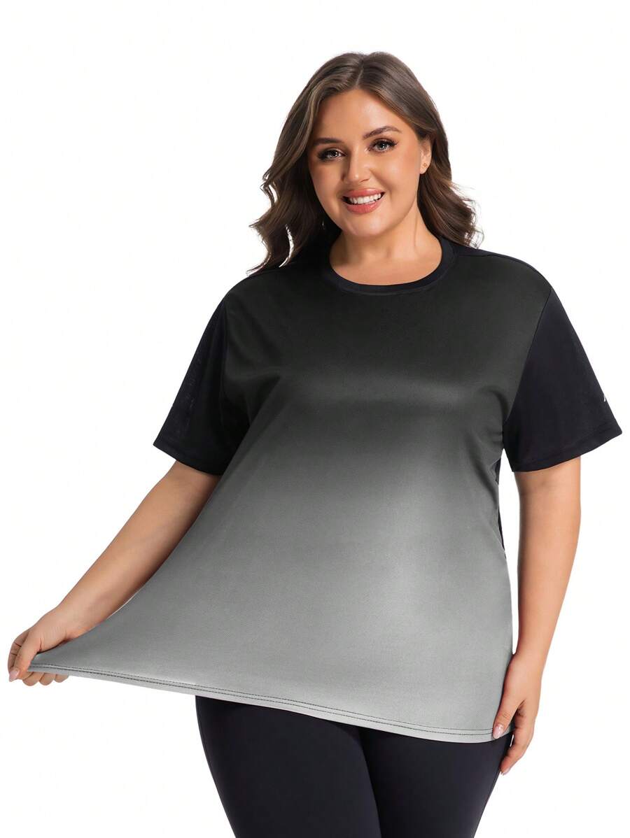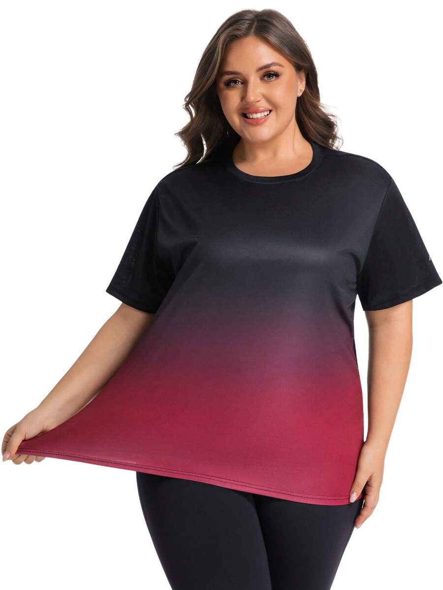 1 pieza camiseta de manga corta casual y holgada con estampado digital de degradado de color para mujer de talla grande, adecuada para entrenamiento, yoga, gimnasio, uso diario, vacaciones, 0xl 1xl 2xl 3xl 4xl, regalos de navidad, regalos de halloween
