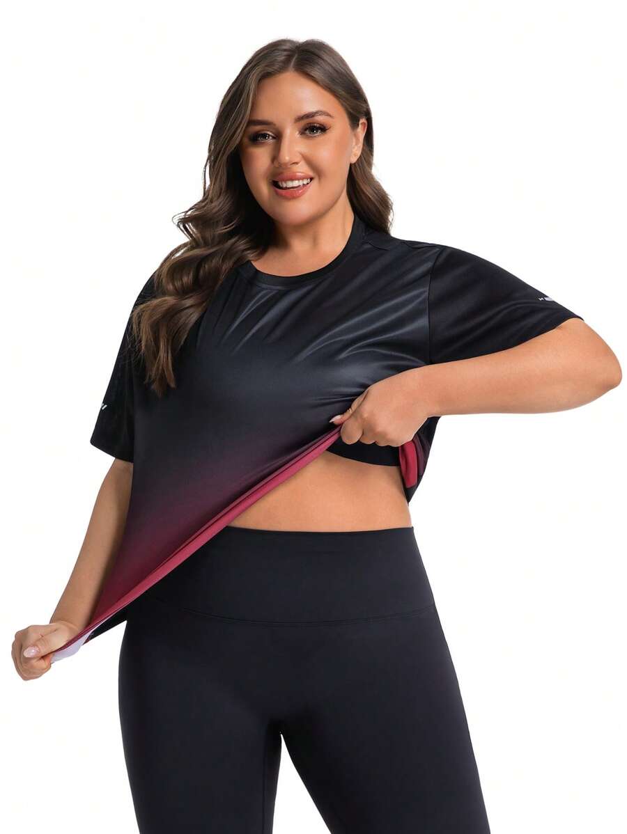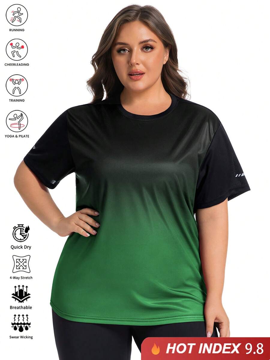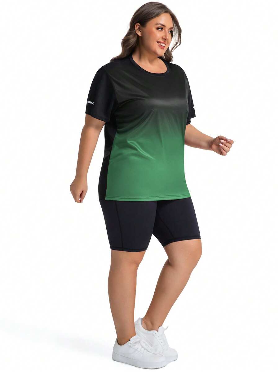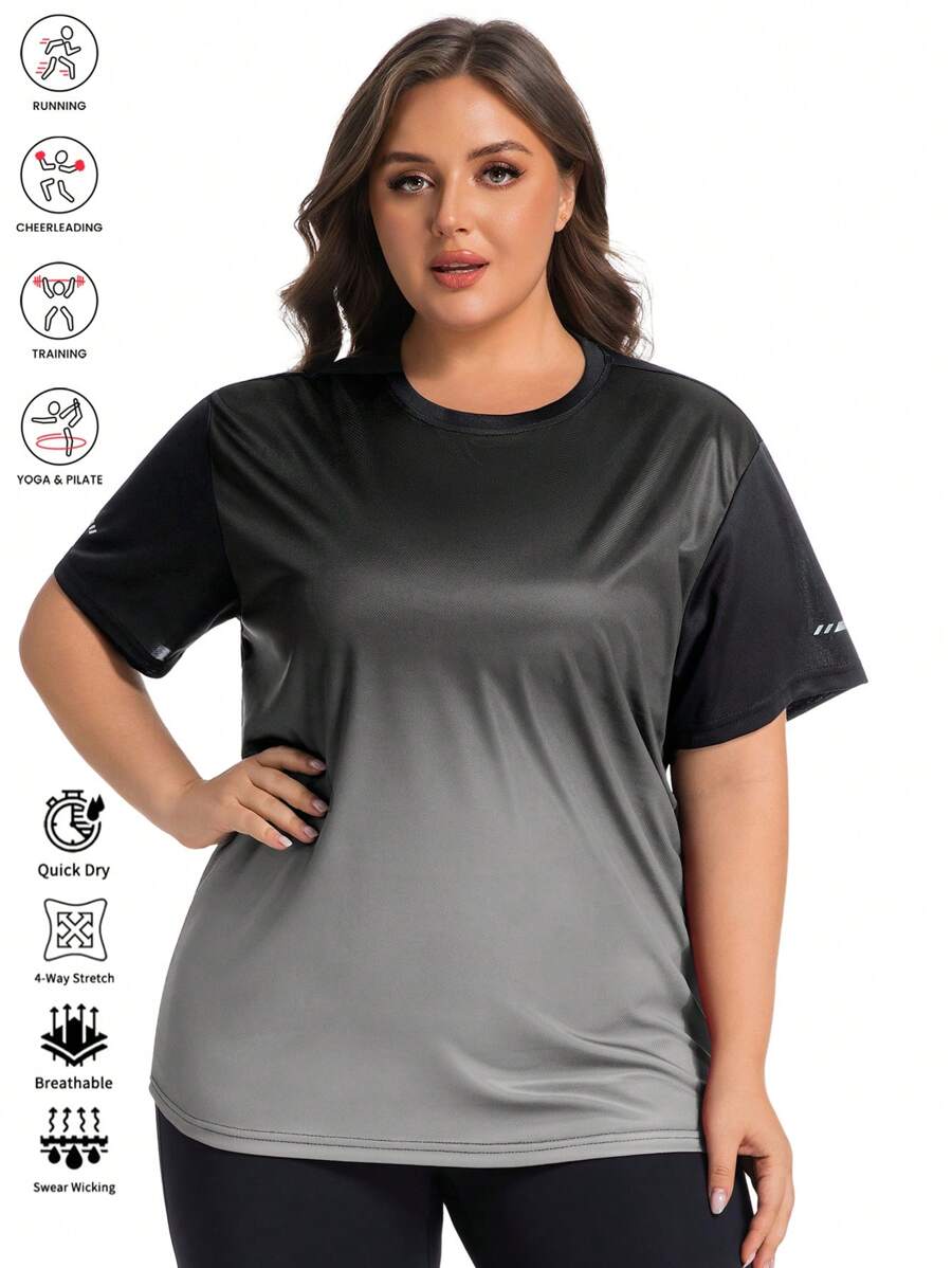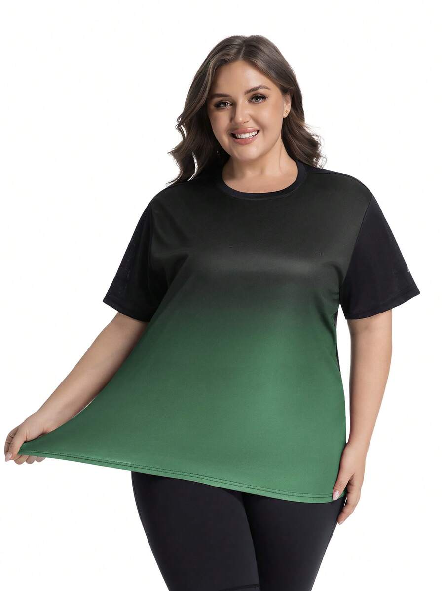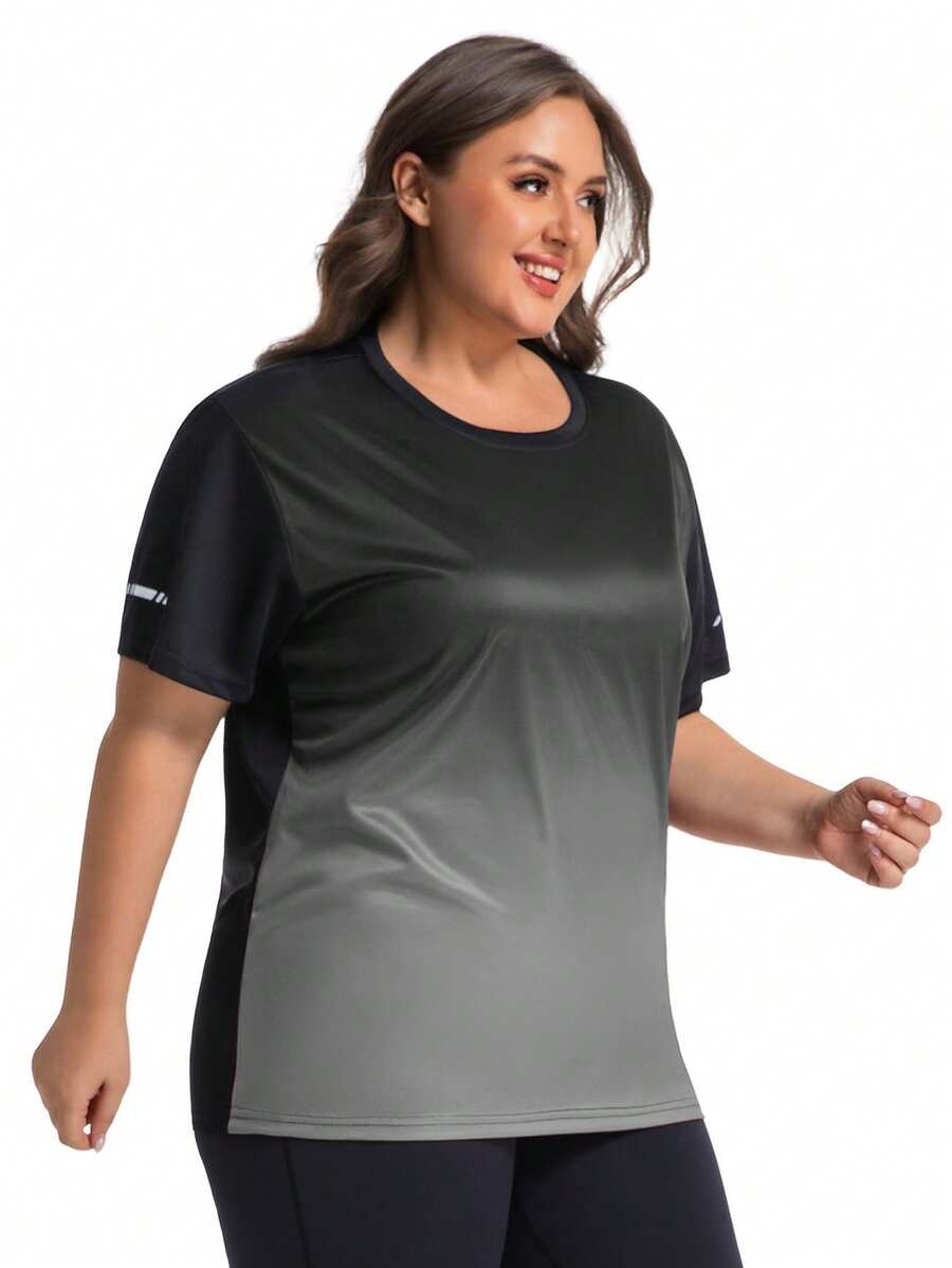 1 pieza camiseta de manga corta casual y holgada con estampado digital de degradado de color para mujer de talla grande, adecuada para entrenamiento, yoga, gimnasio, uso diario, vacaciones, 0xl 1xl 2xl 3xl 4xl, regalos de navidad, regalos de halloween