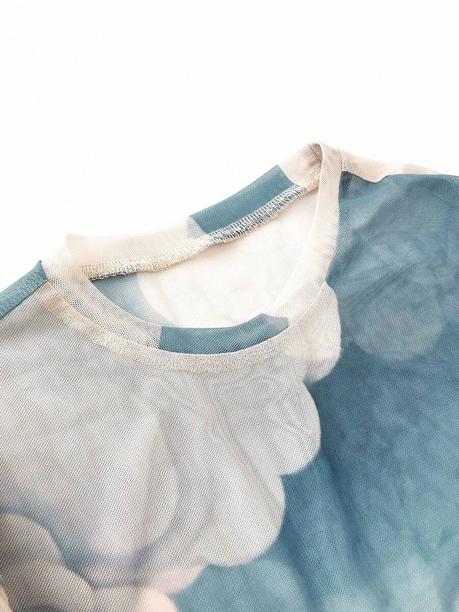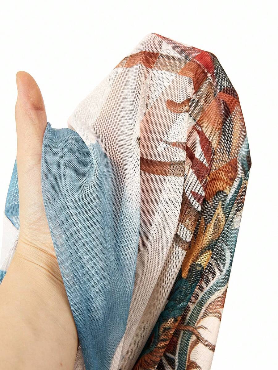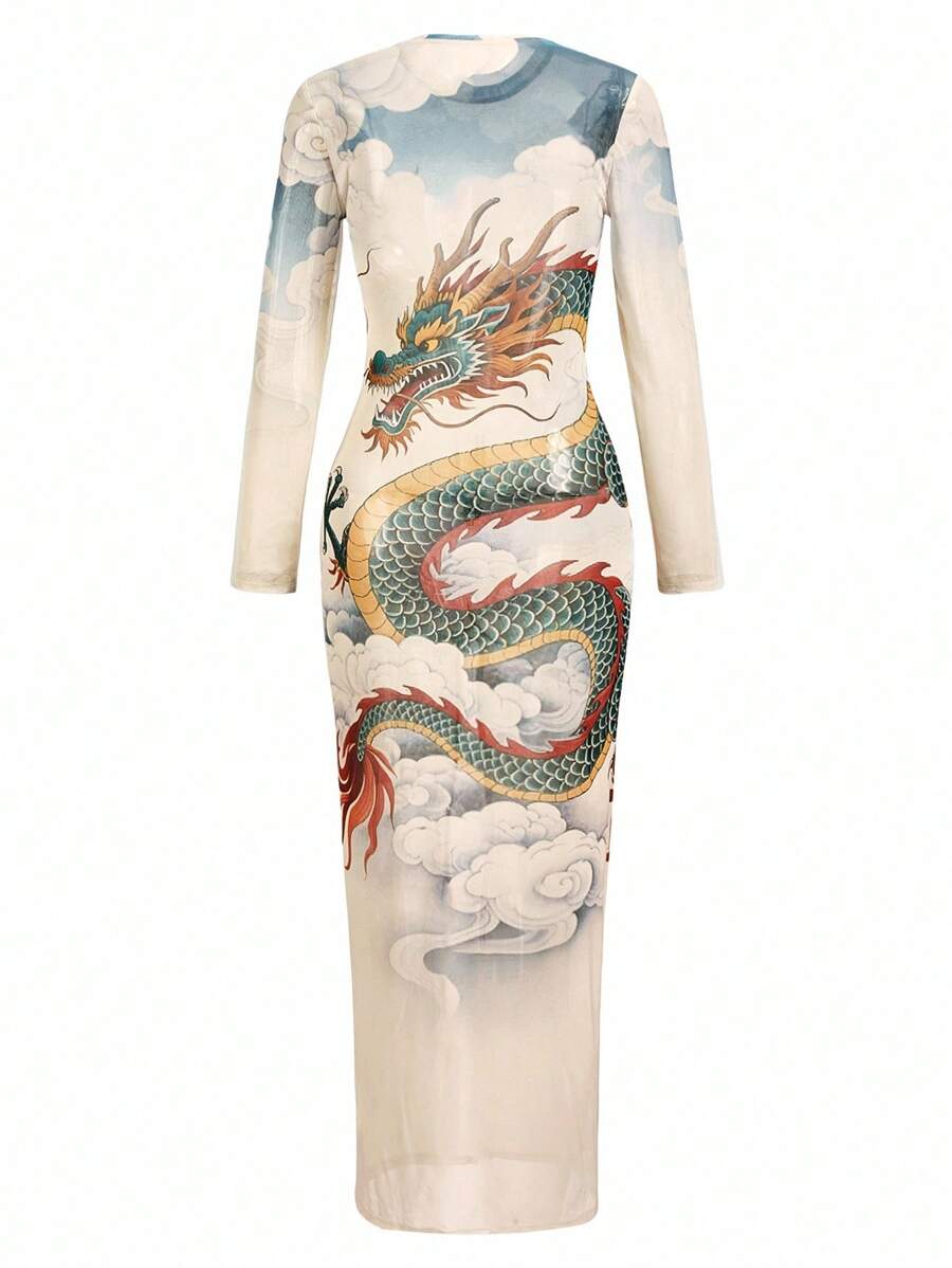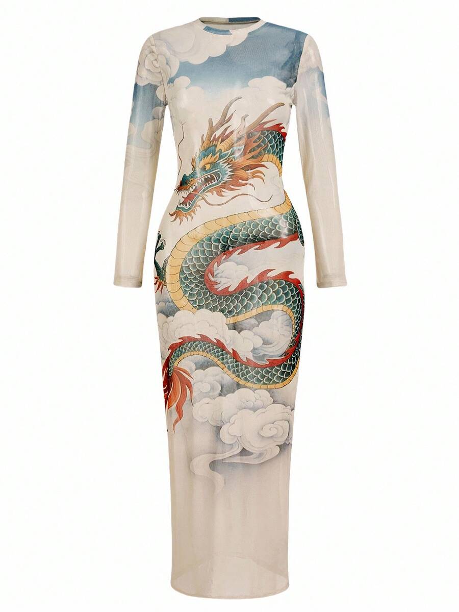 Y2kool bigraphic vestido de mujer con mangas largas, multicolor, con elementos chinos y orientales, estilo de pintura de tinta con dragon, nubes y cielo, de malla y transparente, sexy, estilo y2k y urbano, casual y elegante, adecuado para verano, otono,