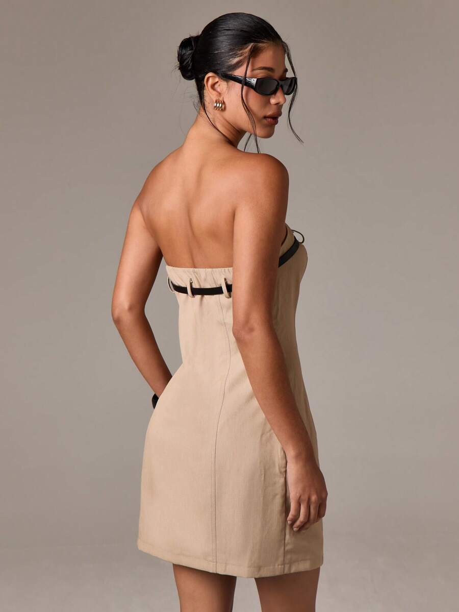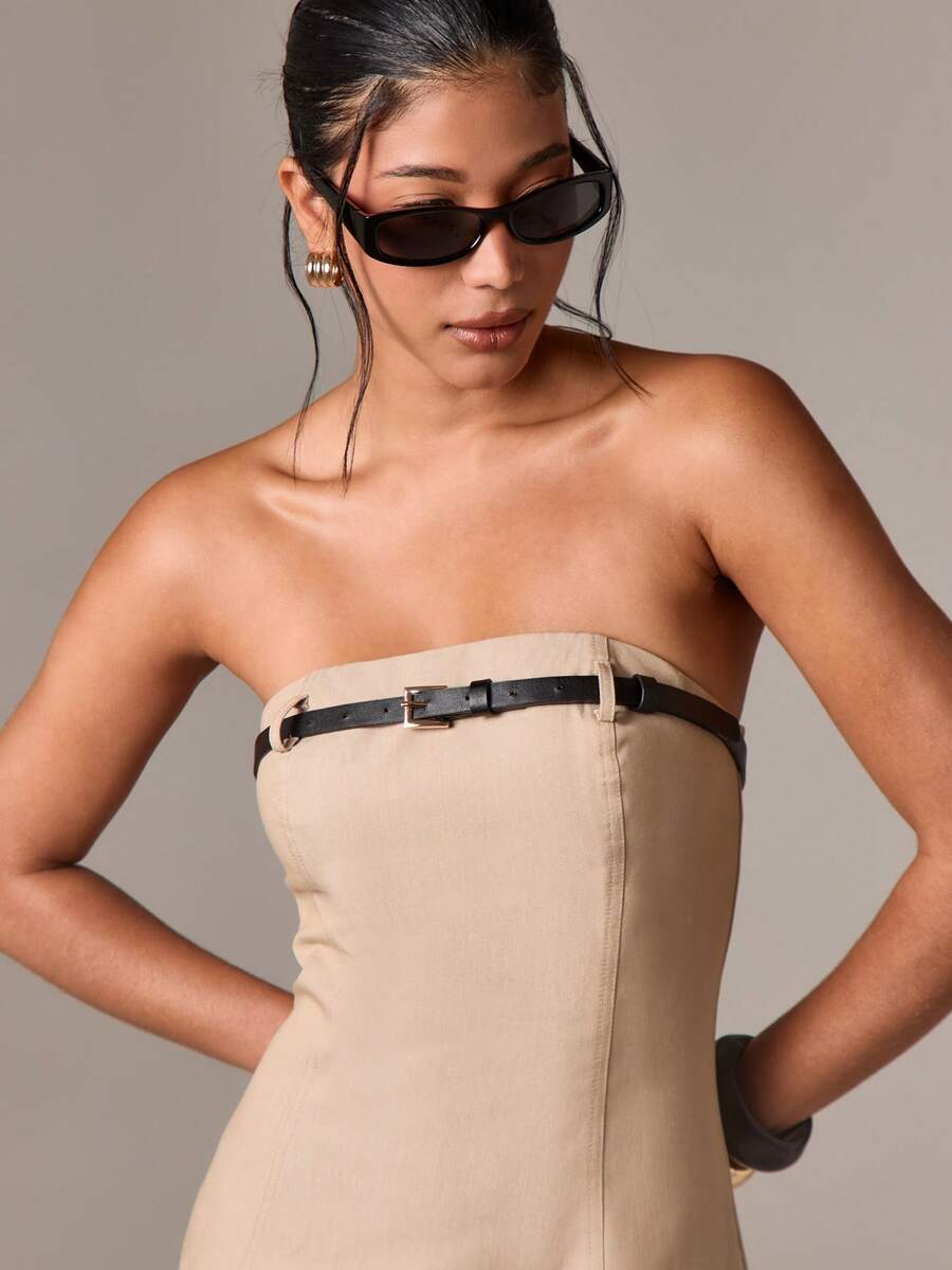 Aiirz vestido mini brasier sin tirantes con cinturon sin tirantes para fiesta de noche, moda formal y2k, ropa de club elegante, vestido de invitada de boda de verano, coctel