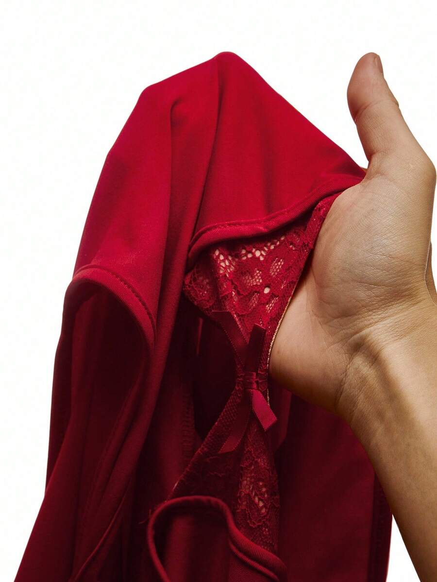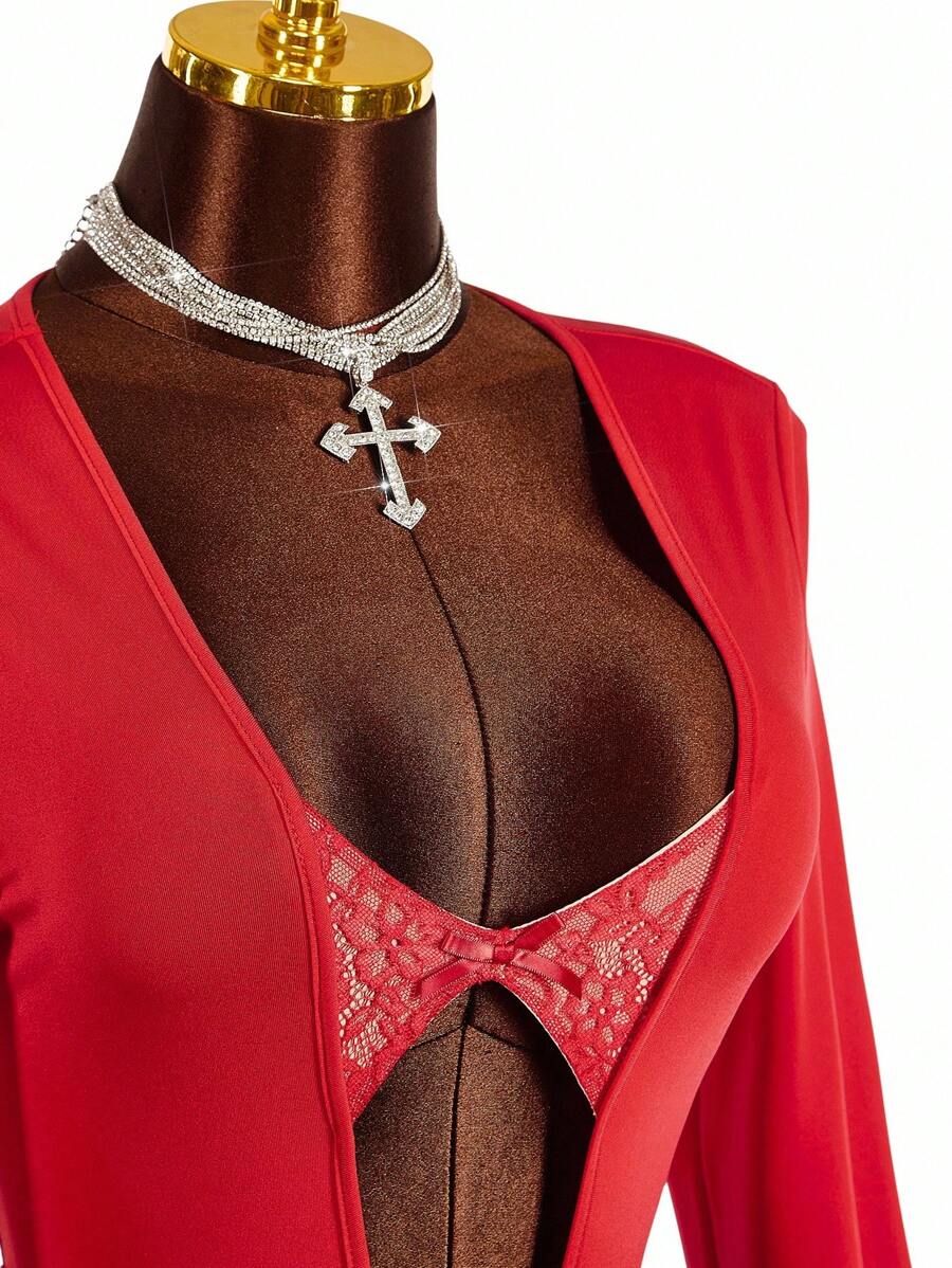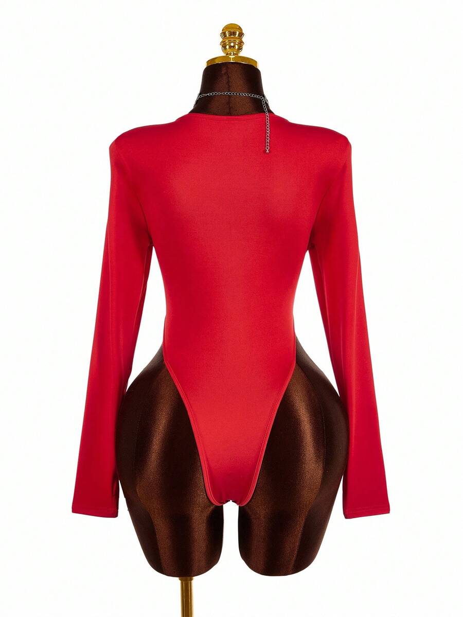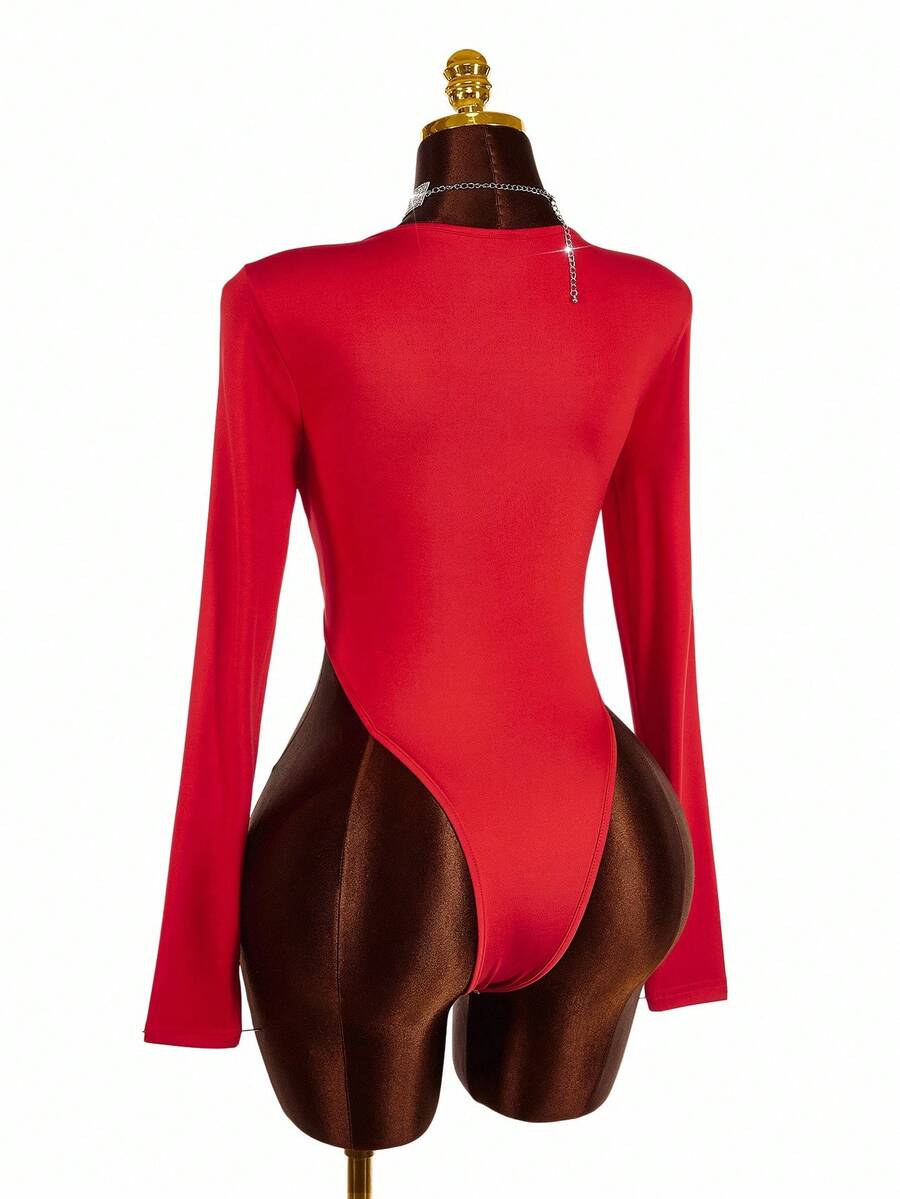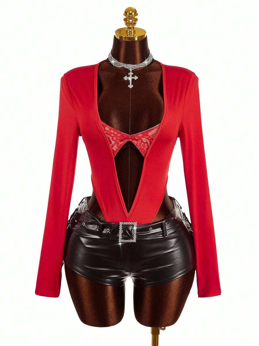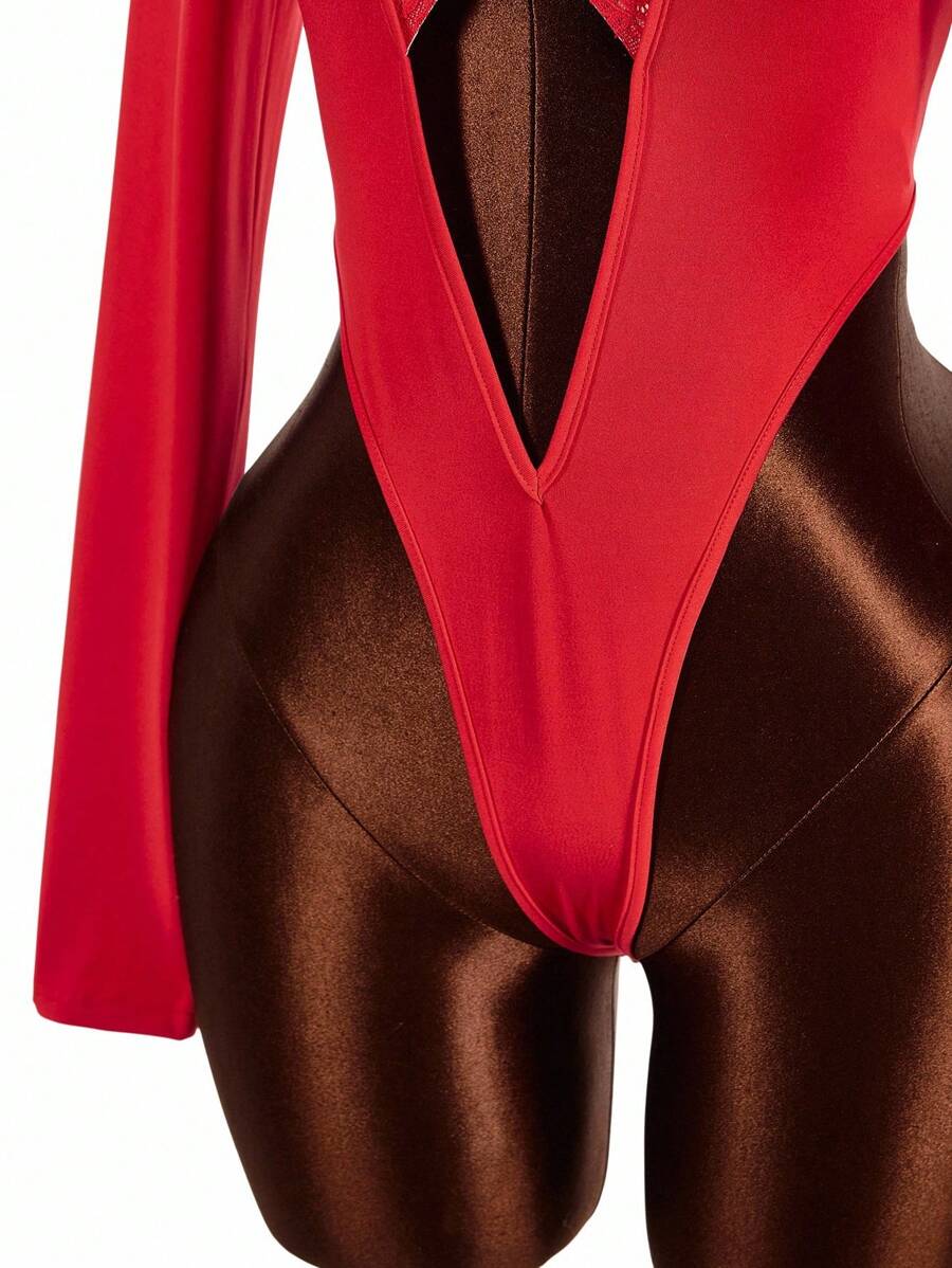 Amplova body de encaje con parches y escote profundo en v de moda para mujer de talla grande