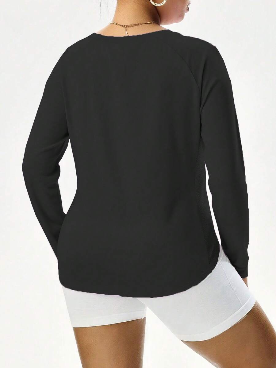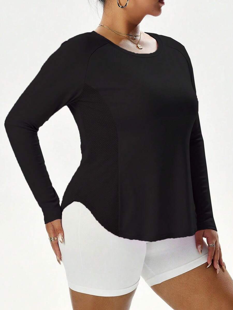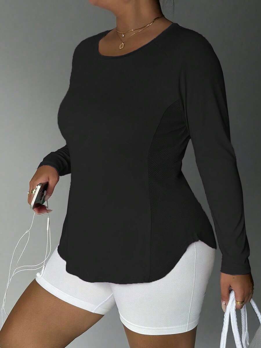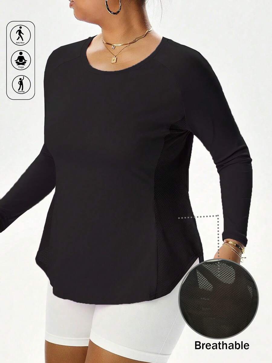 2025 ropa deportiva de talla grande para mujer, otono/invierno, camiseta de manga larga de unicolor informal para yoga y fitness