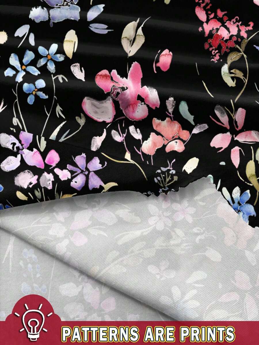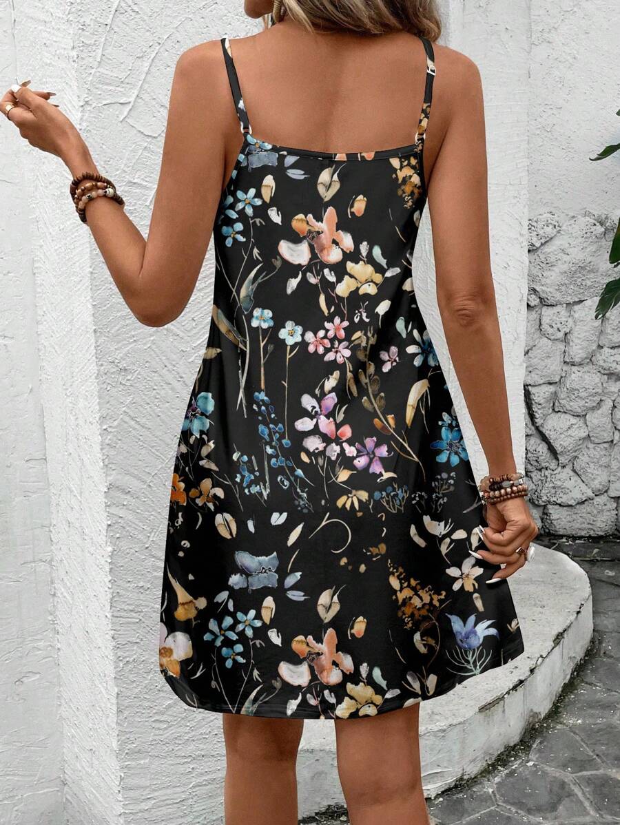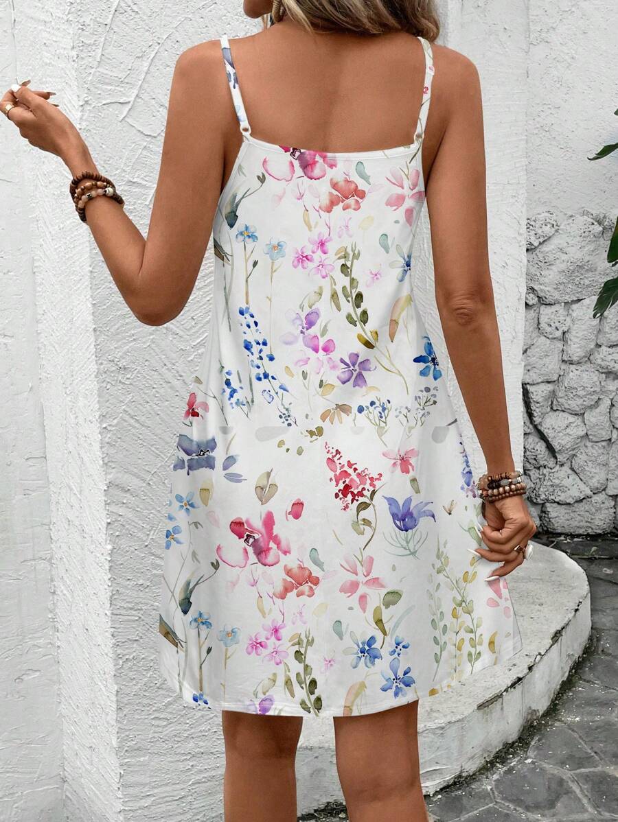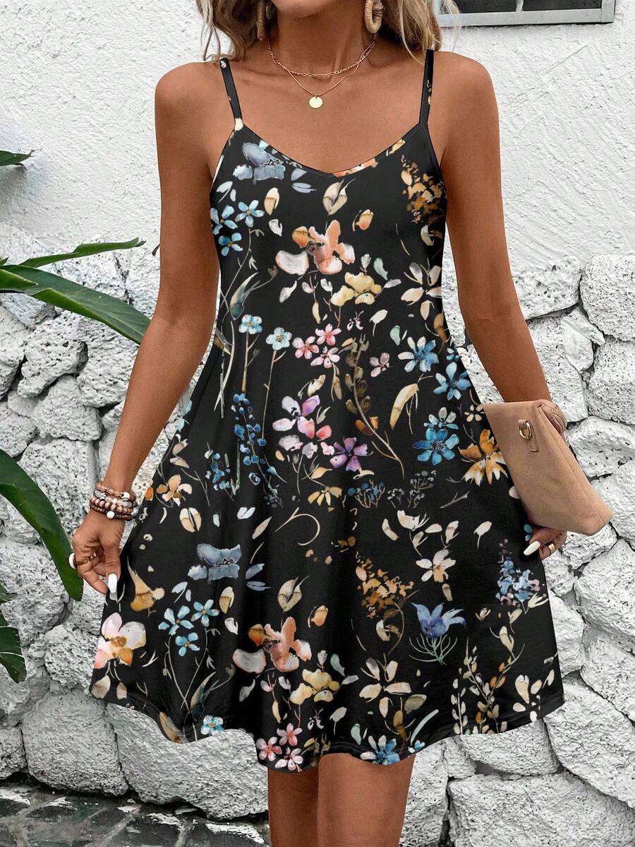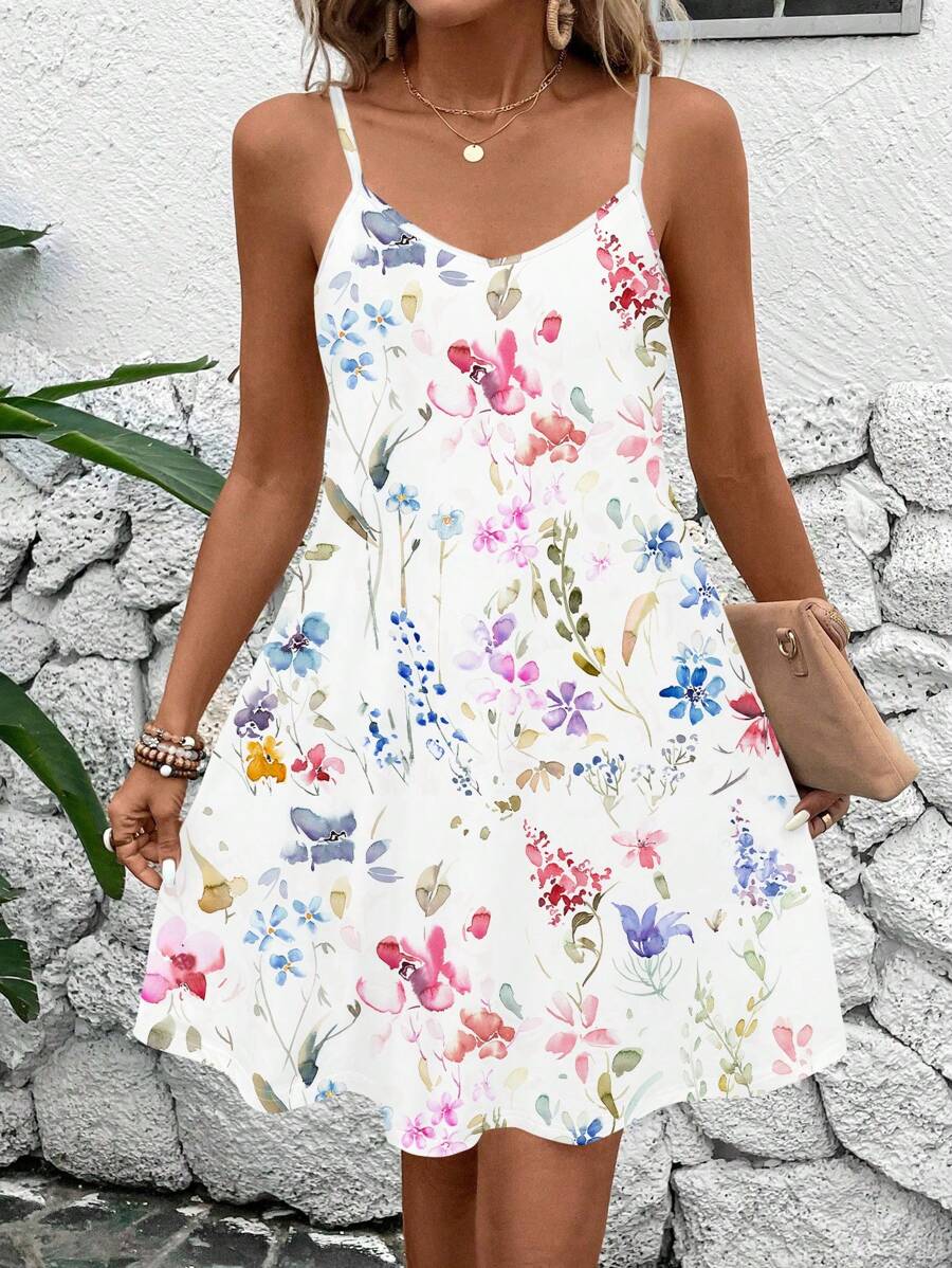Vestido corto de punto con tirantes finos y estampado floral casual, adecuado para vacaciones de verano